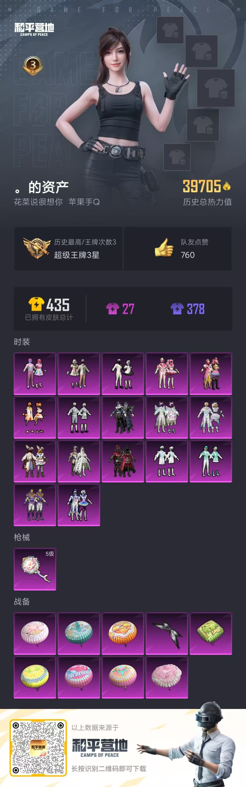 实名: 可修改 枪械数: 101 时装数: 477 战备数