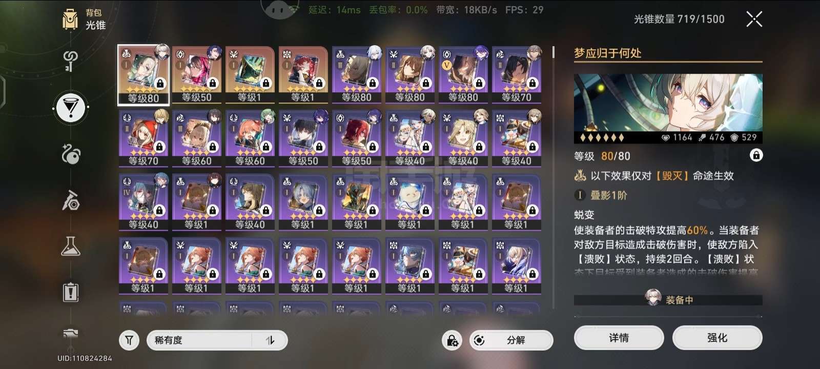 多五星14个,流莹0+1,飞霄老杨希儿2命,黄泉霍霍镜流罗刹阮梅1命姬子白厄那刻夏等5星白厄