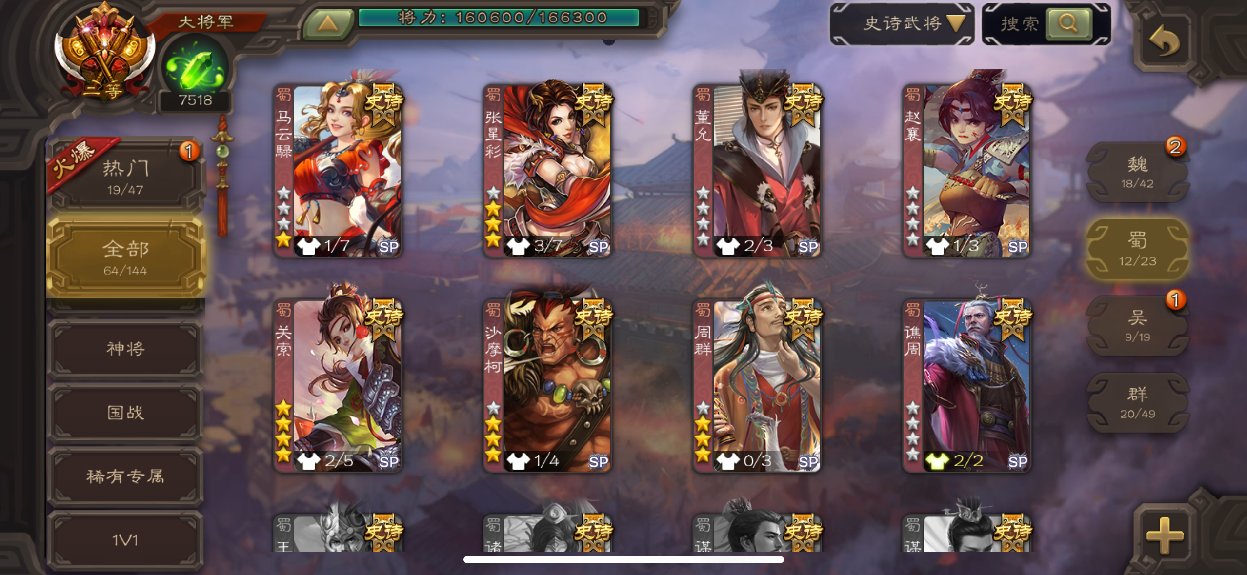 史诗武将数量: