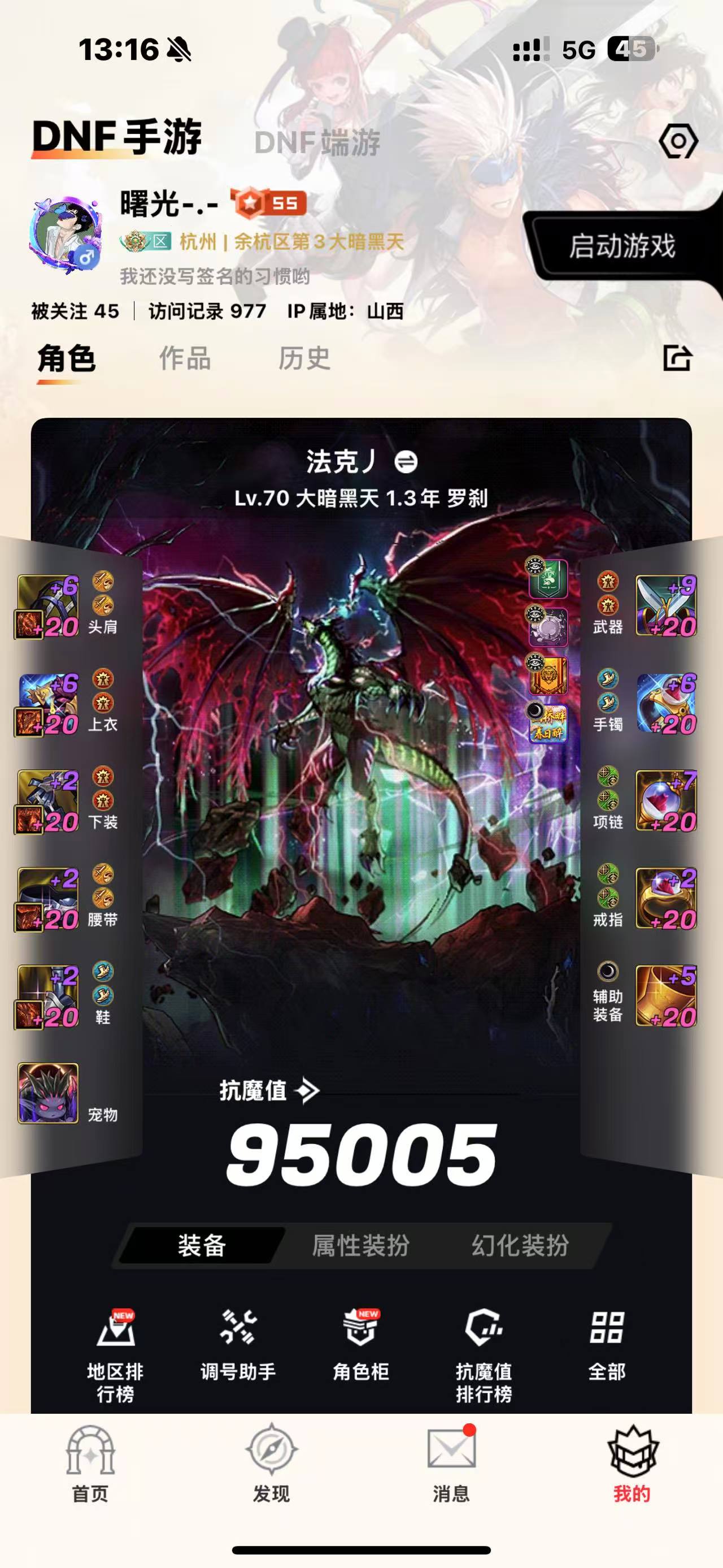 DNF手游全身20 3.6w抗魔 连体王者荣耀