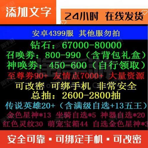 安卓4399服/2600抽6W7钻石800召唤券450神唤券