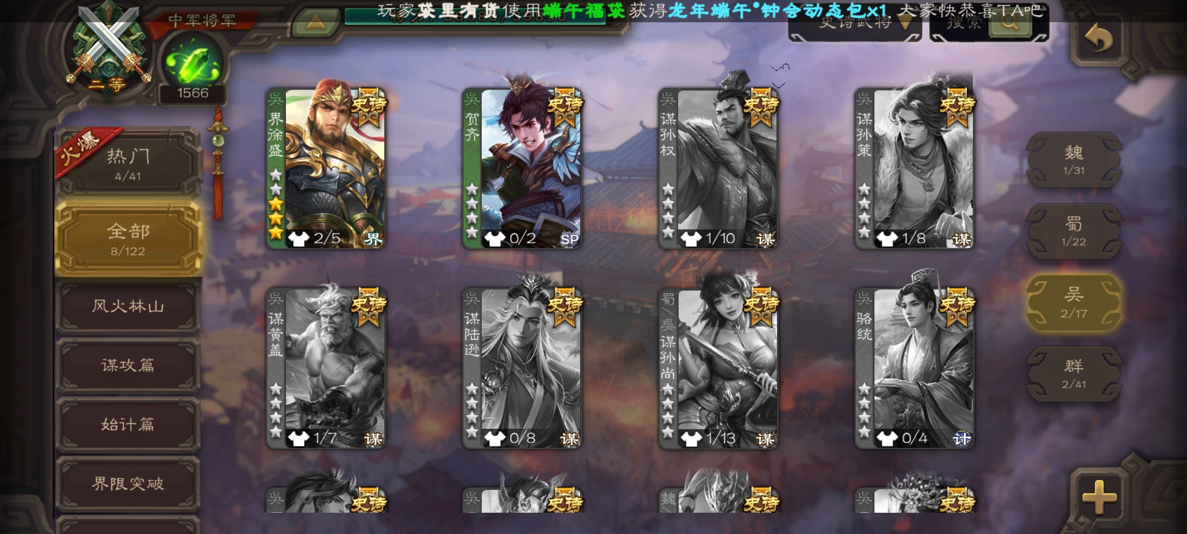 史诗武将数量: