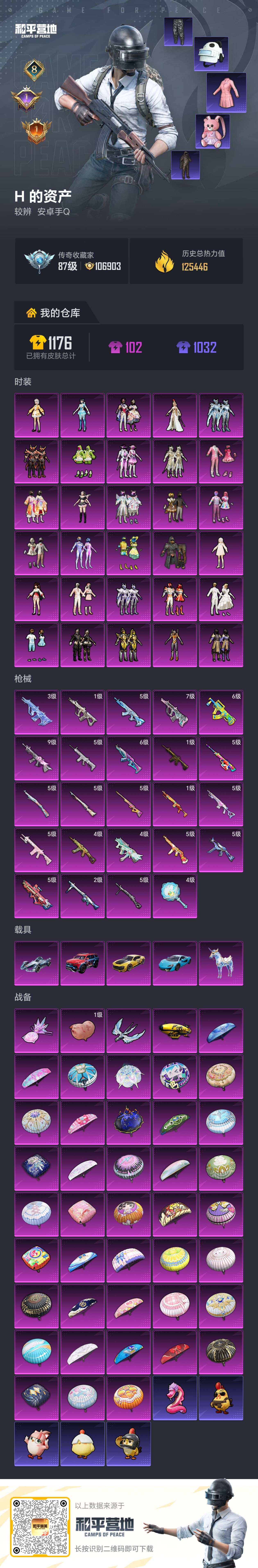 4载具 11升级枪 24粉装 4飞行器 366枪皮 300套装 140106热力 28印记