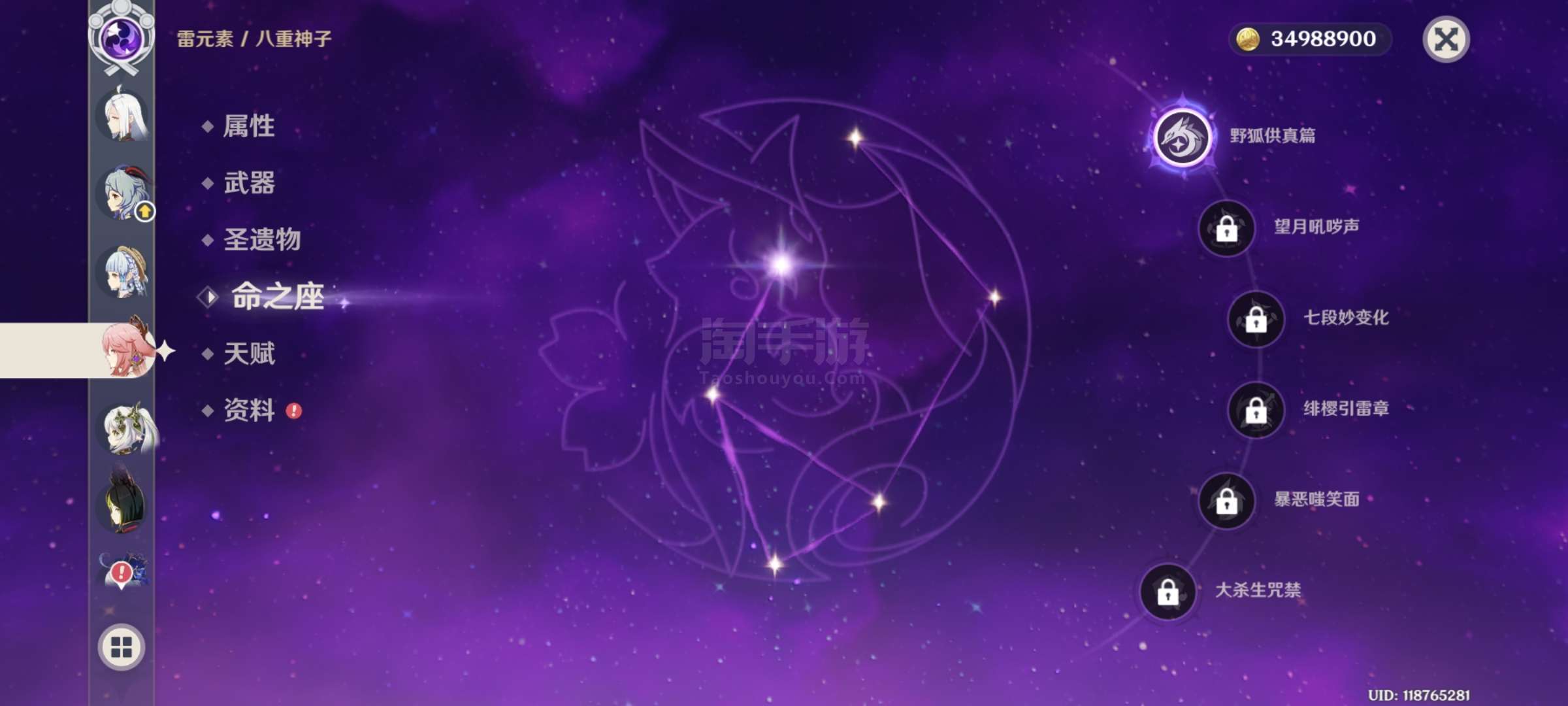 6+1火神,6+5水龙王,6+5夜兰,6+3雷神,2命芙芙,2+1希诺宁,2+1优菈,0+4万叶等等