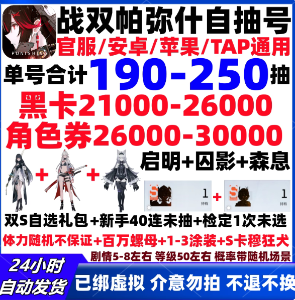 战双帕弥什【全服通用】官服死绑-19000黑卡23000券+囚影森息+双S自选包+新手-检定未动