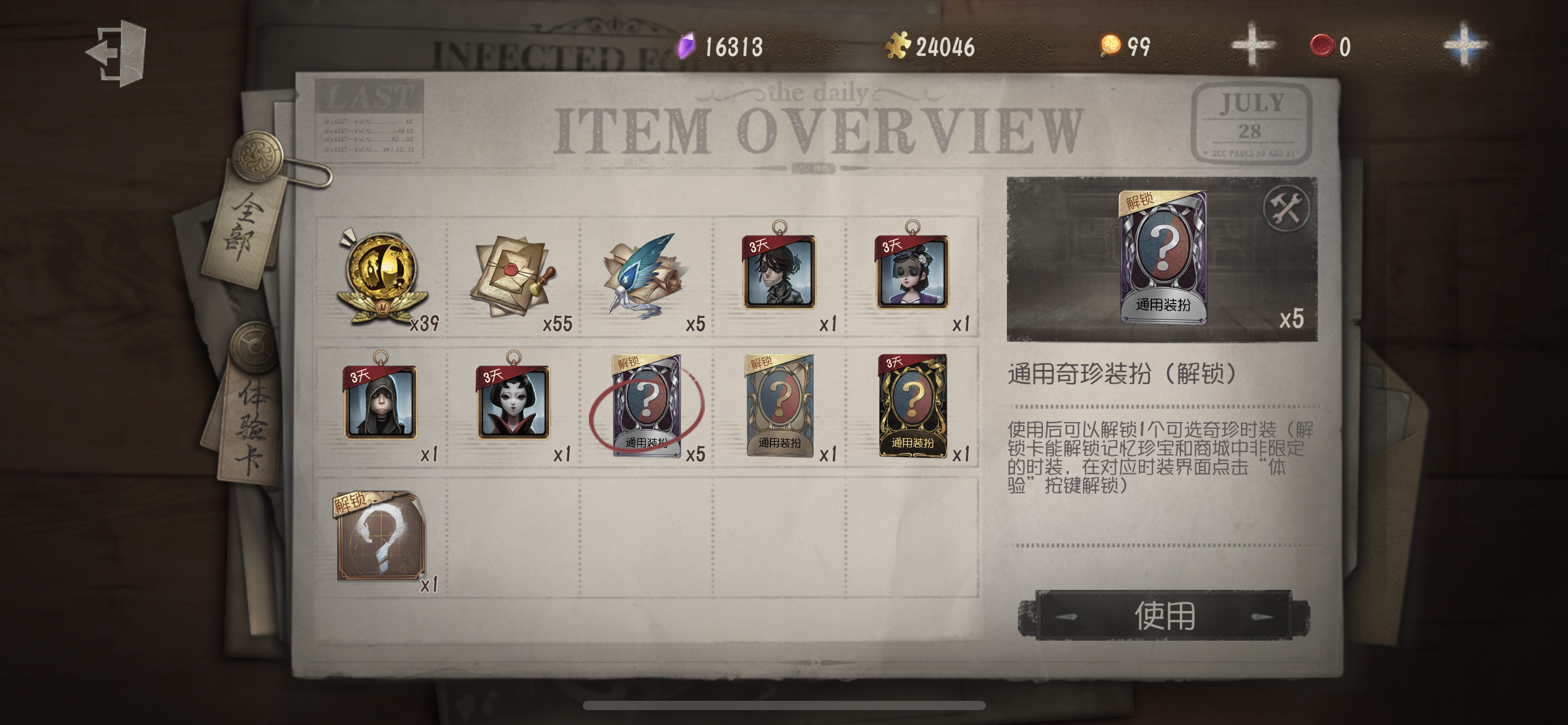 随身物品数量:
