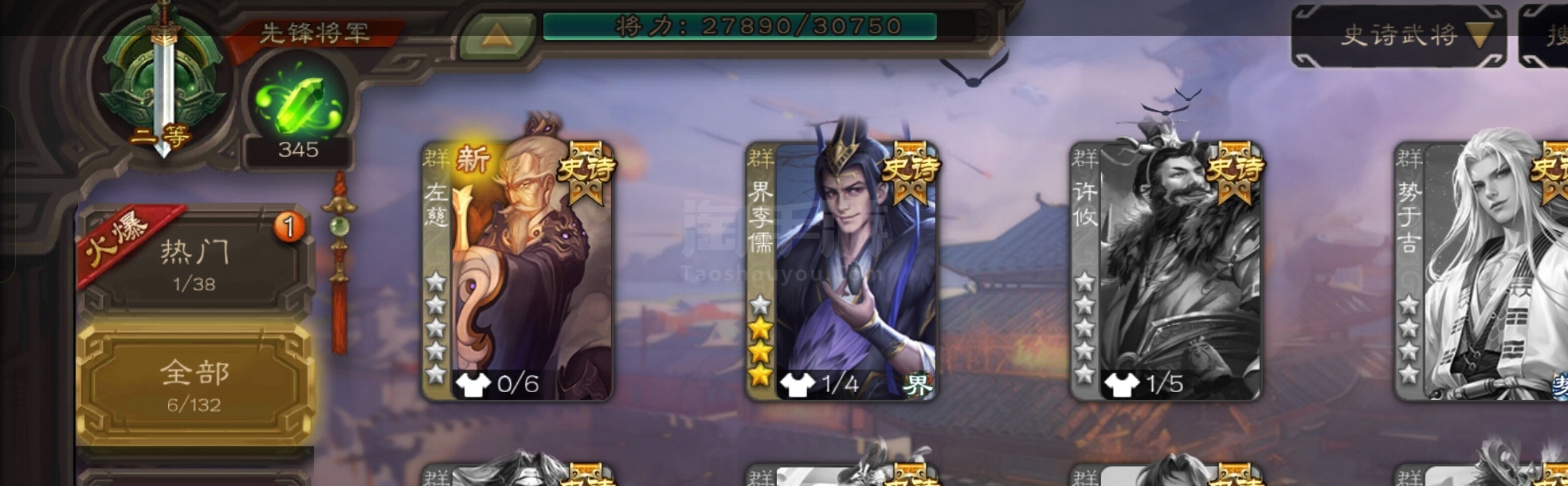 史诗武将数量: