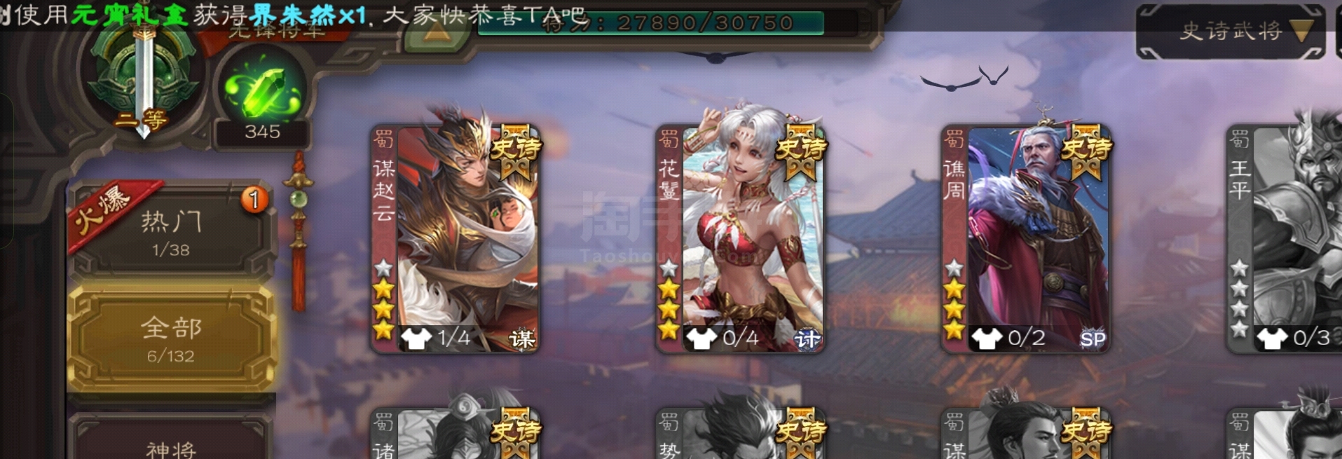 4万豆,动态谋赵云界李儒花鬘谯周杨修左慈6史诗先锋,神吕蒙神周瑜界关羽144将