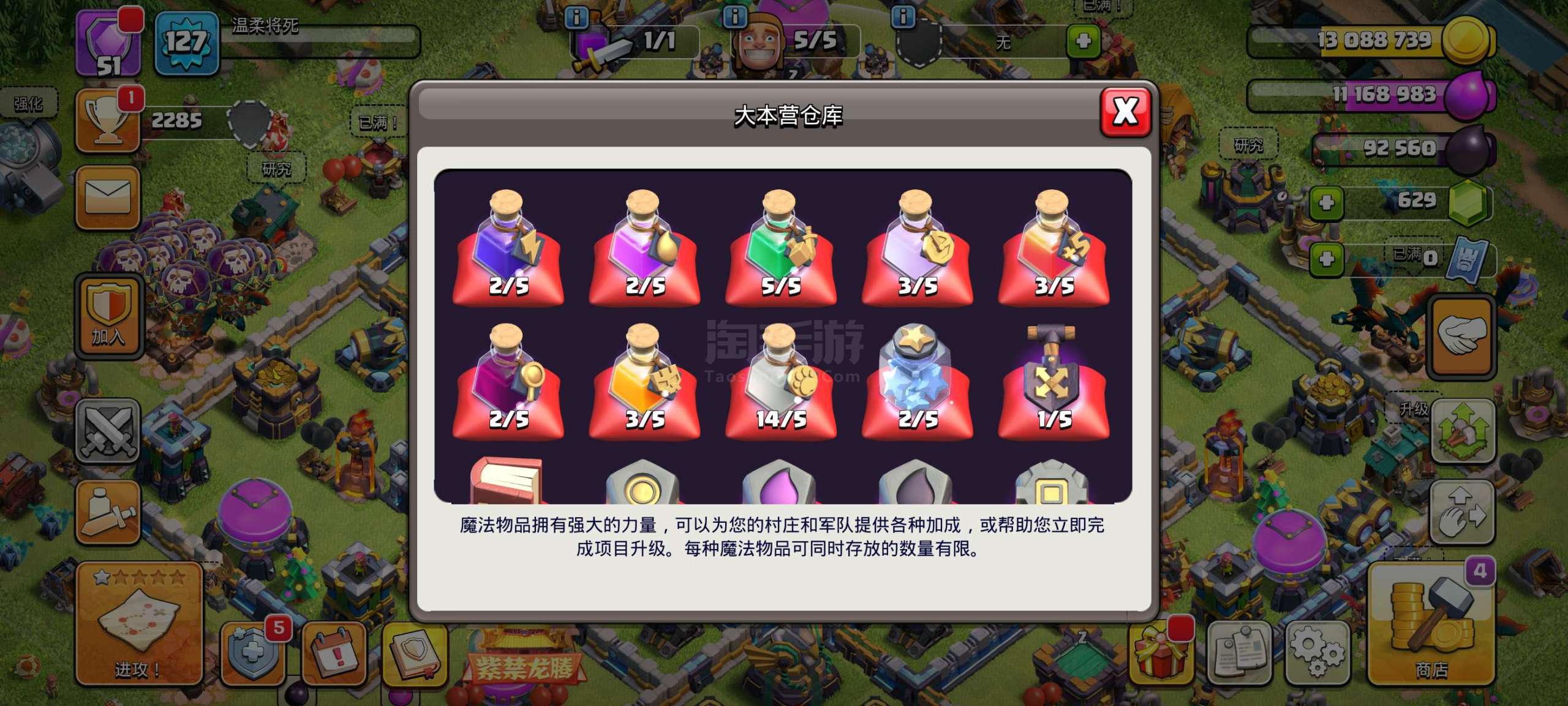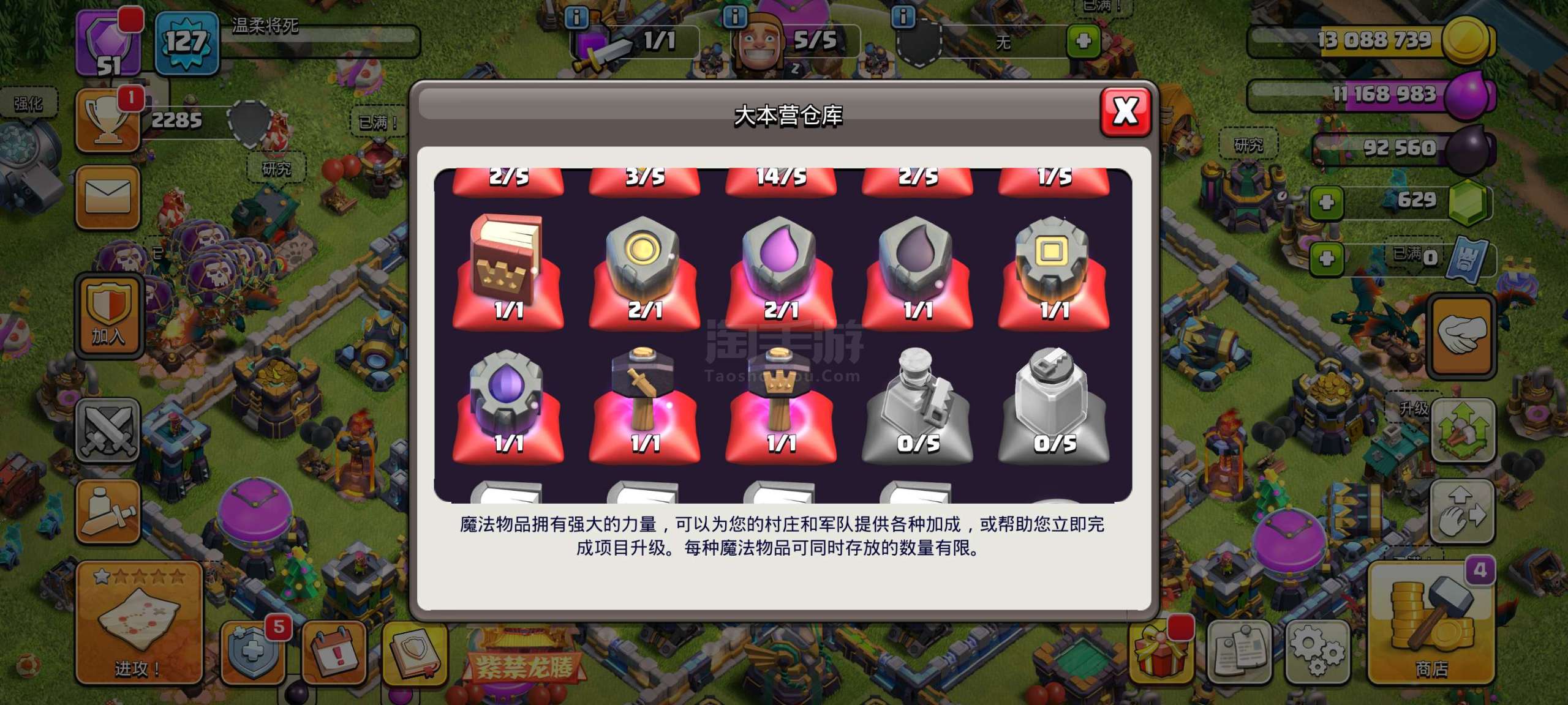 多魔法物品,多远古障碍物,算是老玩家的回忆杀了,有女王的凤鸣千秋,科技王都基本满13水准,防御中14
