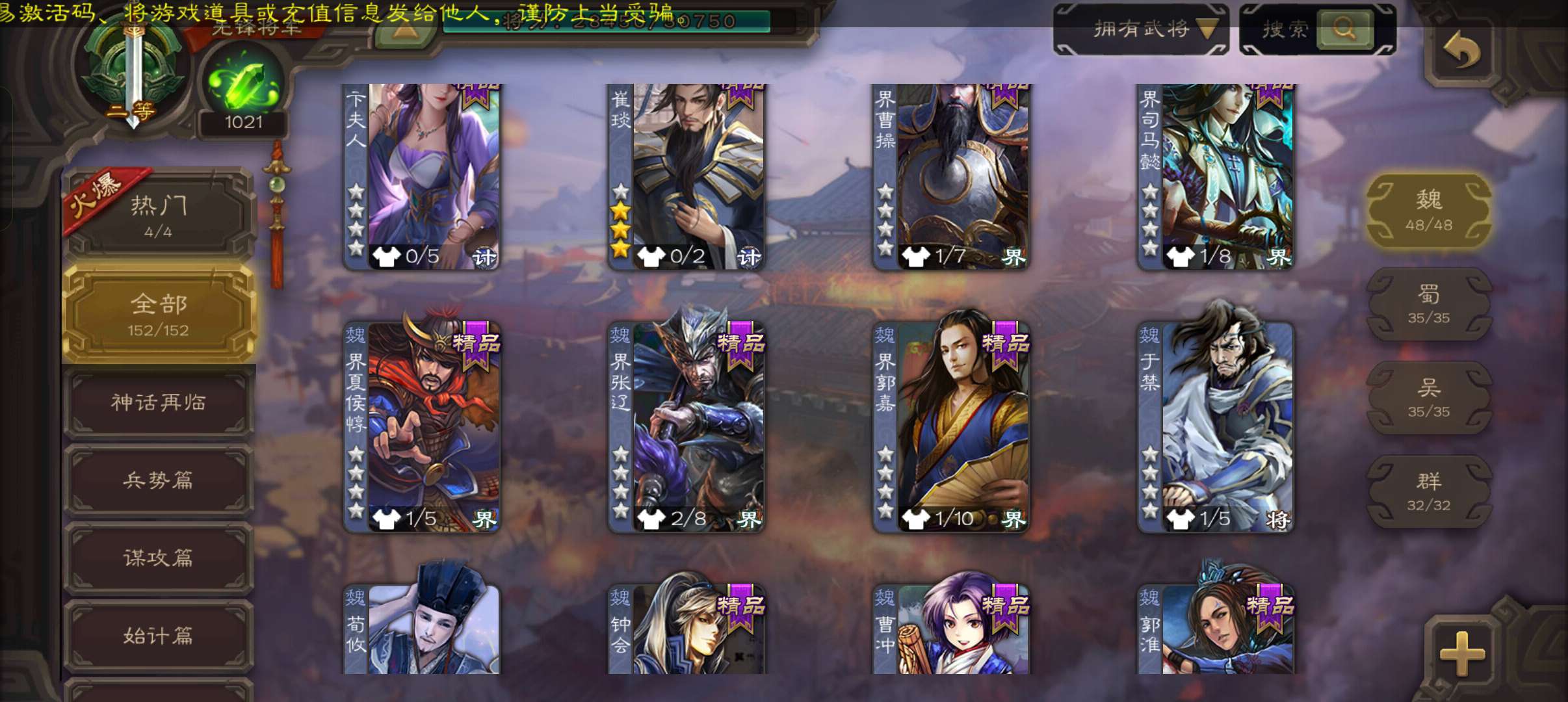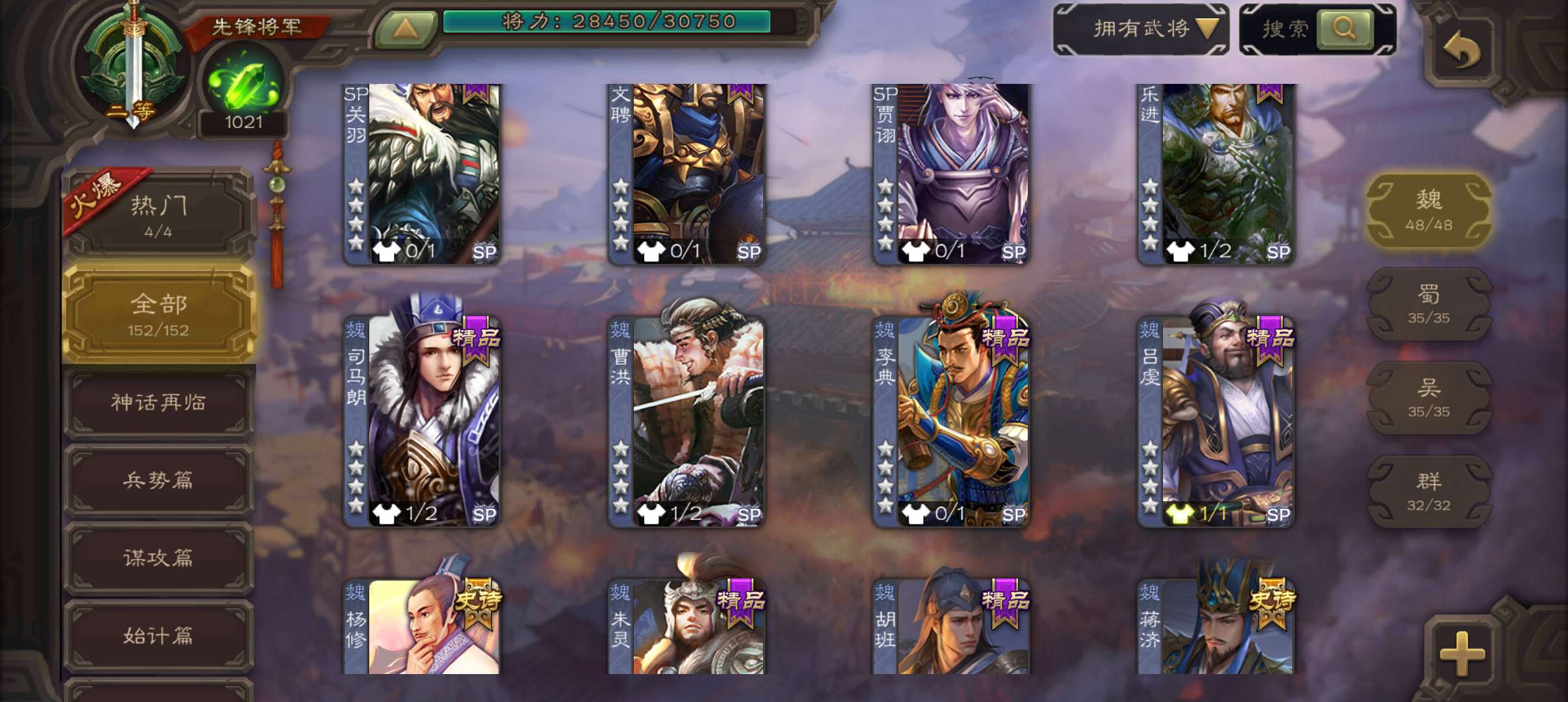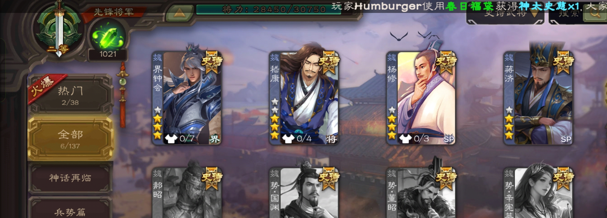 6史诗先锋,蒋济界钟会花鬘嵇康贺齐杨修6史诗,神周瑜神吕蒙崔琰甘夫人界曹植152将