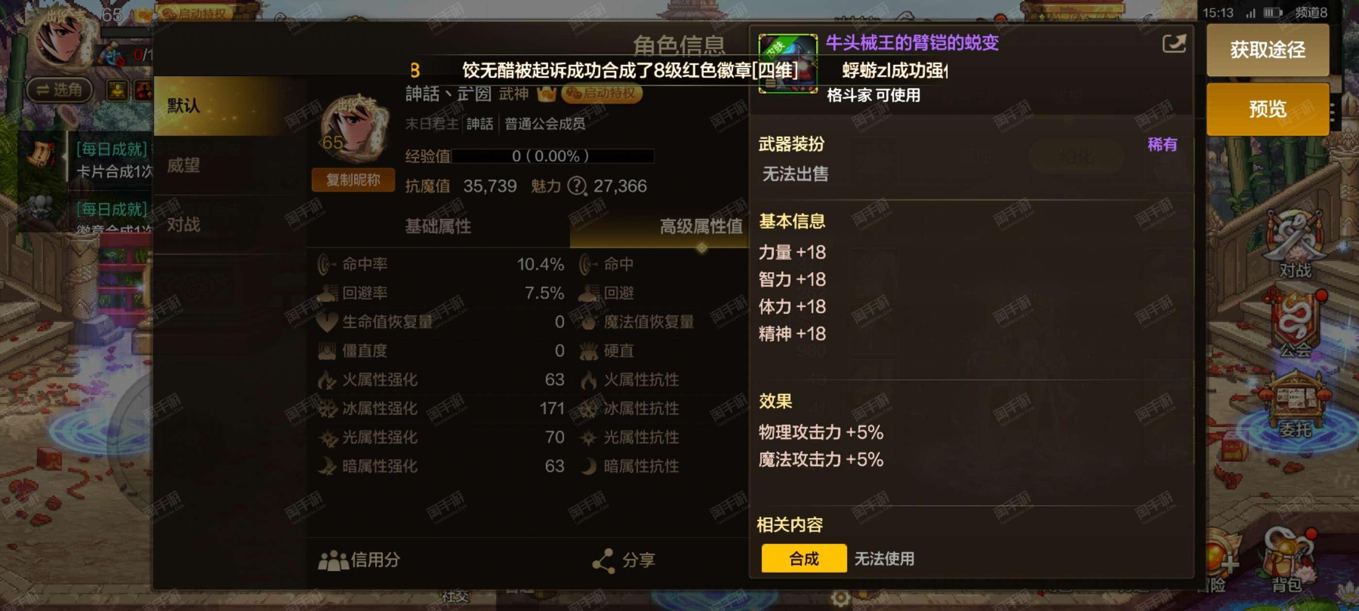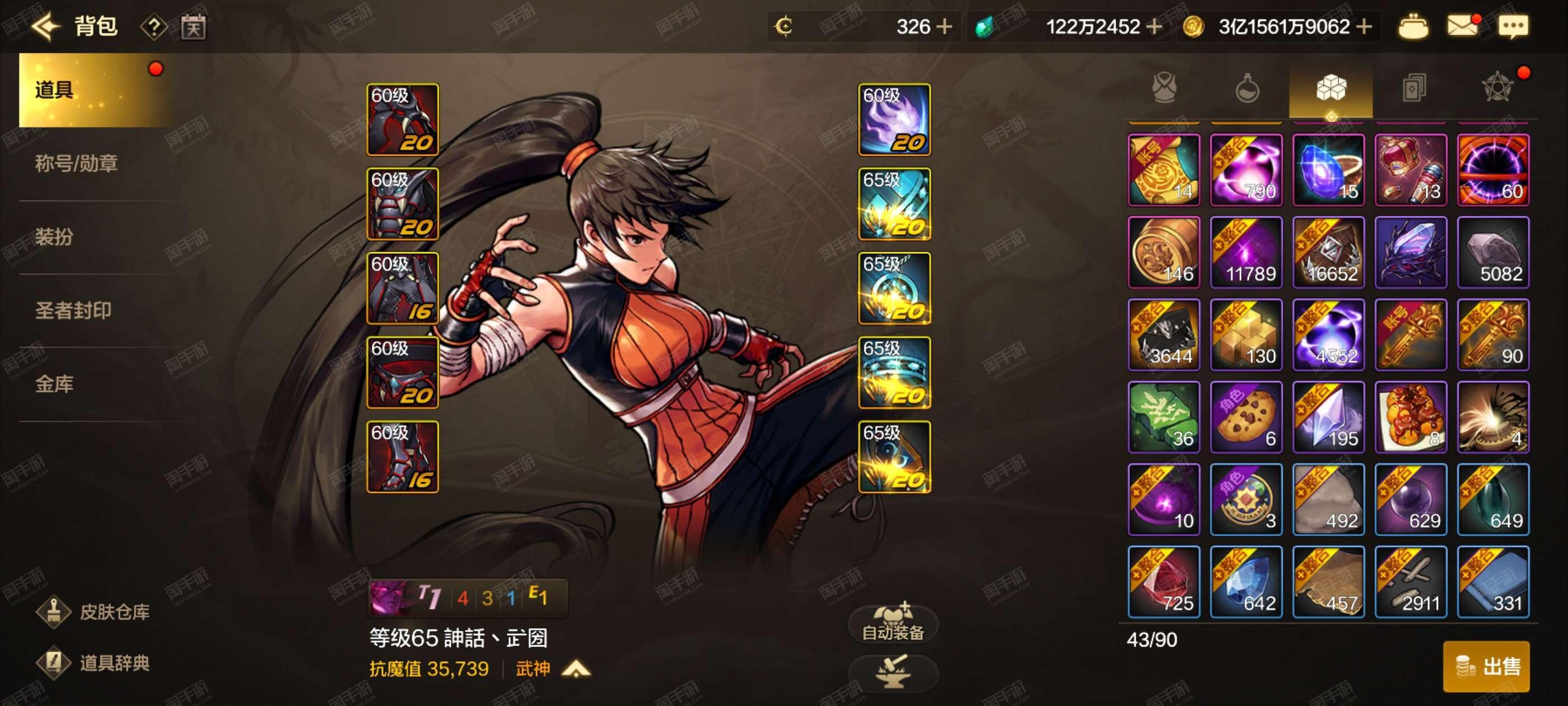 DNF手游【安卓微信】牛臂铠武神,8件20,2件16,带120万泰拉,300点卷,3亿金币,至尊光环称号利刃宝珠都有