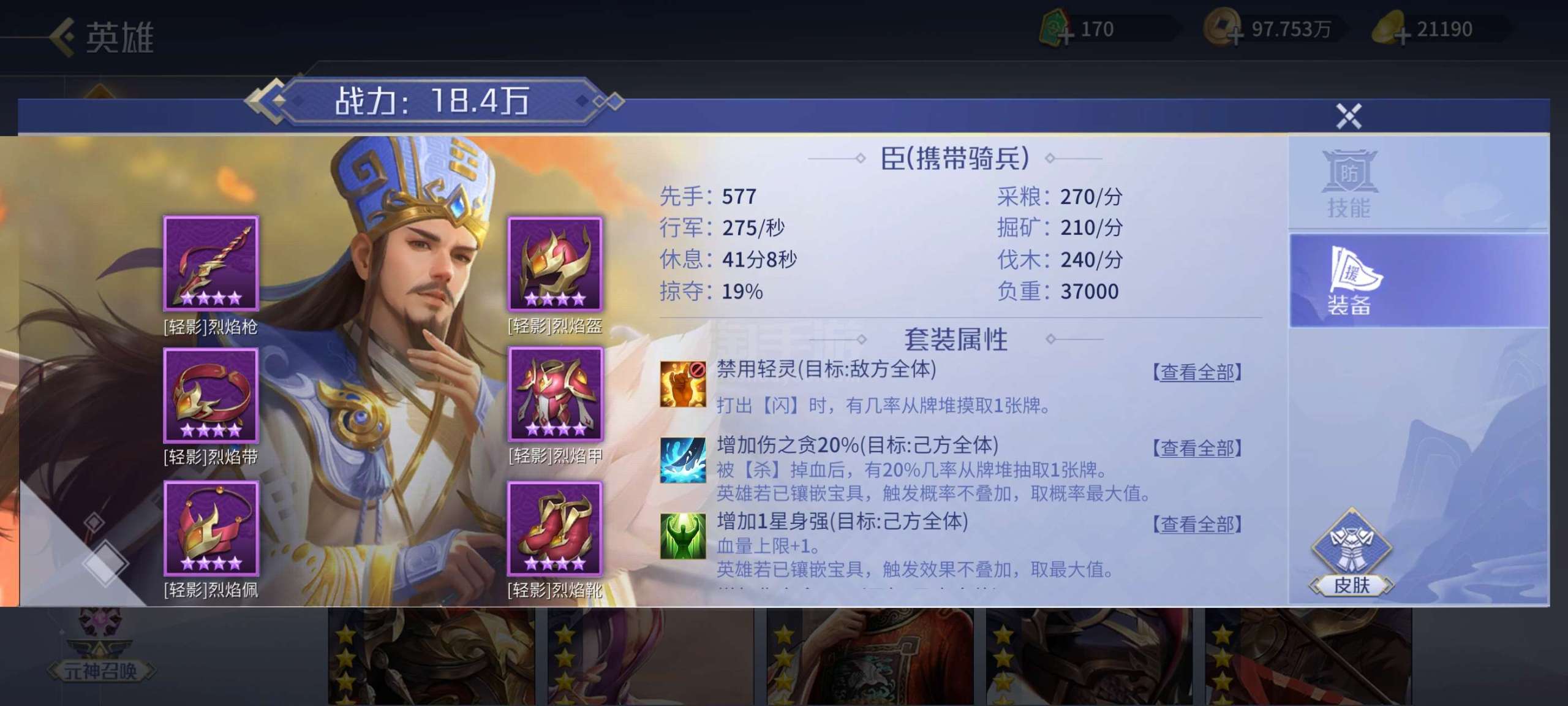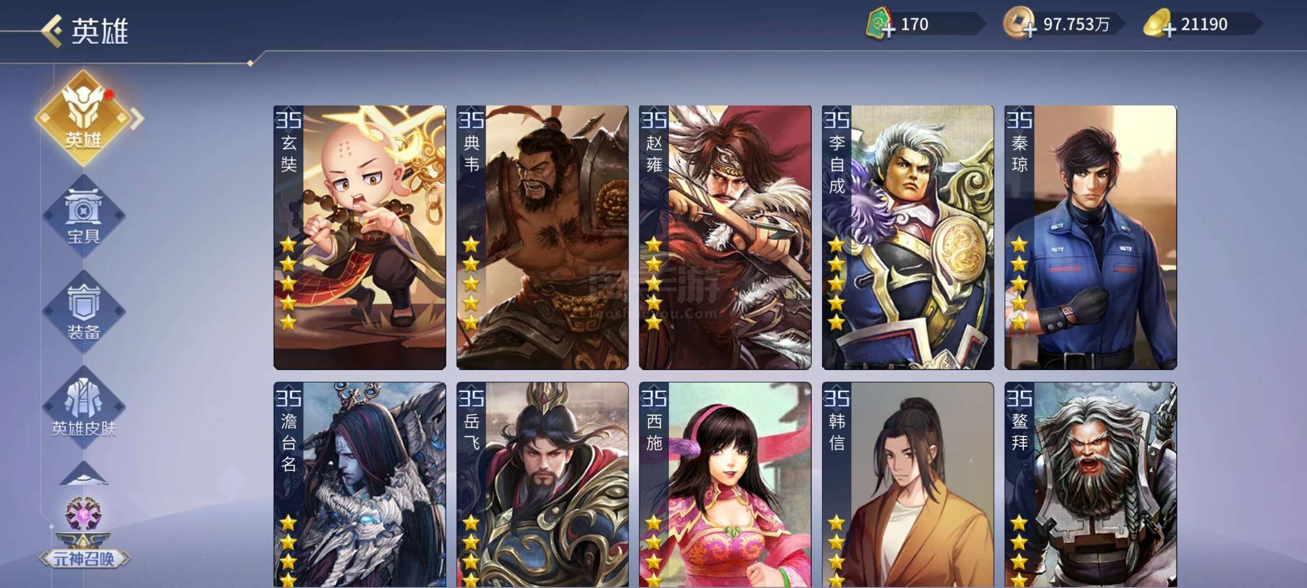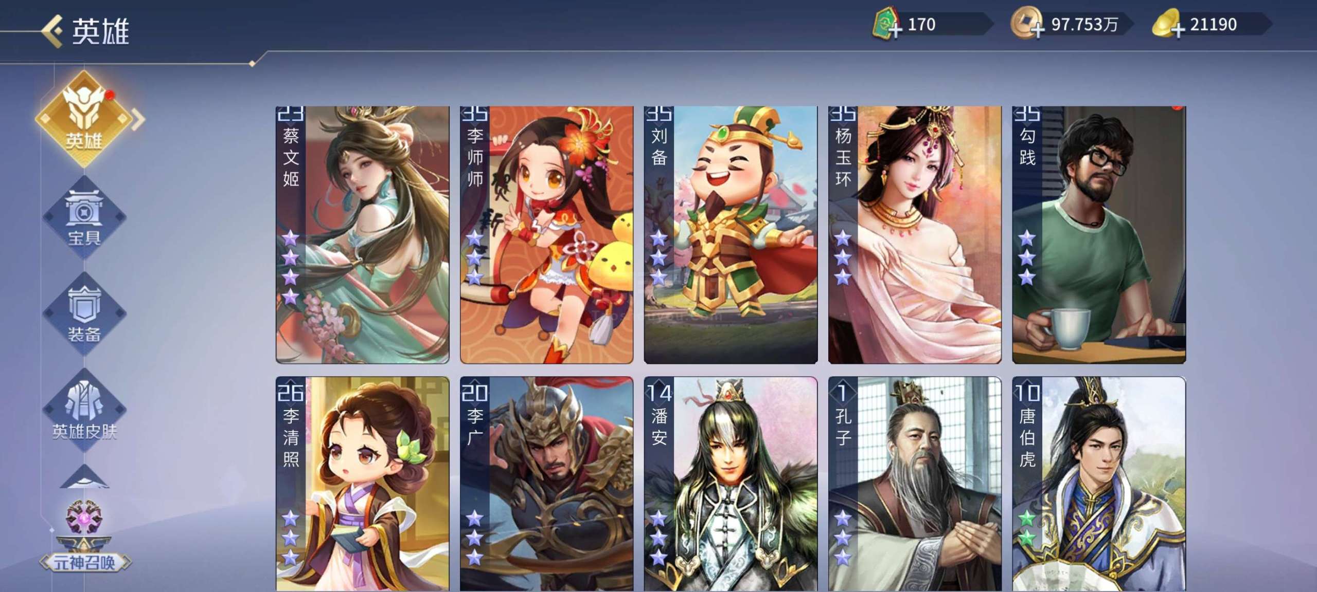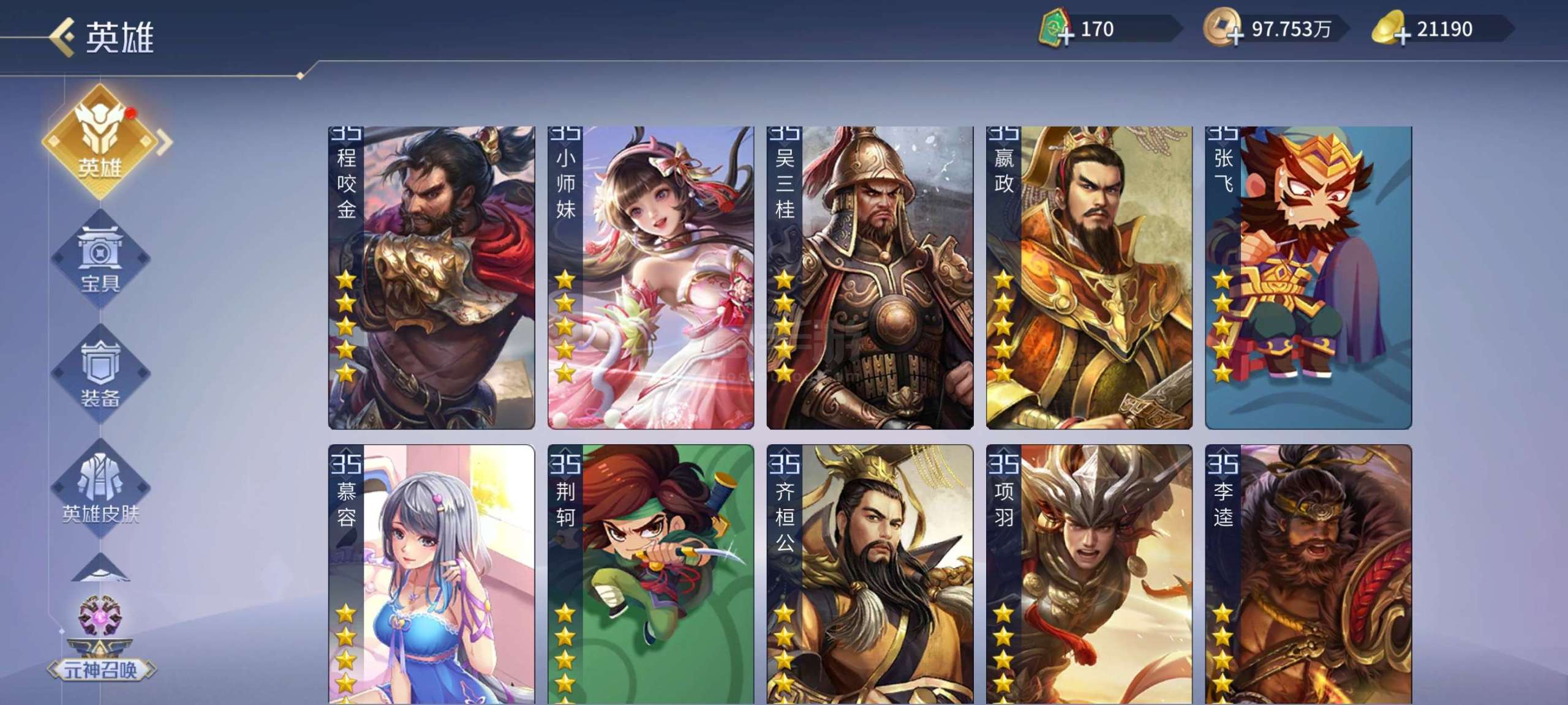 五星武将数量:
