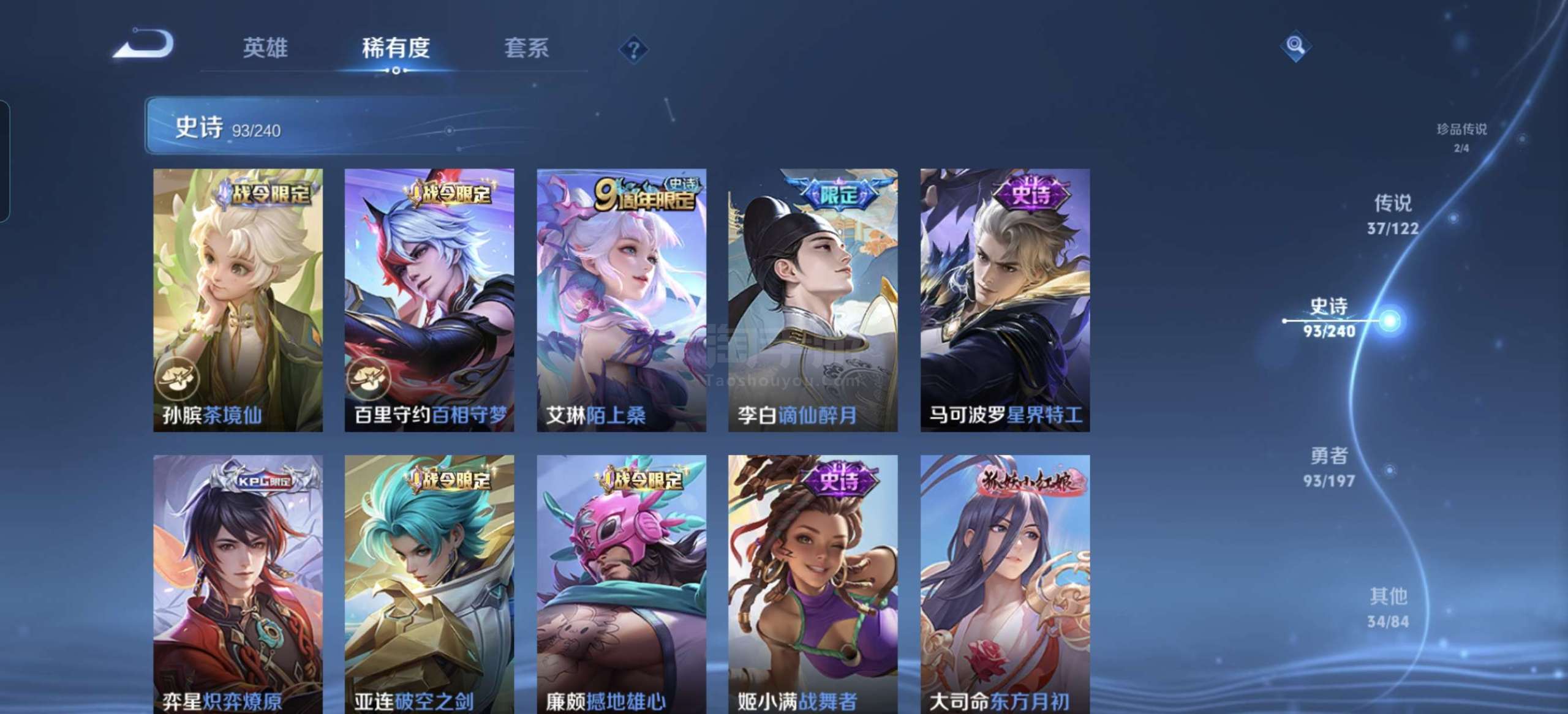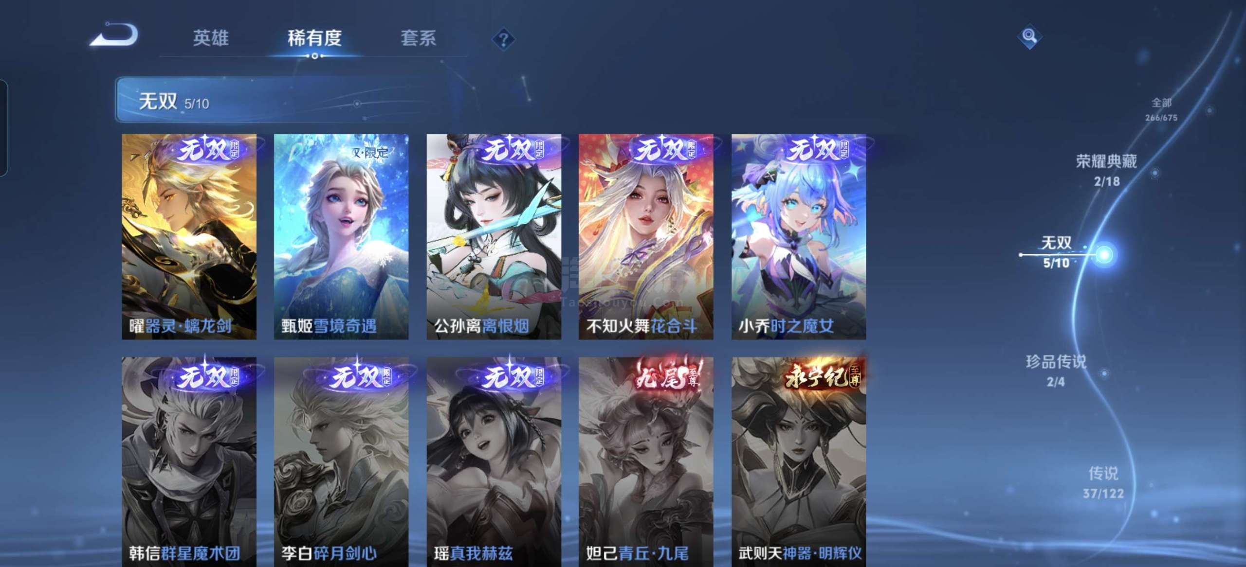 王者荣耀【安卓QQ】贵族9精品偏女号,2典藏5无双2珍品37传说