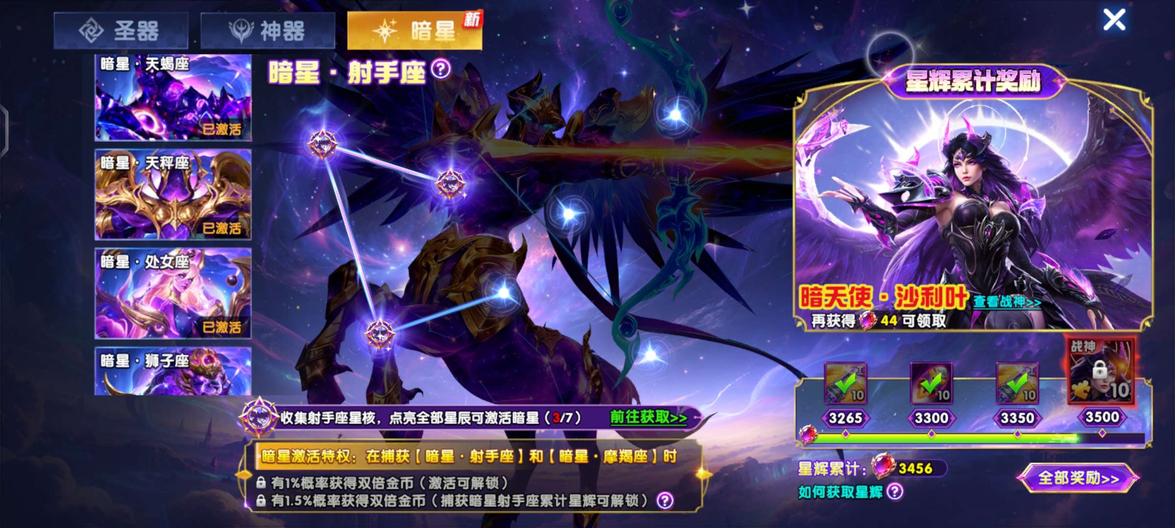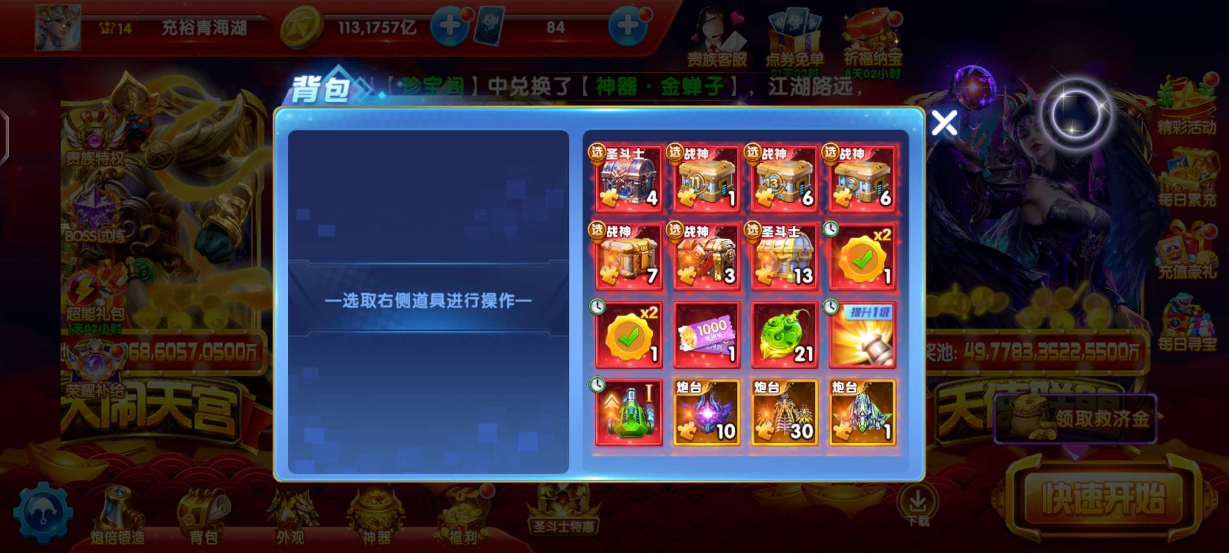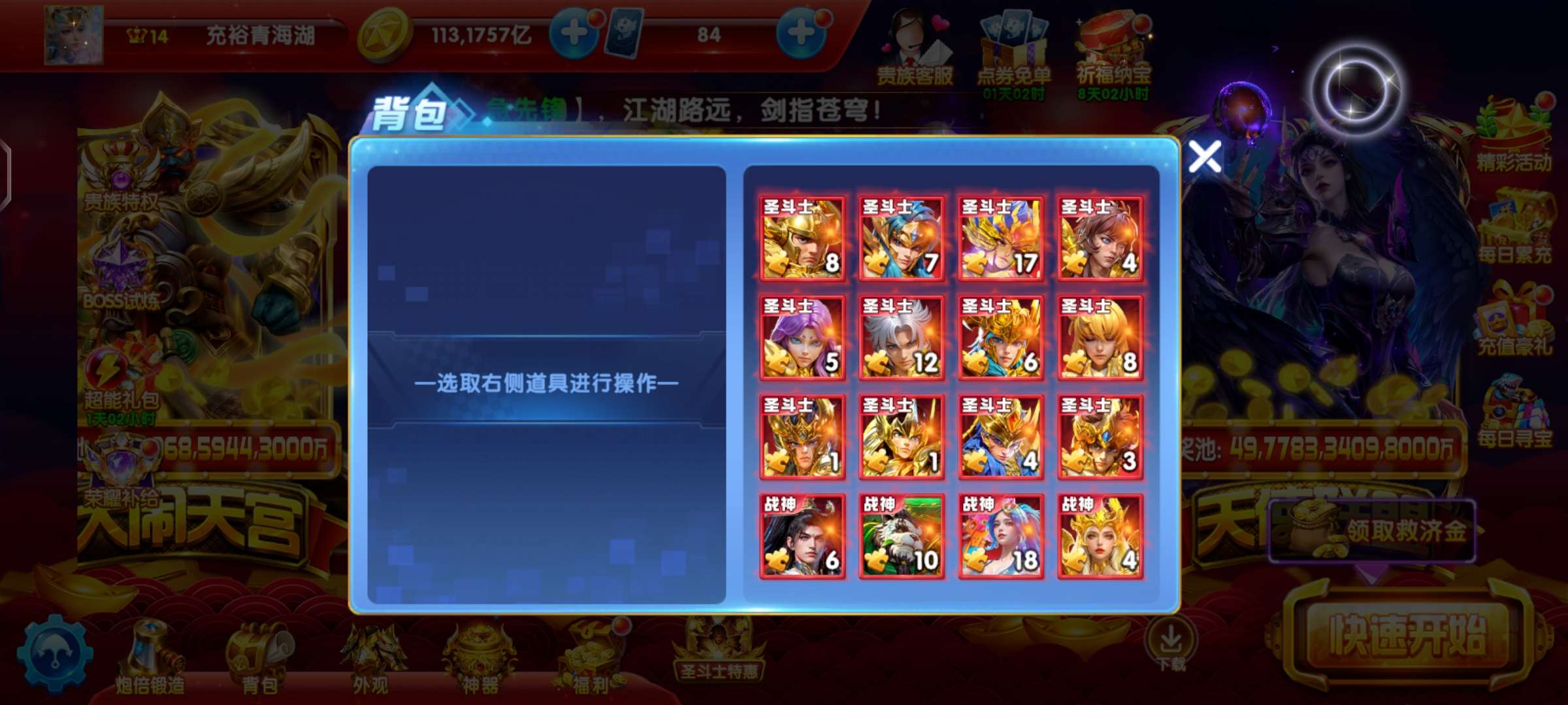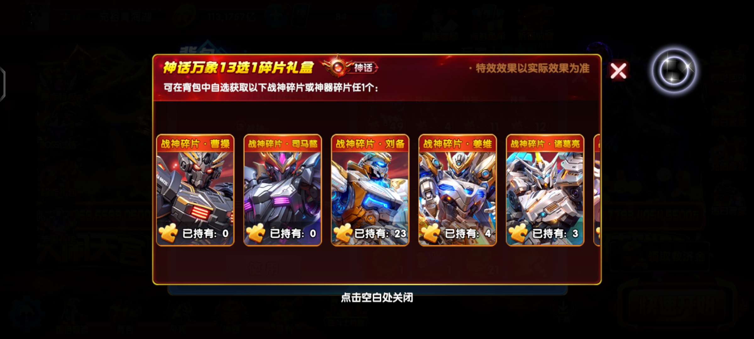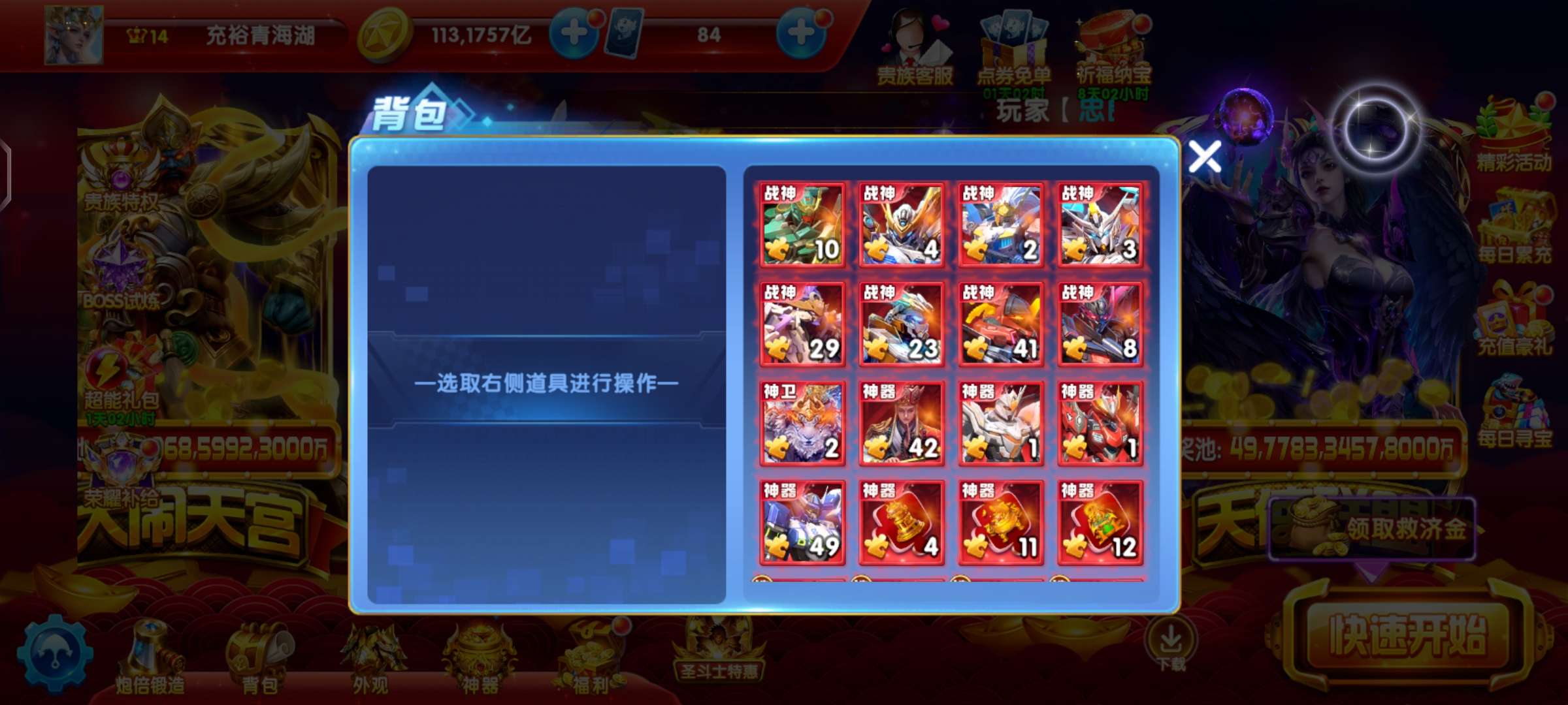 每天登录,活动的免费战神和碎片都有领,没点爆率是领不了的,号养的很好