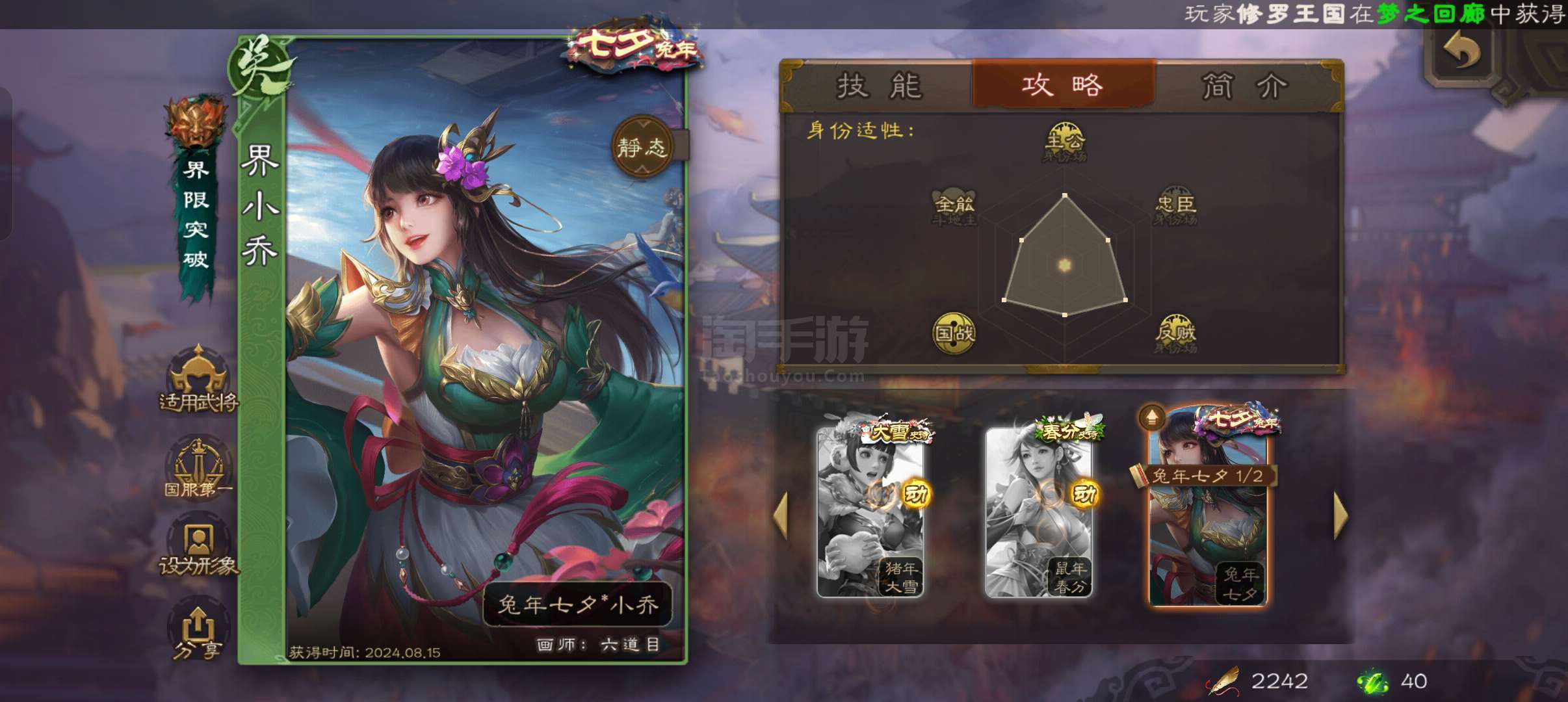 界李儒花鬘双史诗先锋,神周瑜神吕蒙动界关羽动曹冲动界小乔146将