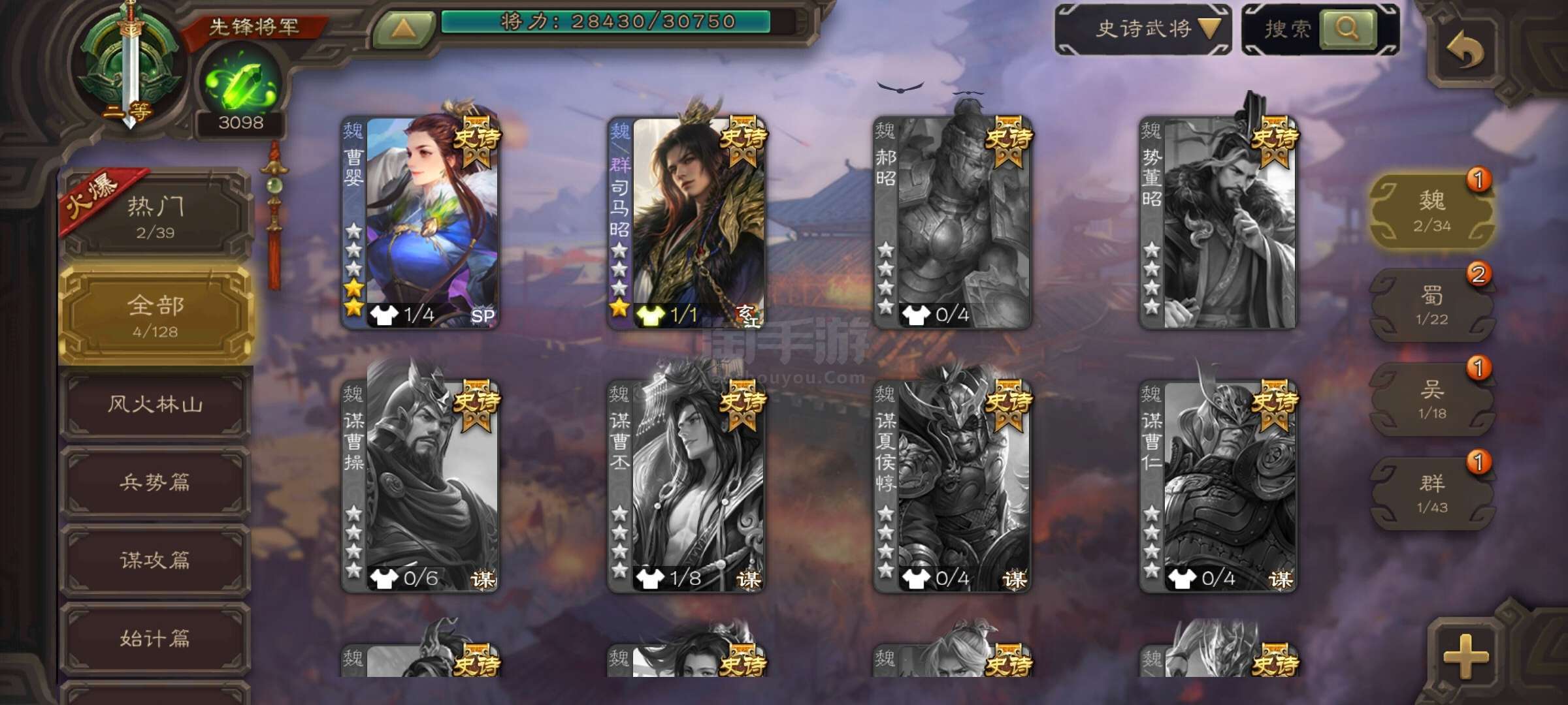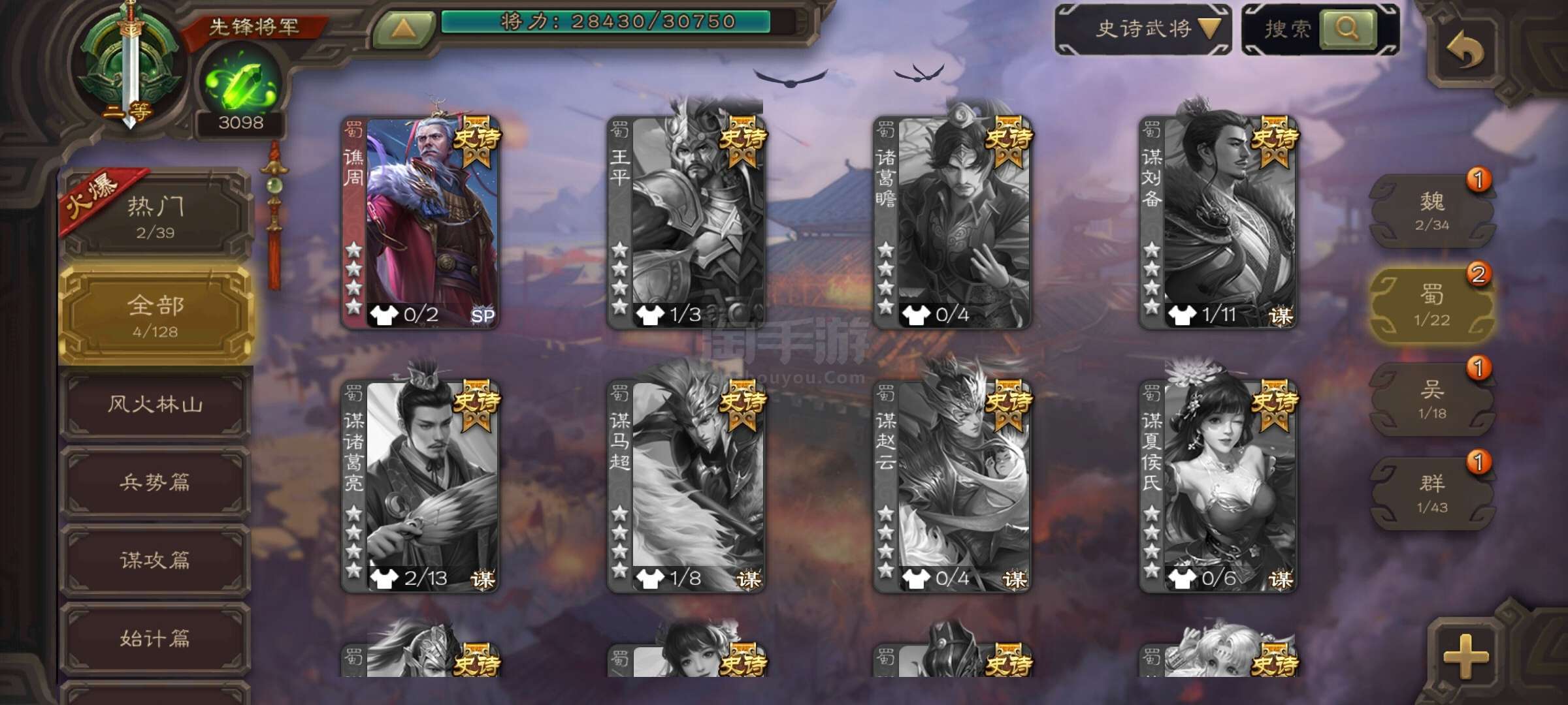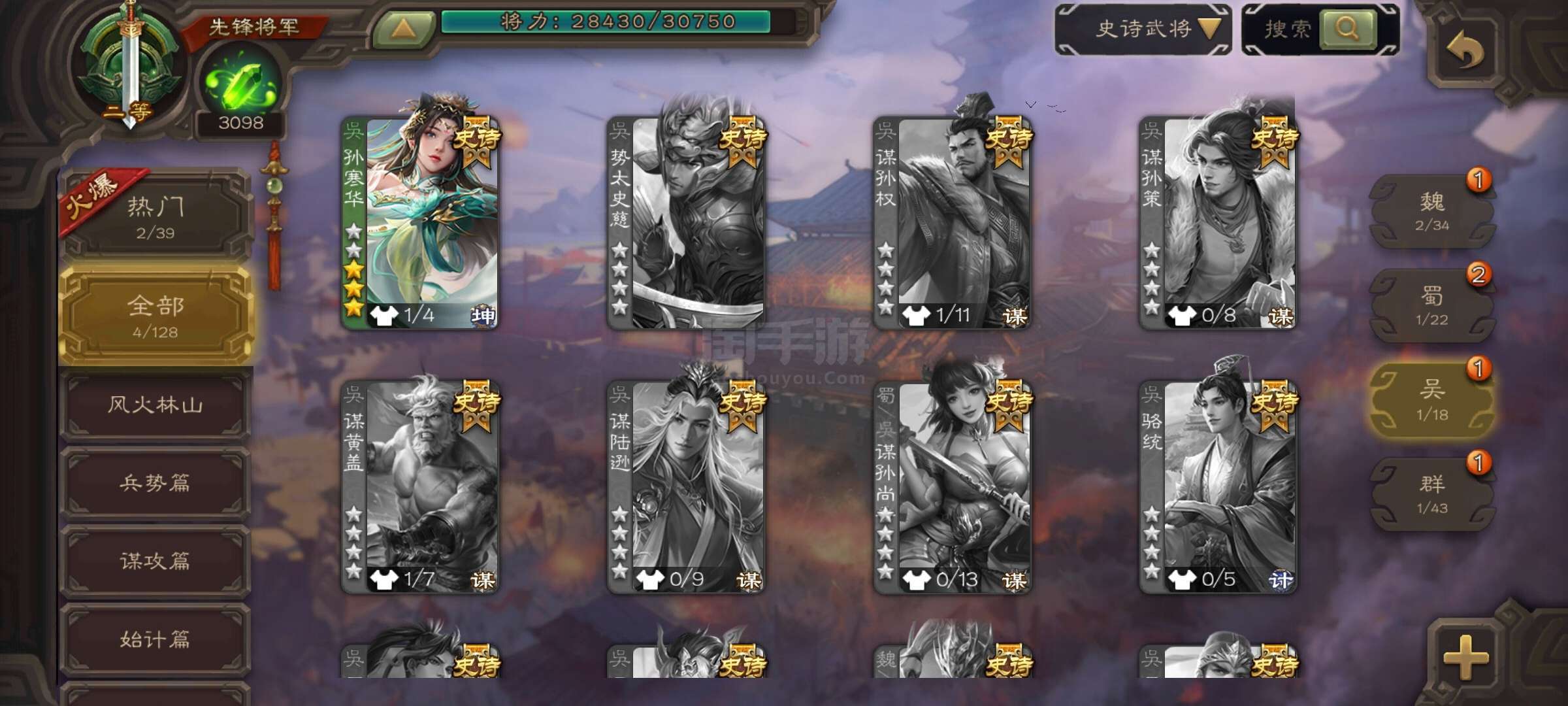 可以小刀,活绑孙寒华+动皮,曹婴+动皮,谯周,司马昭+动皮,4史诗3动皮,谋周瑜谋卢植还有好多好精品