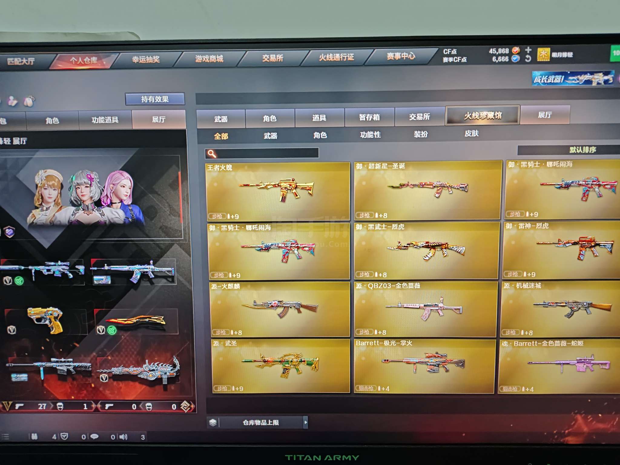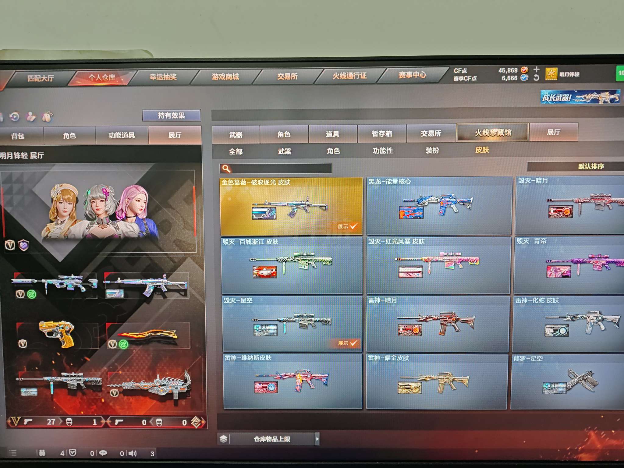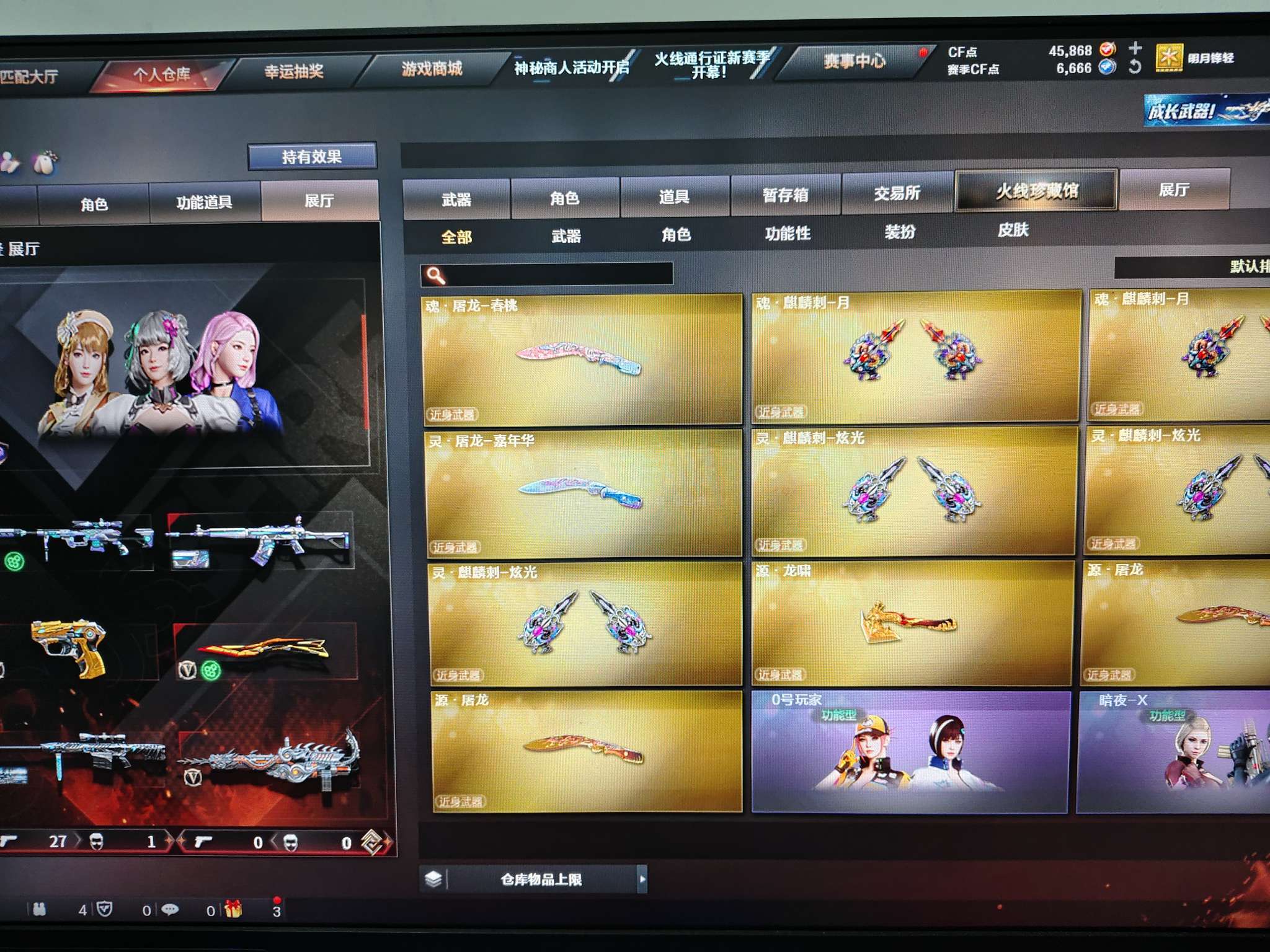 端游 22v云悠悠套装(无手枪)炽芒蝶刃星神炽天使小人枪雷霆王者手枪 qbz毁灭雷神带皮 加特林擎天麒麟刺