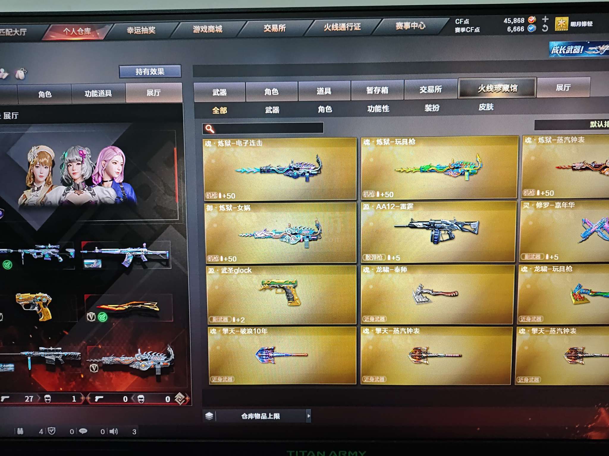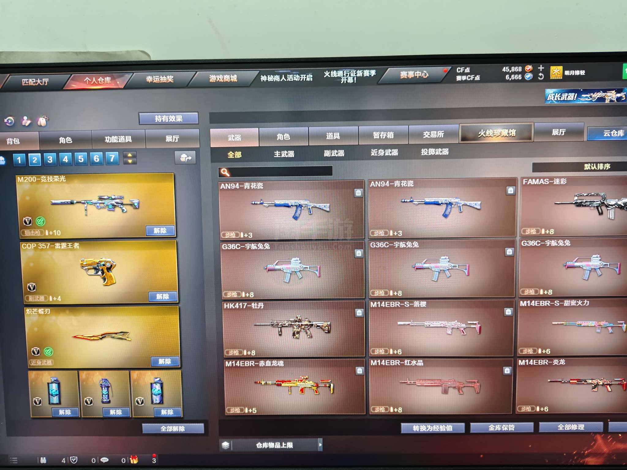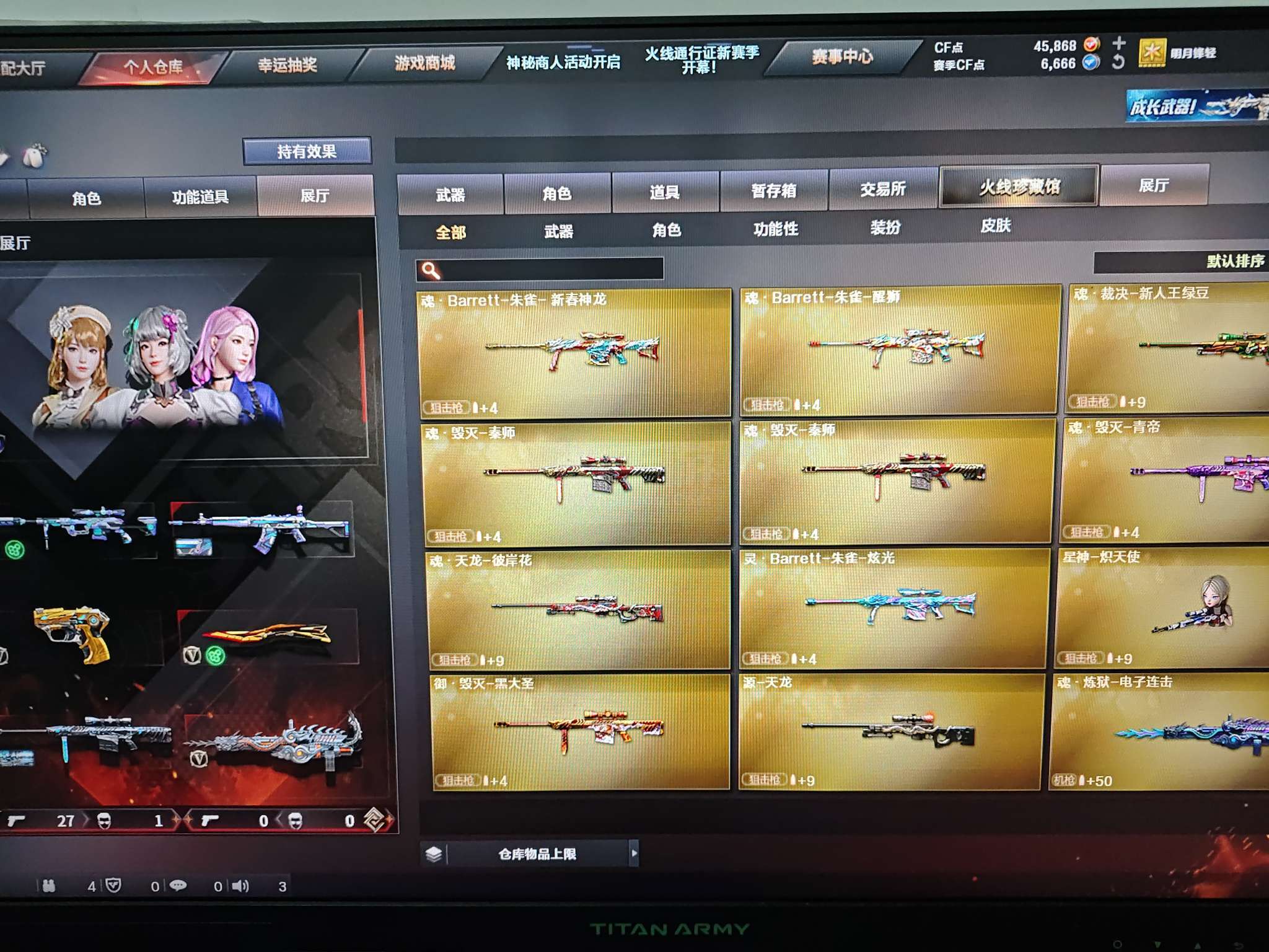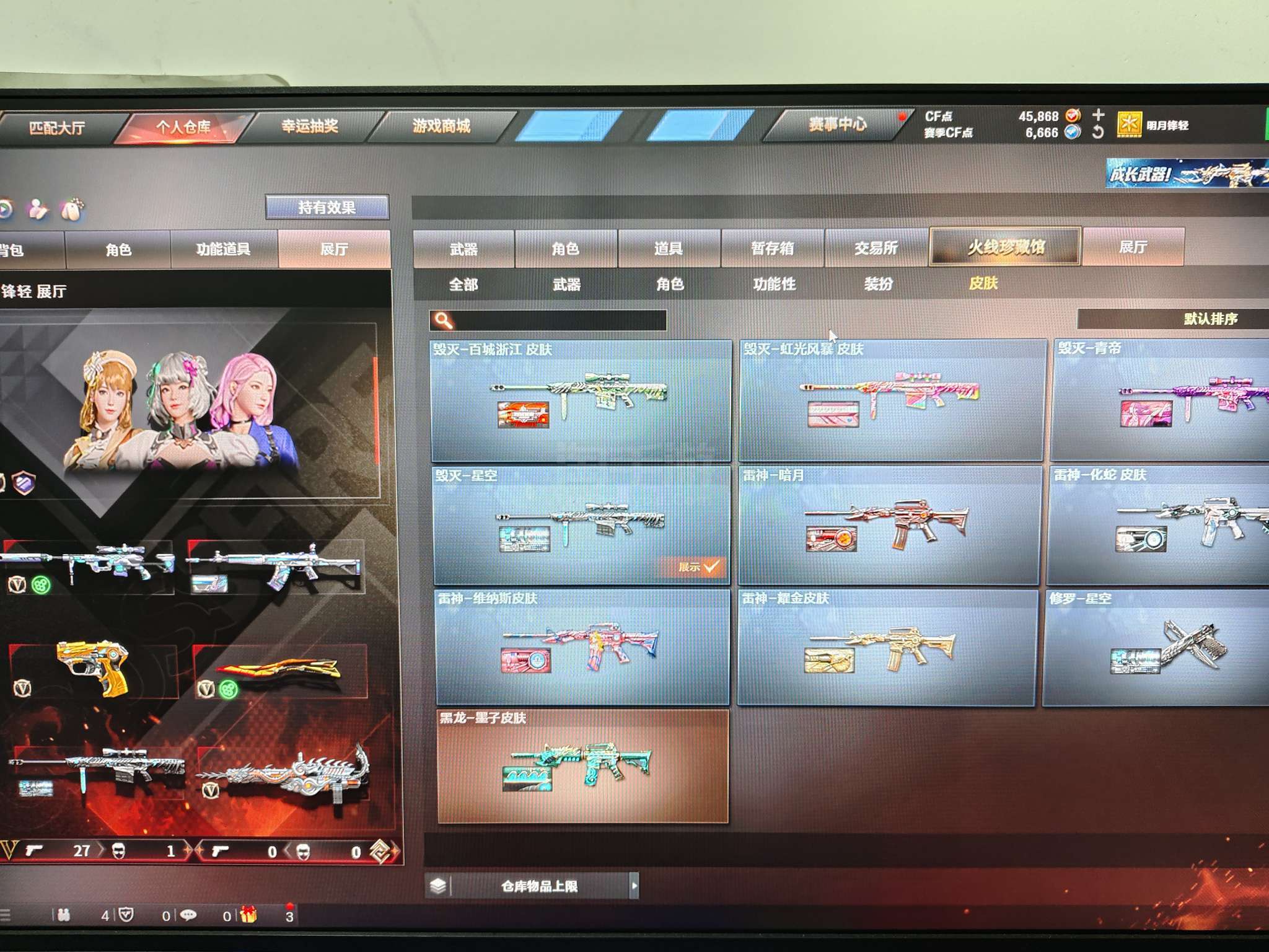 端游 22v云悠悠套装(无手枪)炽芒蝶刃星神炽天使小人枪雷霆王者手枪 qbz毁灭雷神带皮 加特林擎天麒麟刺