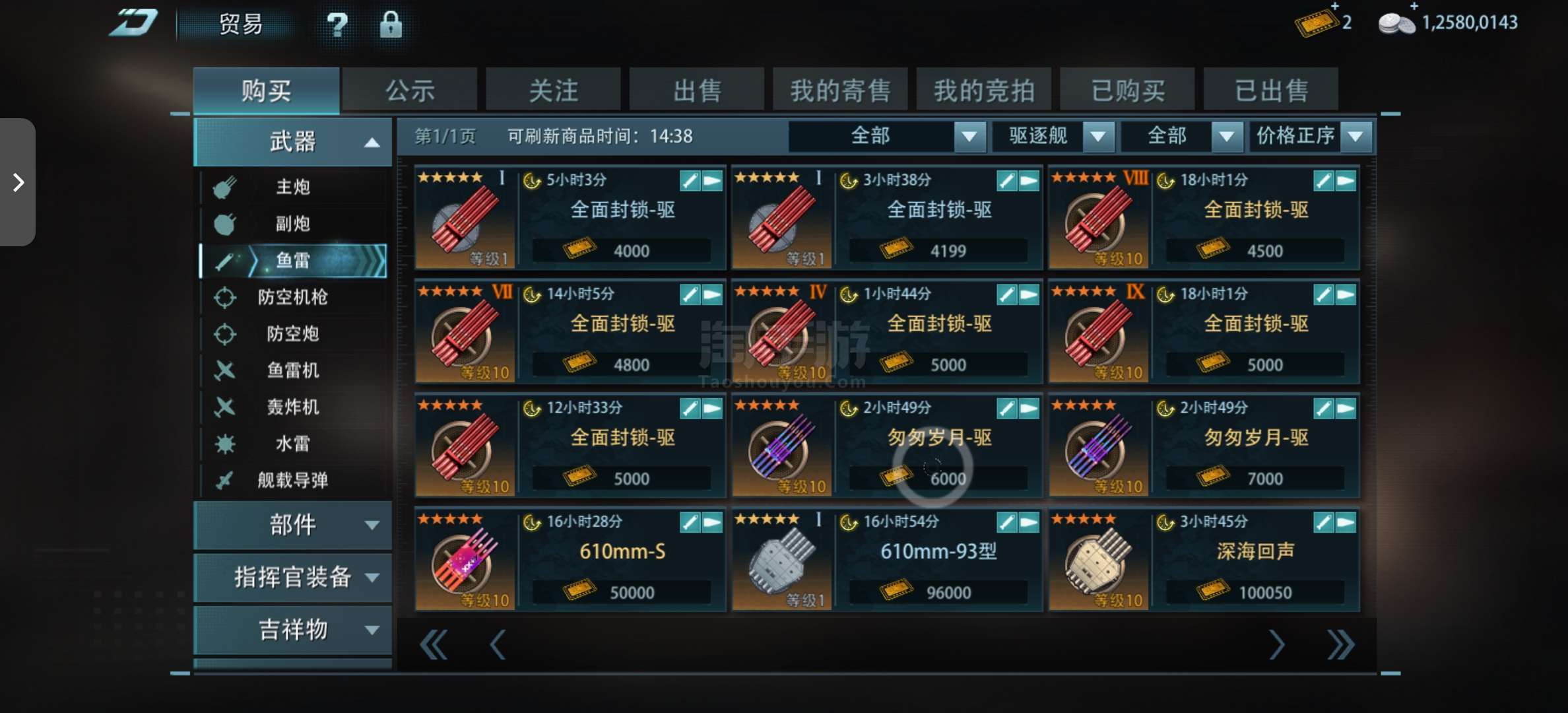 顶级驱逐 天阶CD1.5 鱼雷海 战役随便玩 有实力的来!