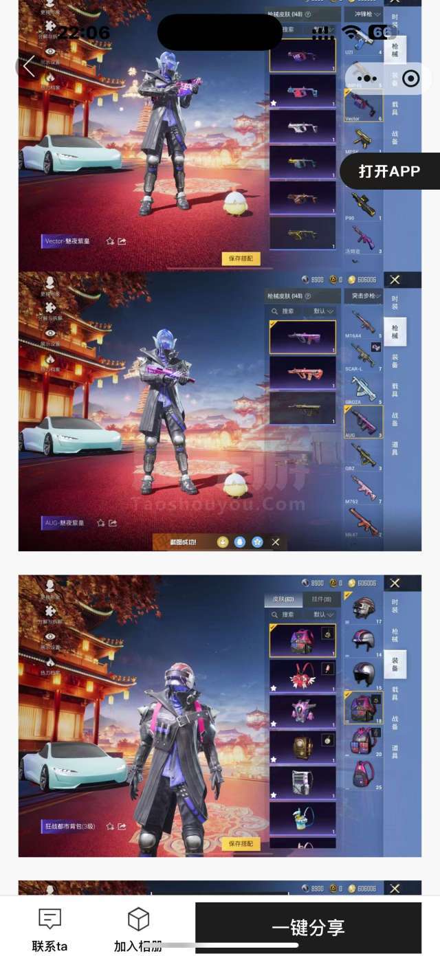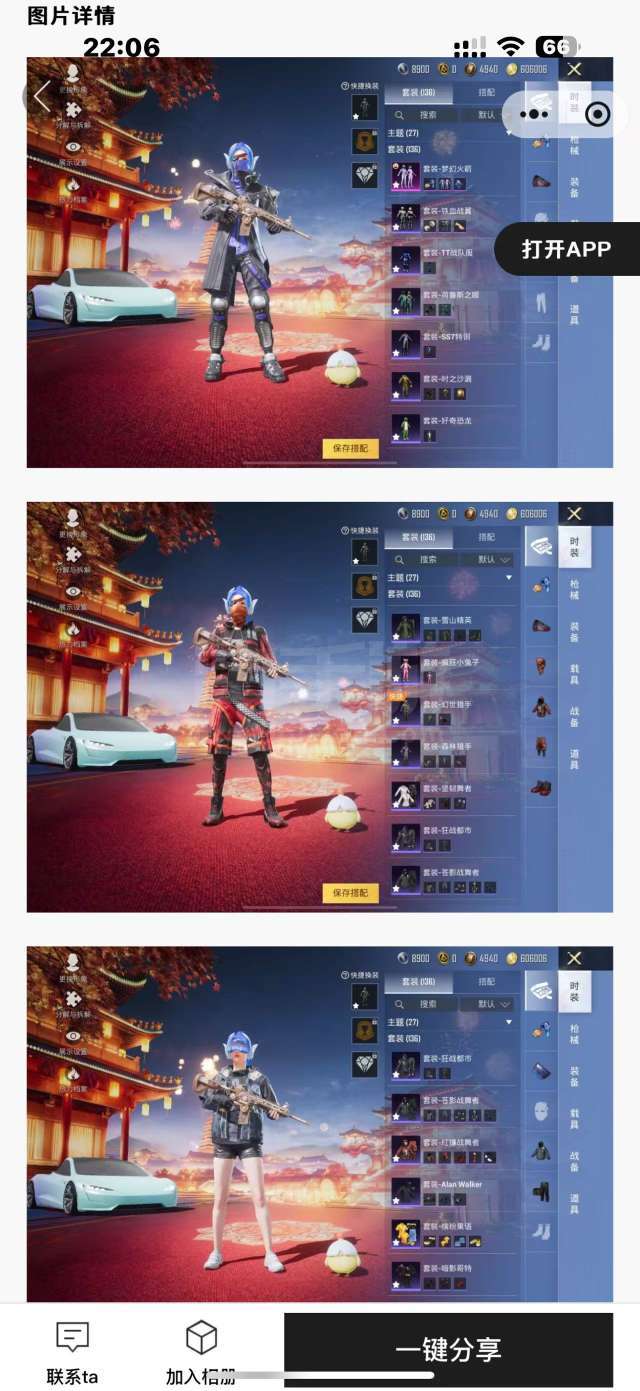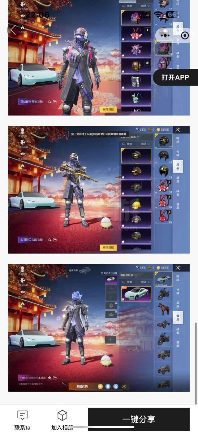 通过App,与卖家商议价格及保险,并向卖家索要账号最新截图,确认后下单购买。