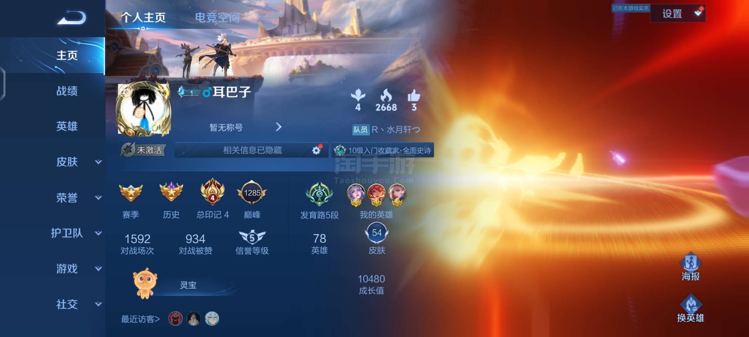 王者荣耀 己上荣耀在榜金标,巅峰1600