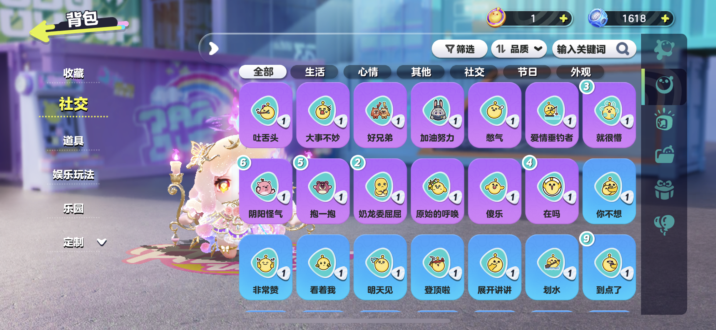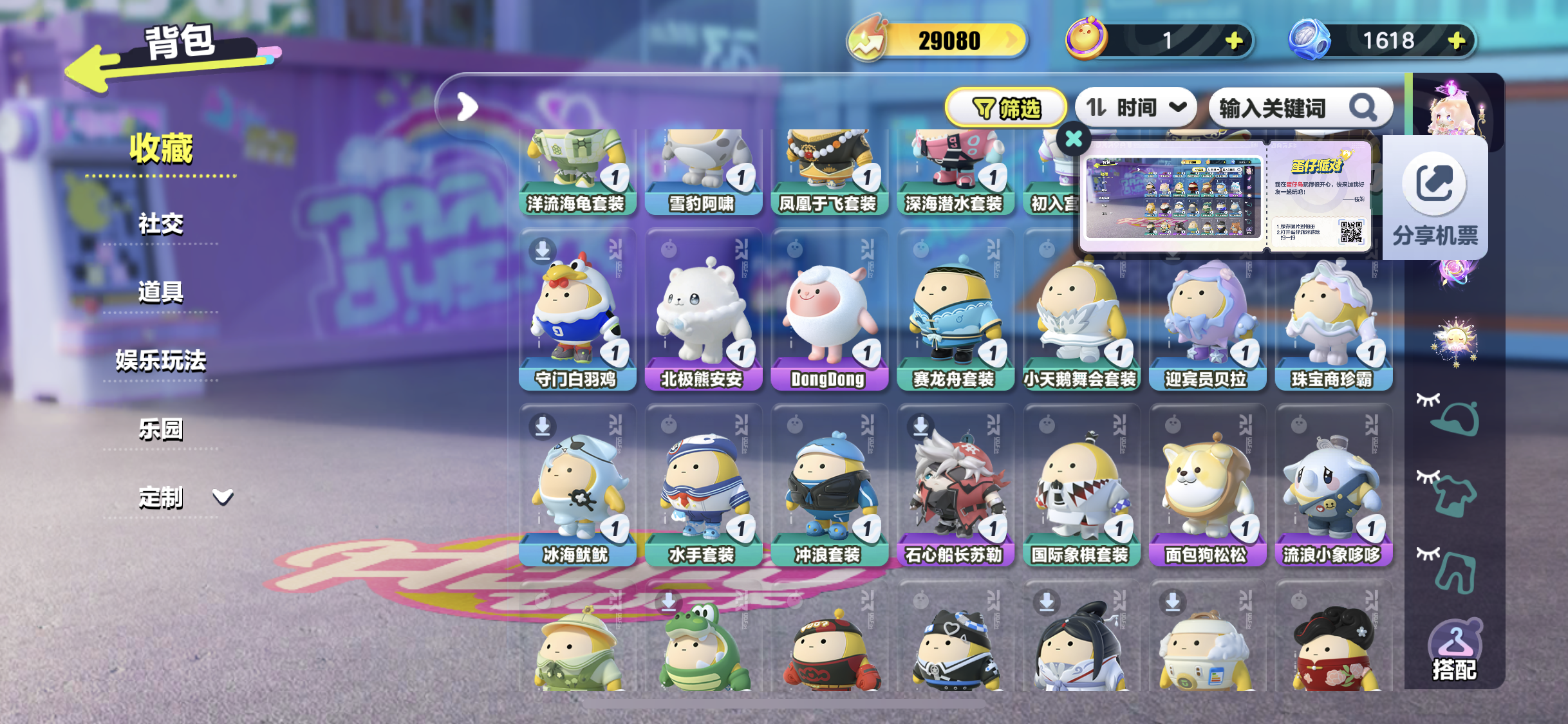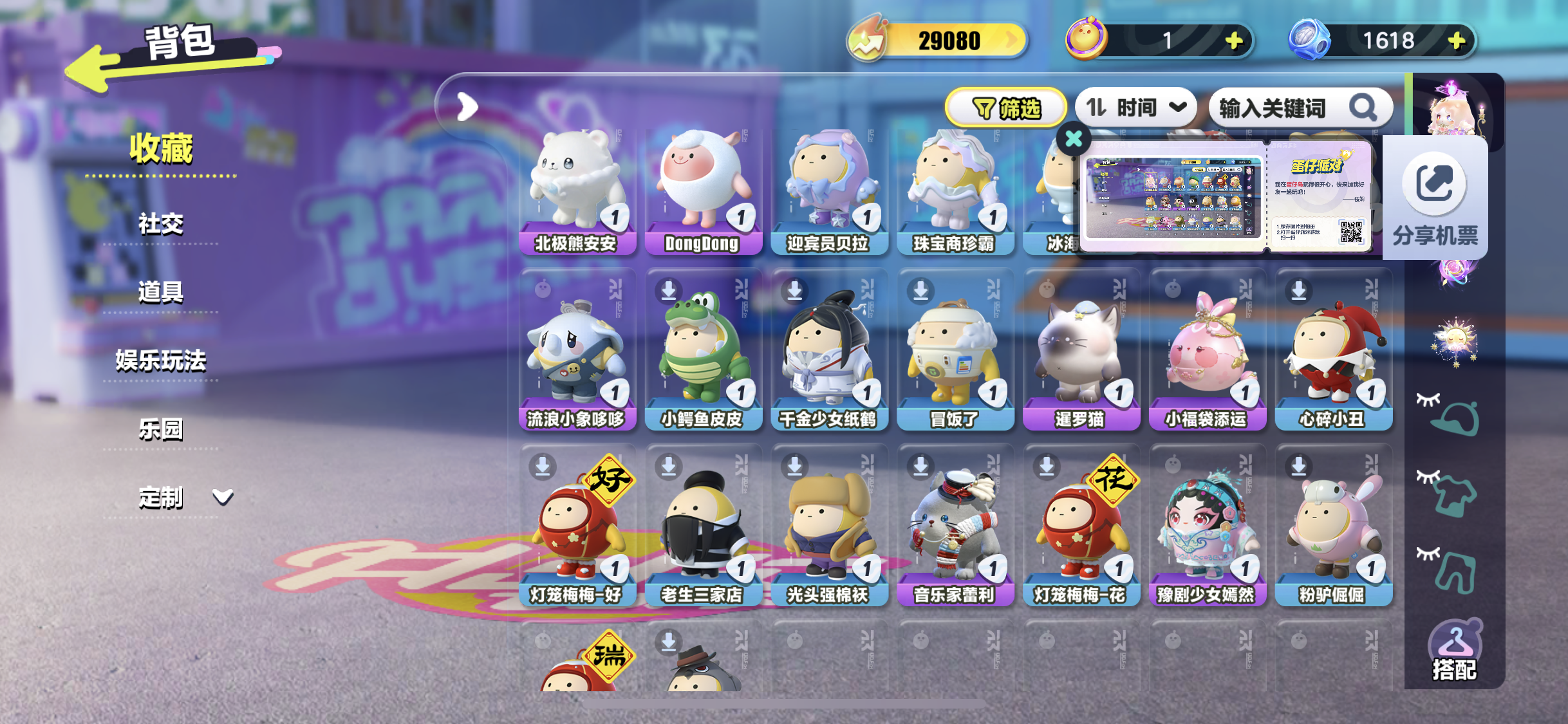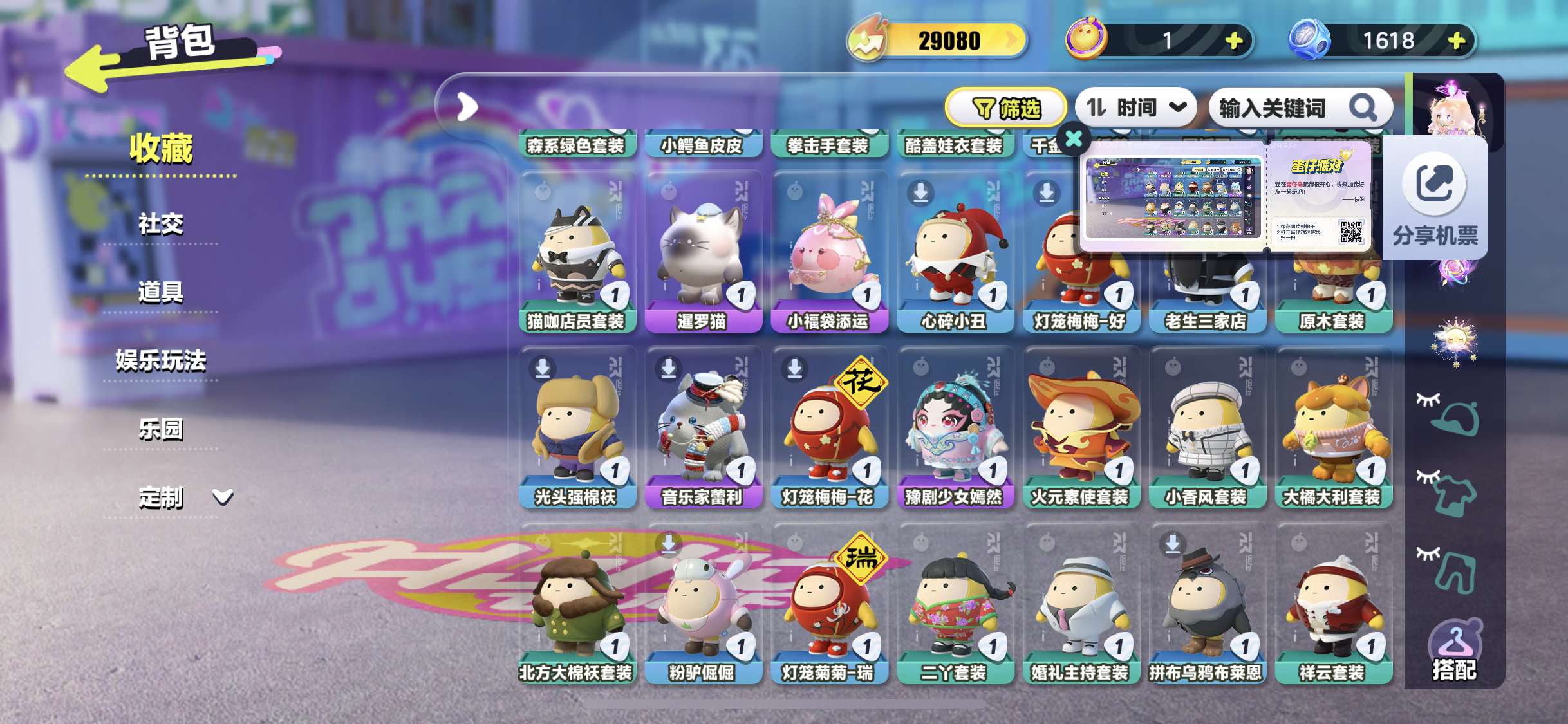 有一个至臻还有小羊全套哦 还有其余等多个典藏和稀有盲盒 表情动作也很多 还有林间想滚动特效呦呦等 段位上过超级凤凰单五个印记也还有超多小配饰
