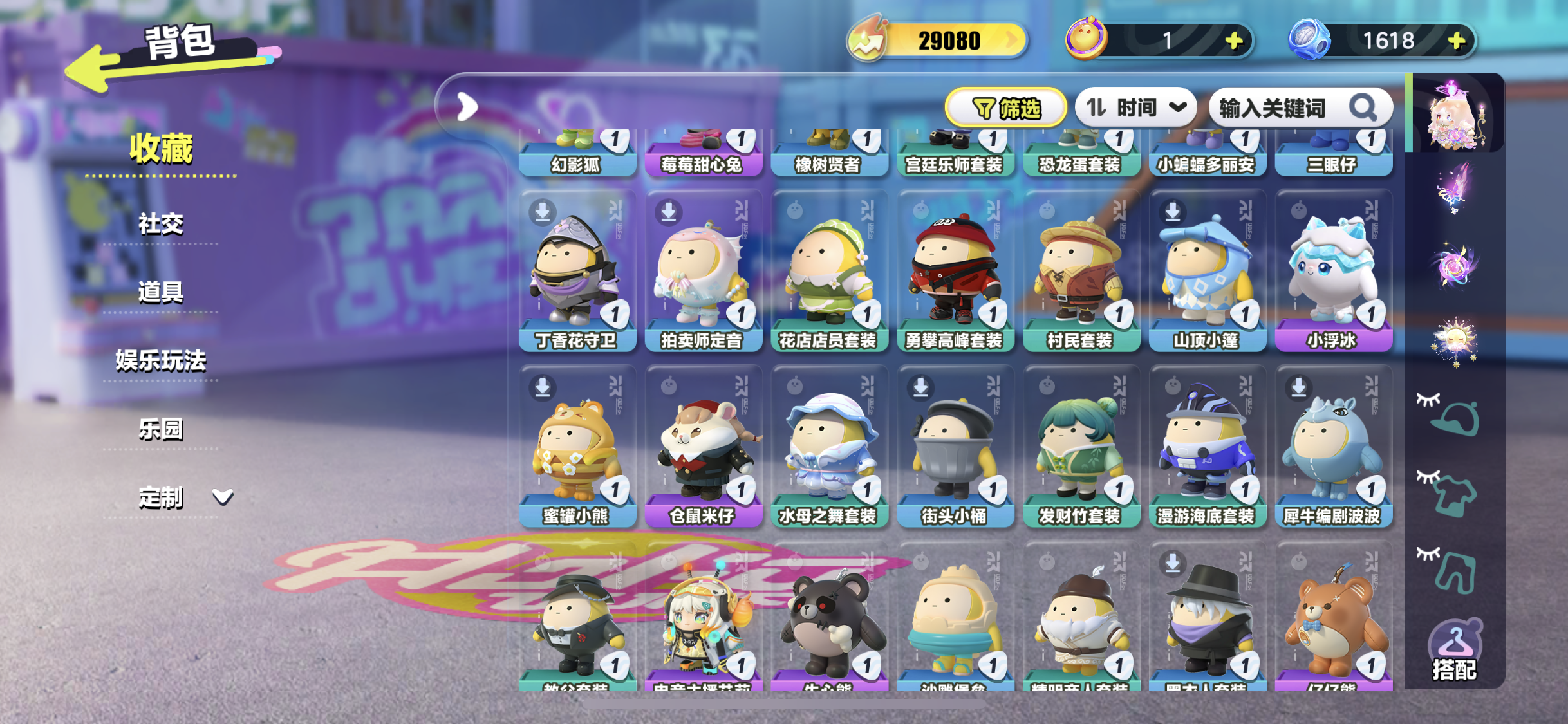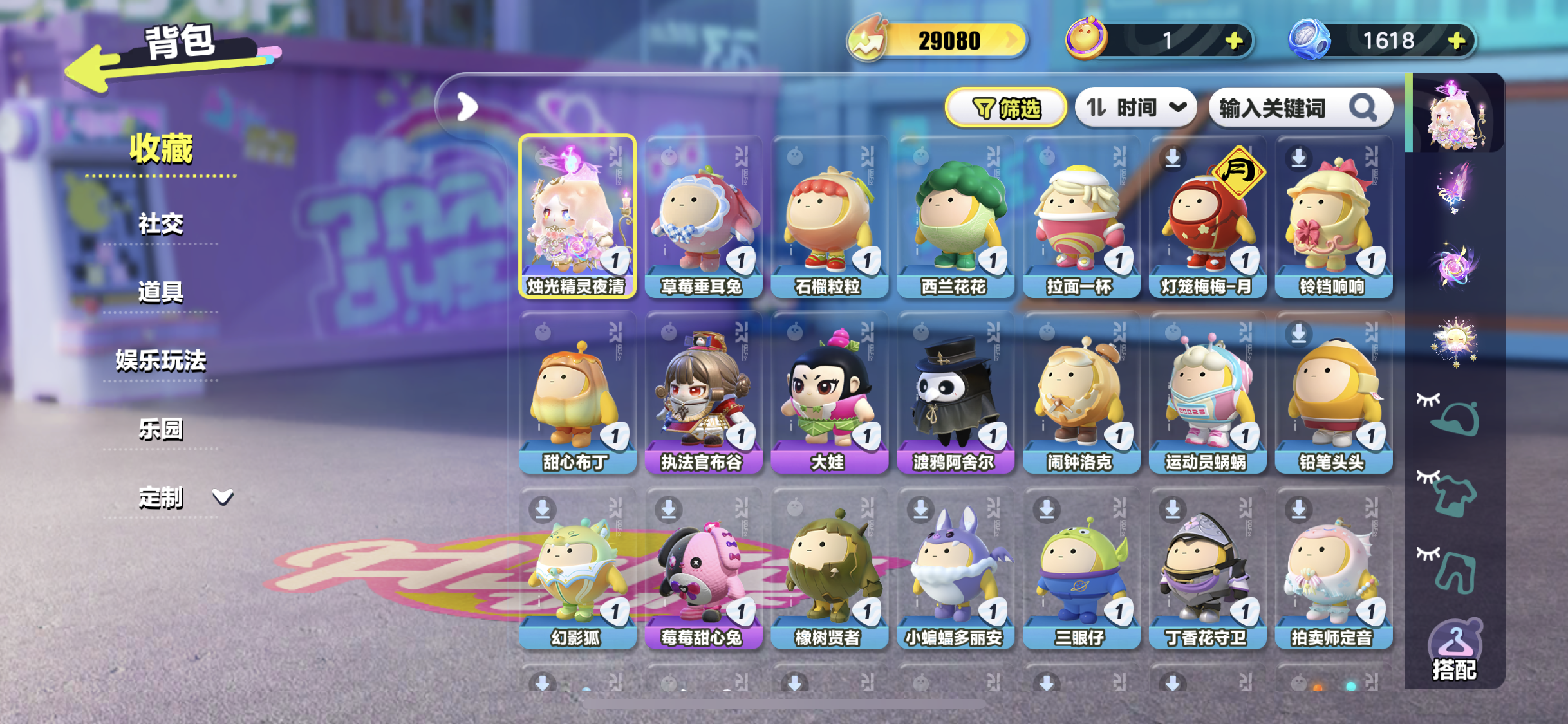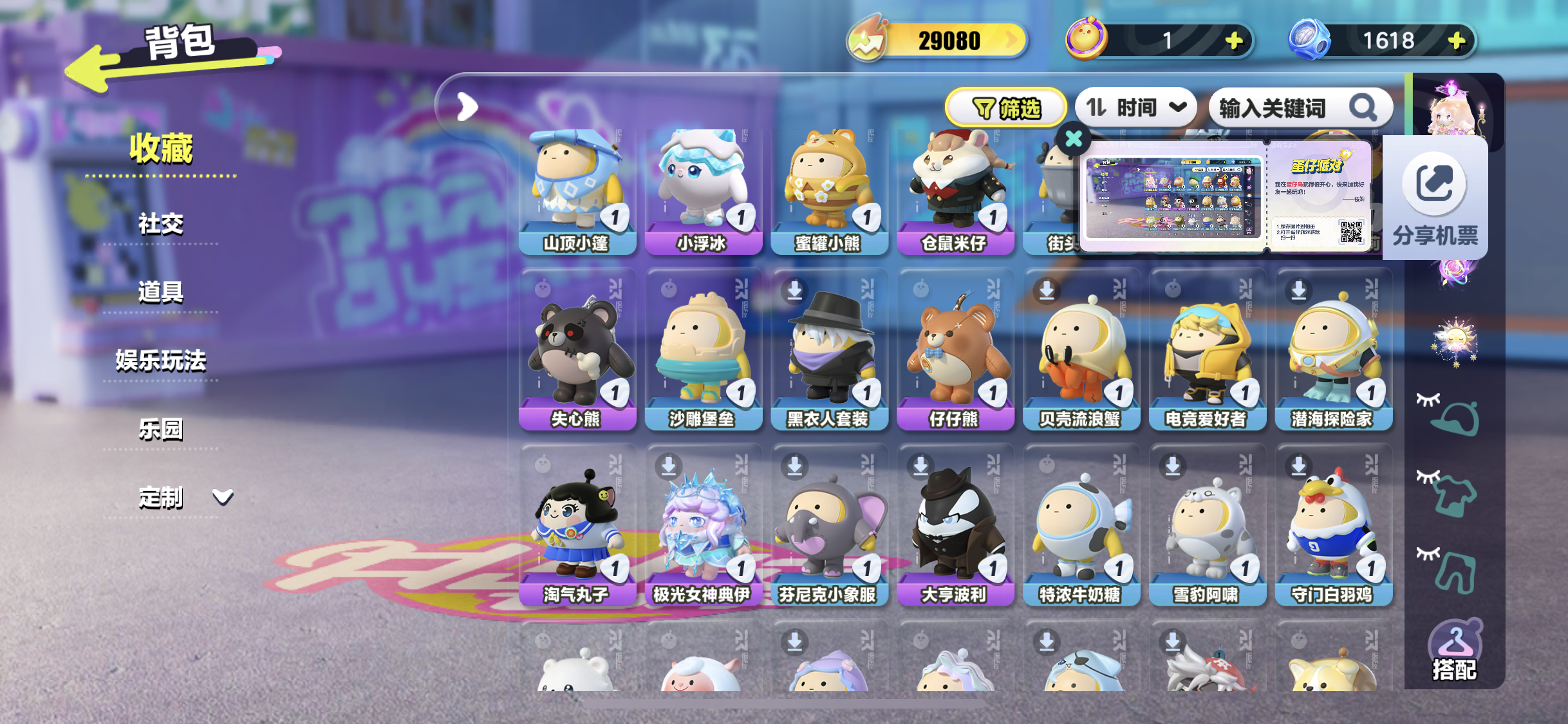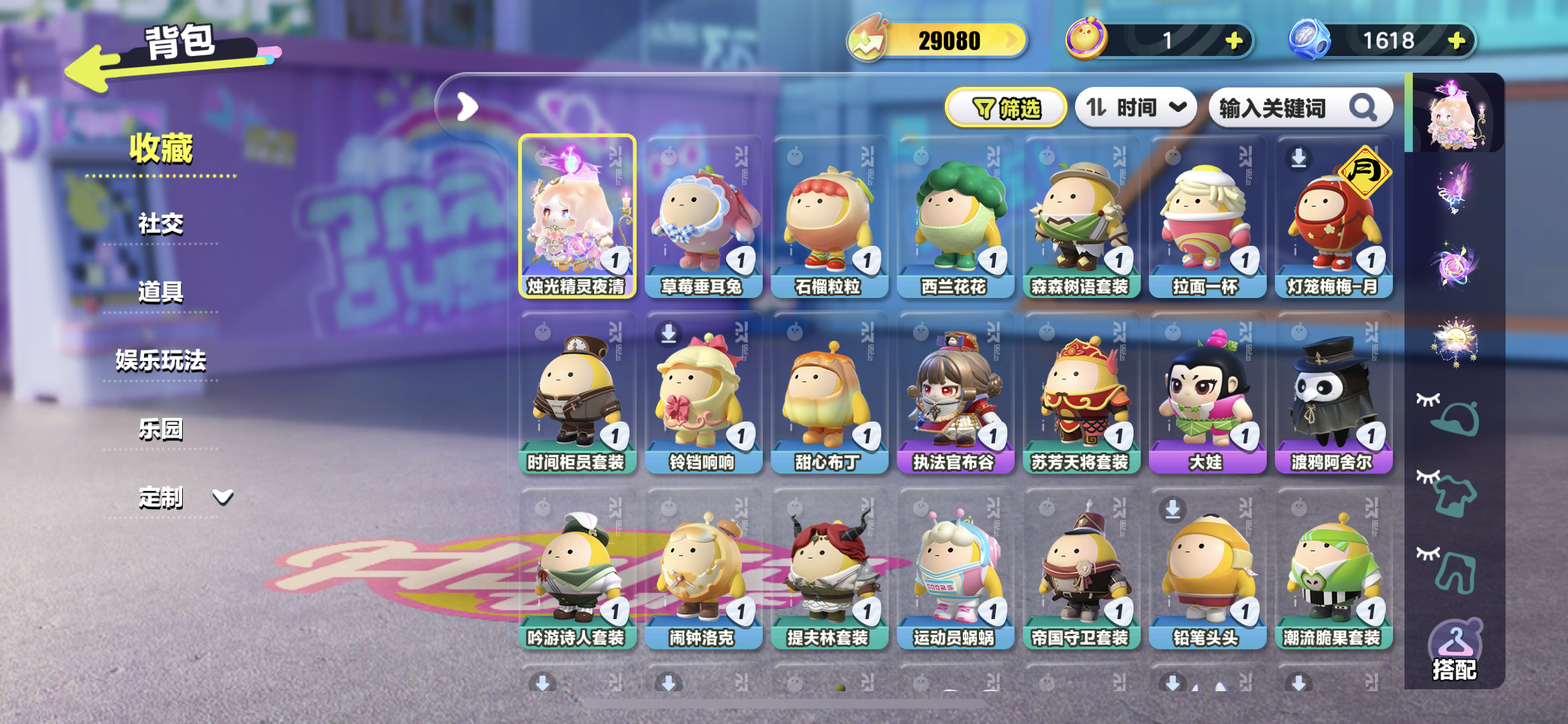 有一个至臻还有小羊全套哦 还有其余等多个典藏和稀有盲盒 表情动作也很多 还有林间想滚动特效呦呦等 段位上过超级凤凰单五个印记也还有超多小配饰