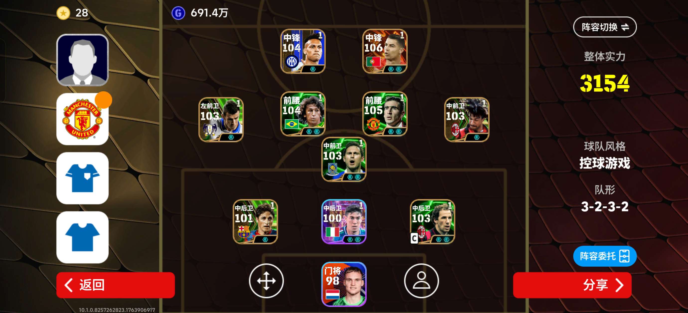 3191双卡大力梅,18个增能球员,三个黄传四个梦幻精选,205天月卡加永久卡,可刀(安卓官服)可刀