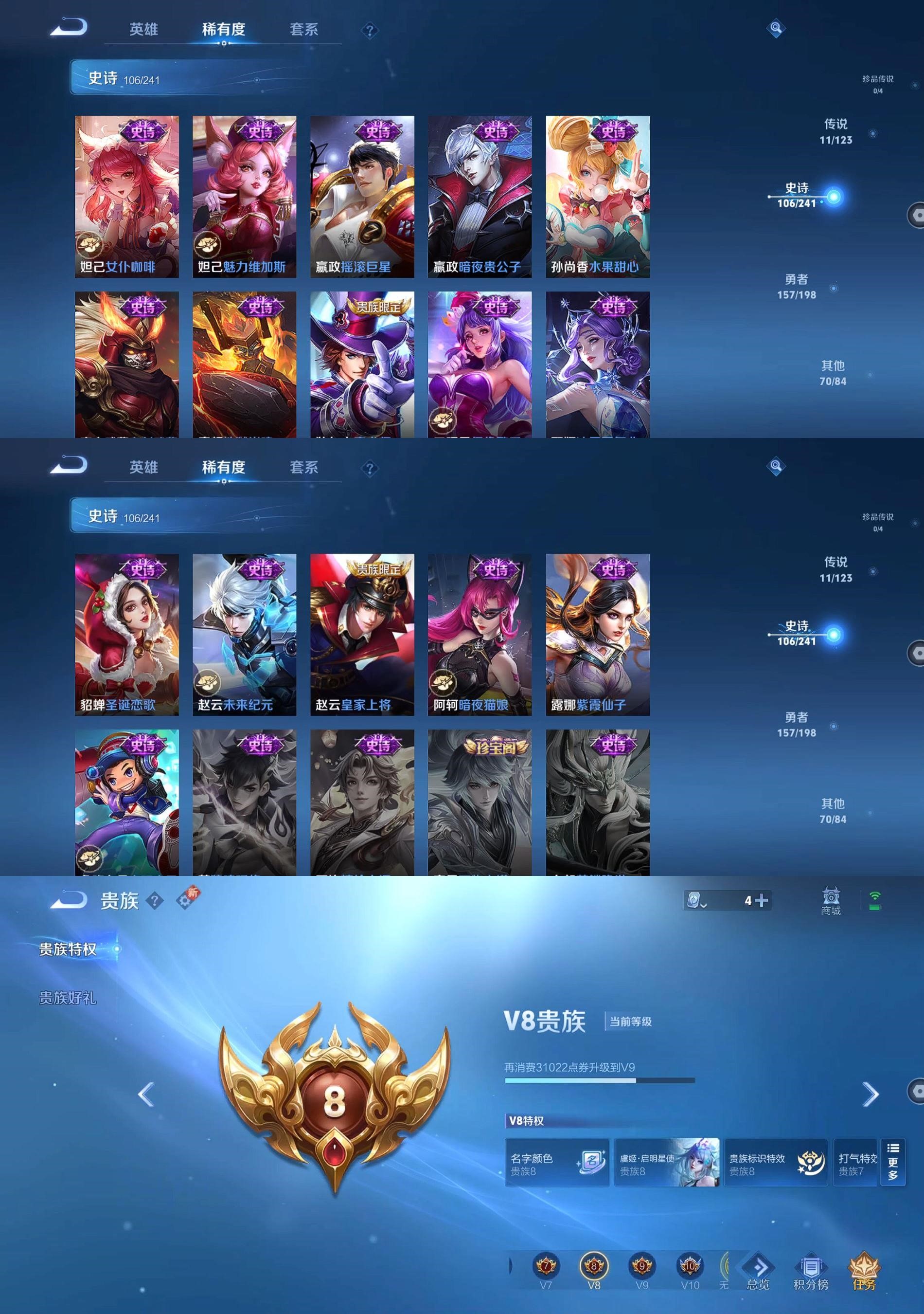 [王者荣耀]V81典藏11传说106史诗345皮肤至圣王者