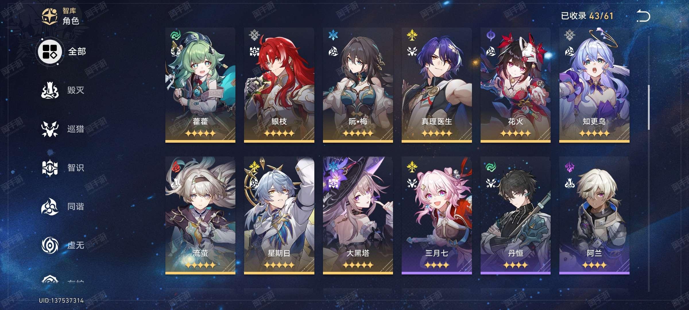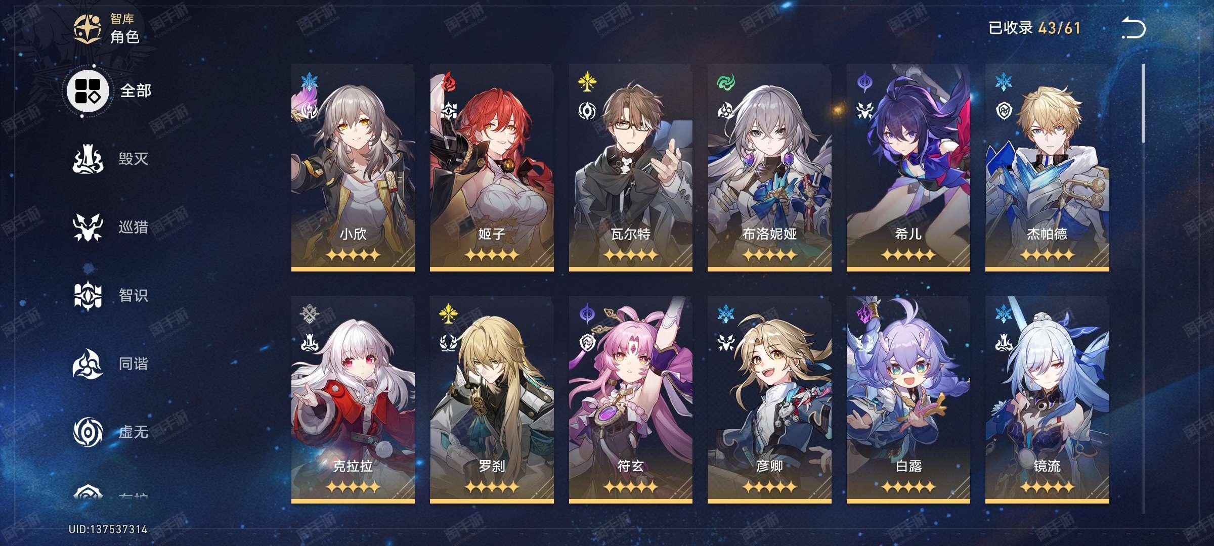 崩坏:星穹铁道【安卓官方】安卓版本崩铁号有完整的四队左右角色基本都毕业