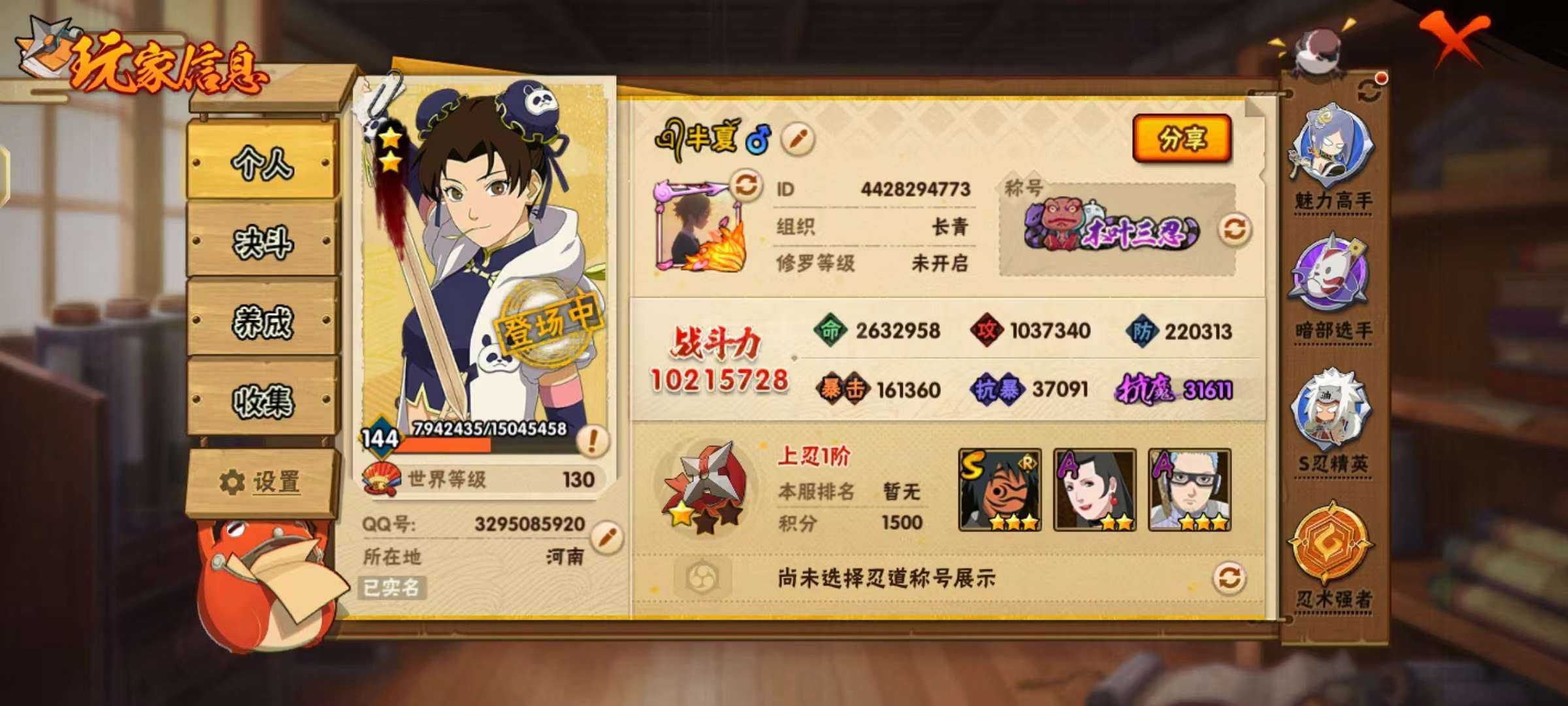 【S级忍者】:千手柱间「秽土转生」(3星千手柱间「秽土转生」)(3星千手柱间「秽土转生」),宇智波鼬「秽土转生」(3星宇智波鼬「秽土转生」)(3星宇智波鼬「秽土转生」),宇智波斑「秽土转生·解」(3星宇智波斑「秽土转生·解」)(3星宇智波斑「秽土转生·解」),大野木「忍界大战」(3星大野木「忍界大战」)(3星大野木「忍界大战」),春野樱「忍界大战」(