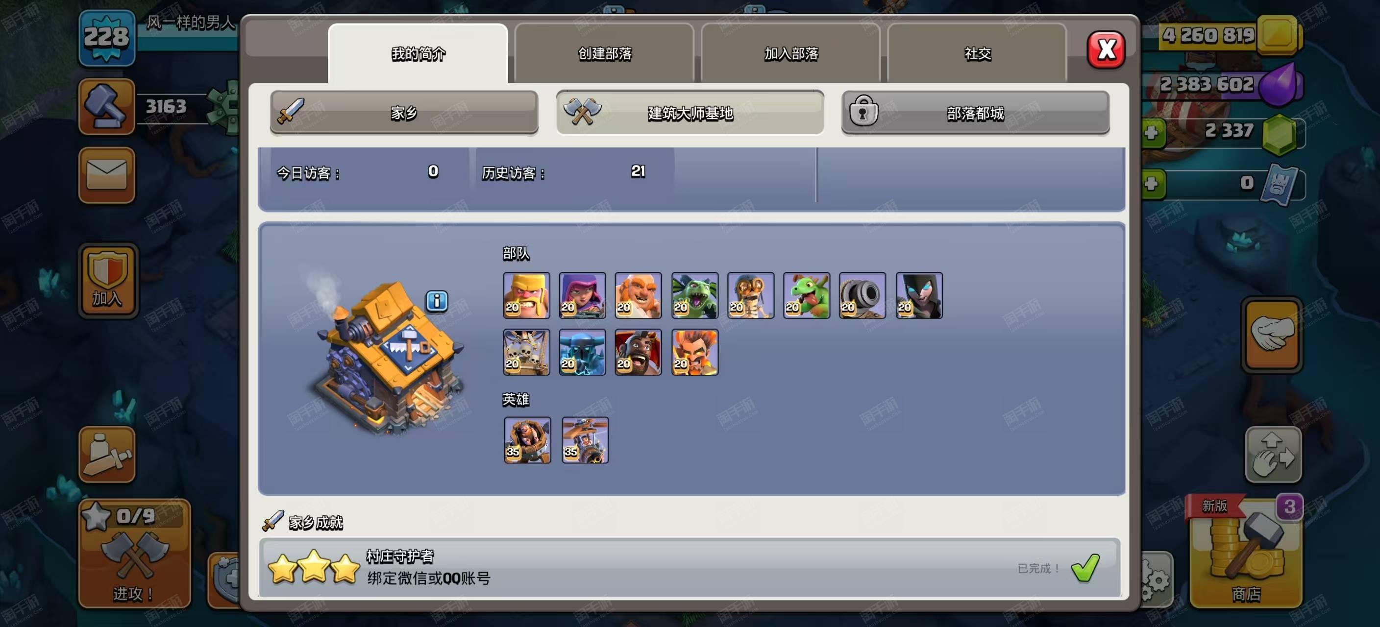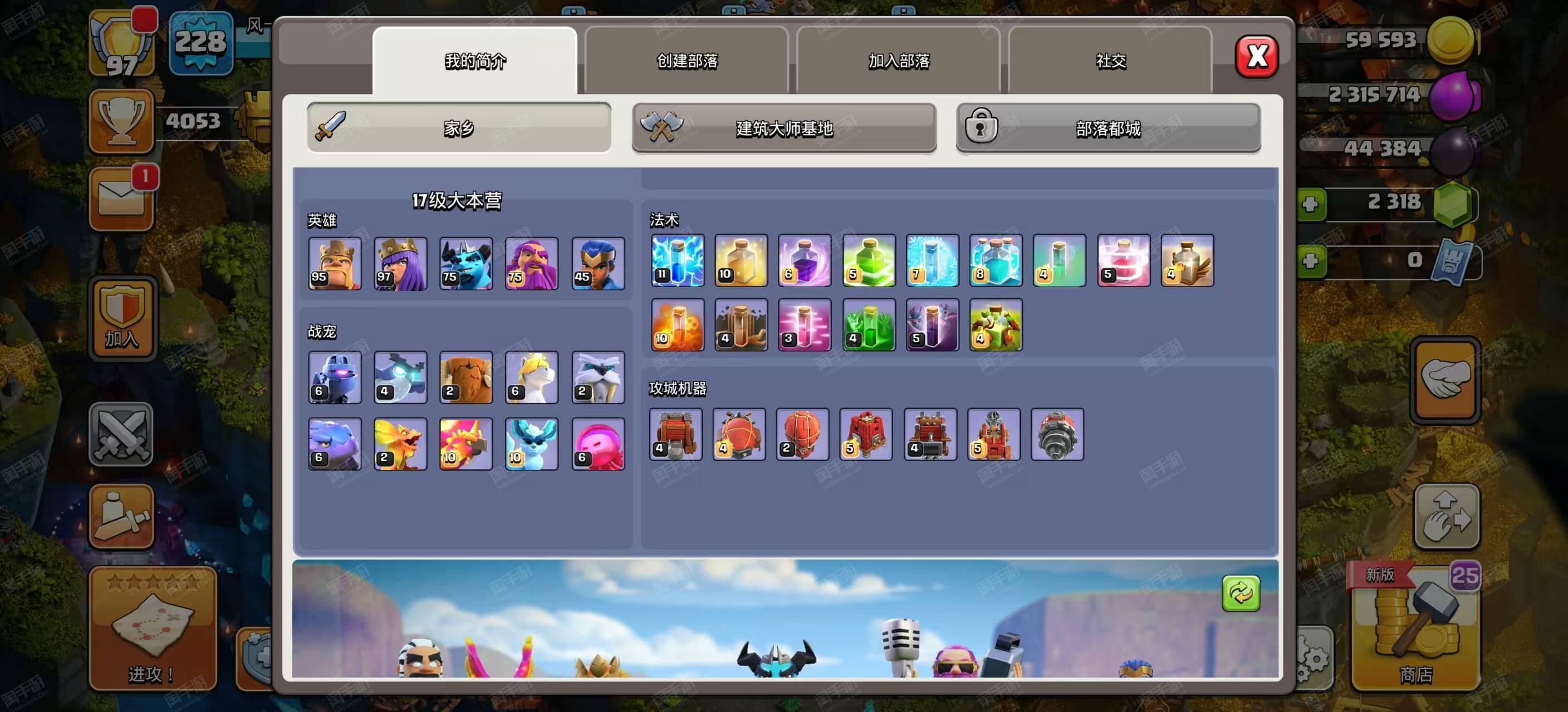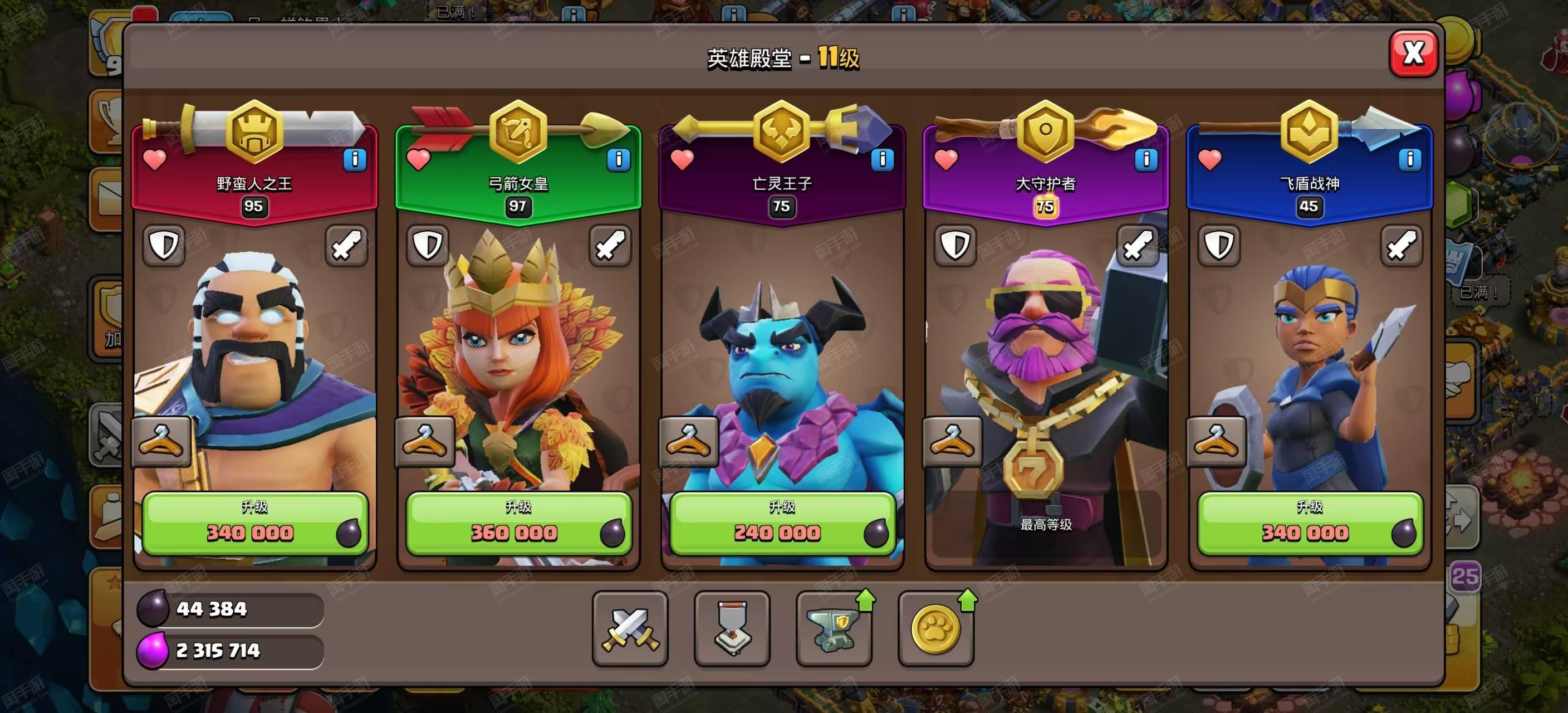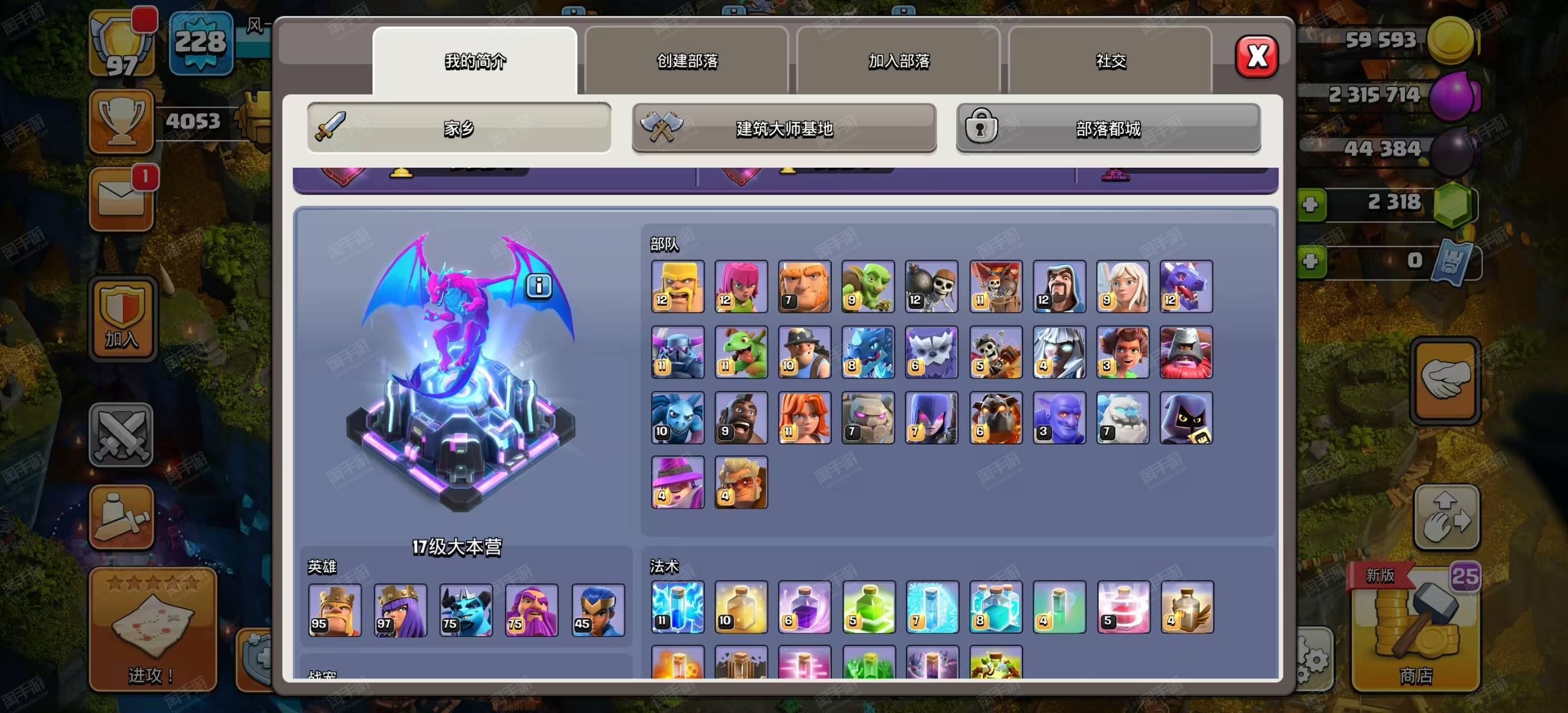 部落冲突【苹果QQ】17本五王等级95级97级75级75级45级