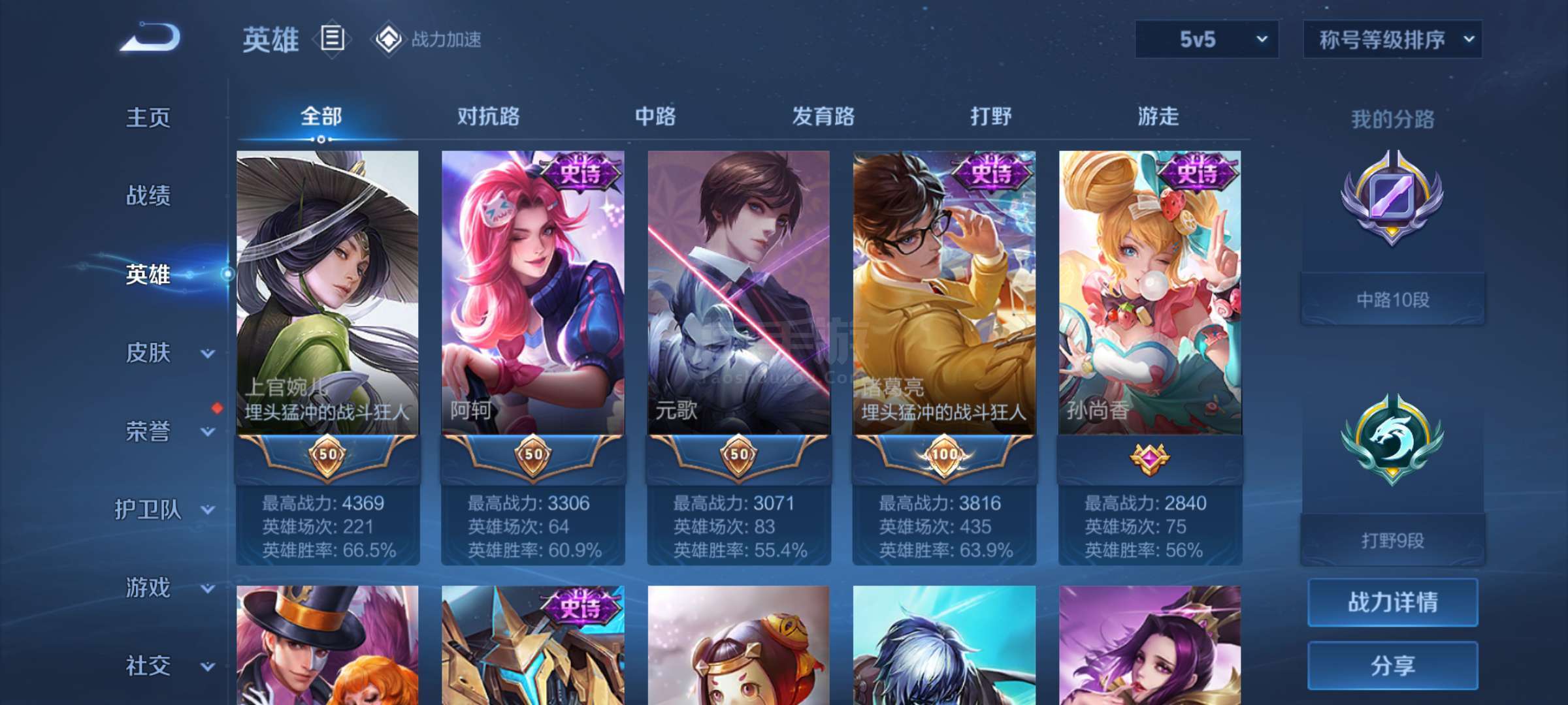 高胜率诸葛,婉儿 两个综合评分都是80+