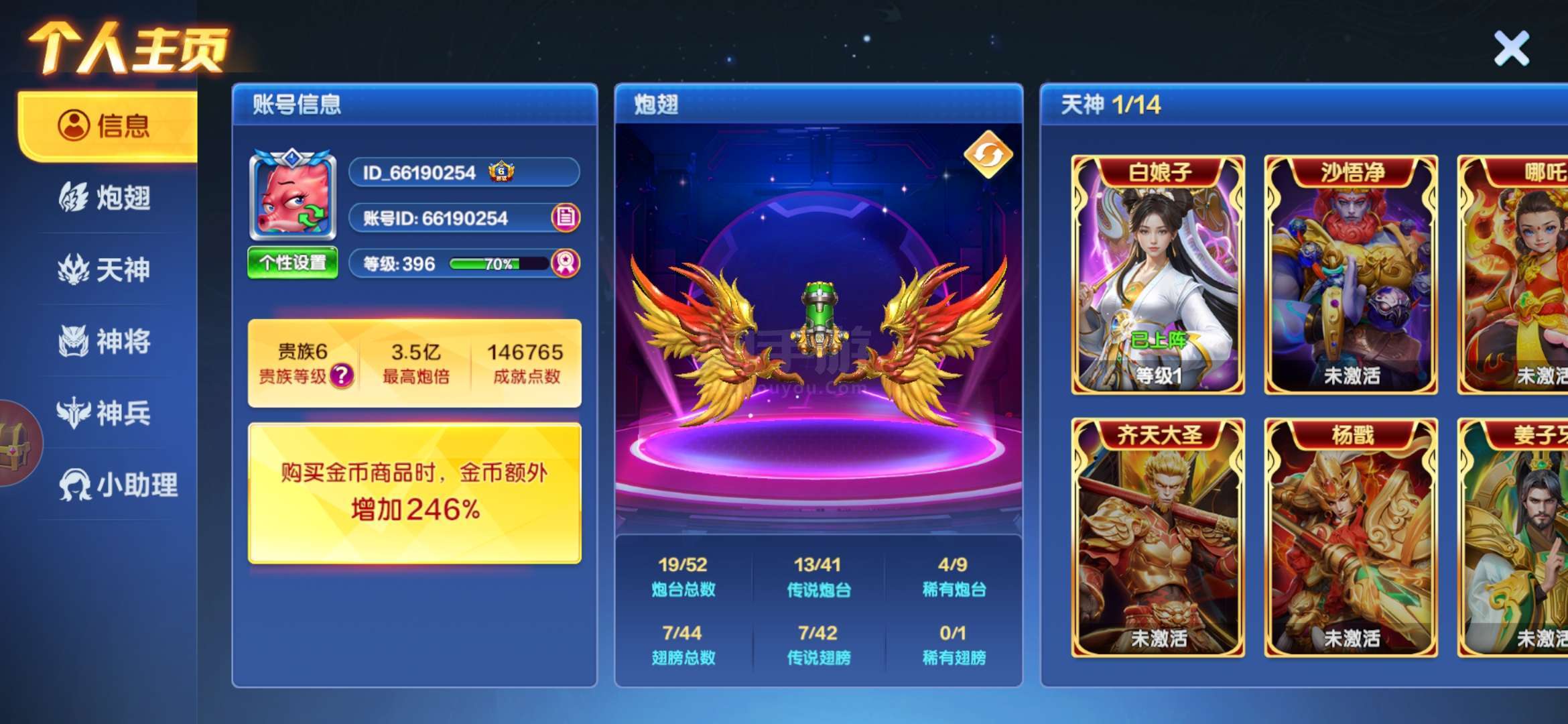 捕鱼大咖【安卓小米】3.5亿炮V6有白蛇天神,带争霸赛模式,能白嫖各种天神。可议价
