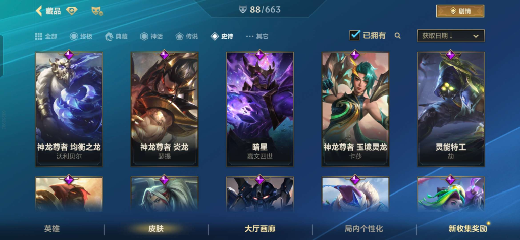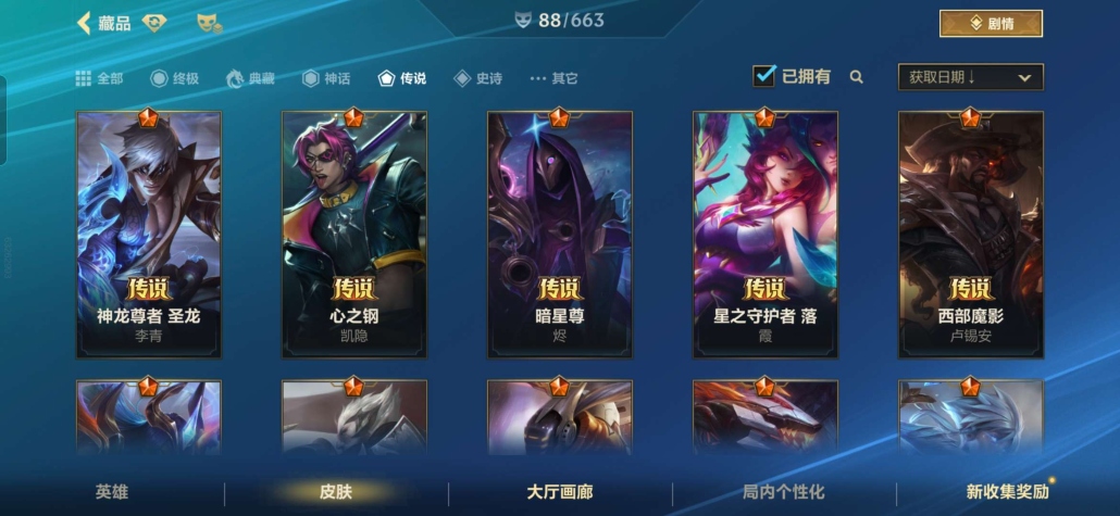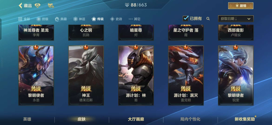 43342_88皮肤-12传说-35史诗-78英雄- 星之守护者 落 霞 神龙尊者 圣龙 李青 神王