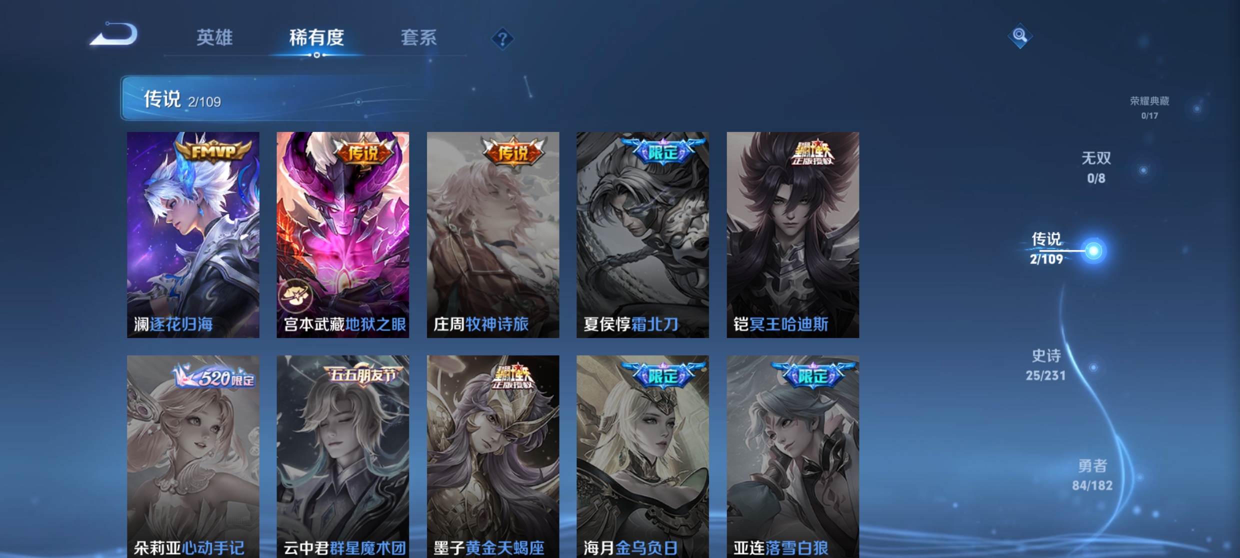 xl160《121英雄135皮肤》2传说25史诗 逐花归海