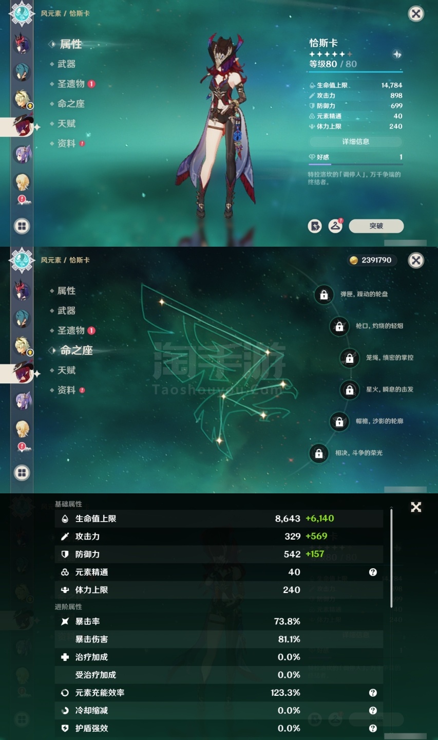 [原神]35黄 20五星角色 8五星武器 女主 59级,还有基尼奇和终末弓