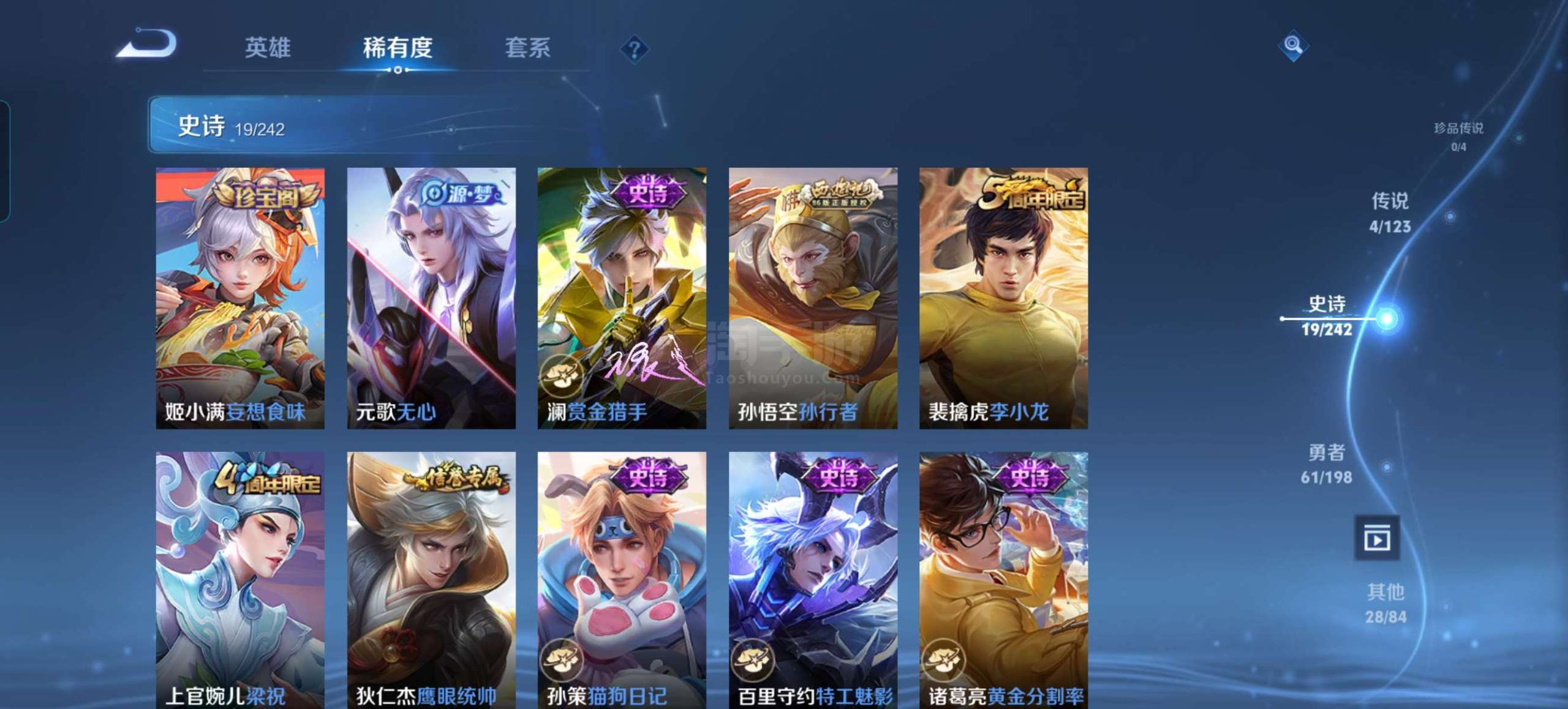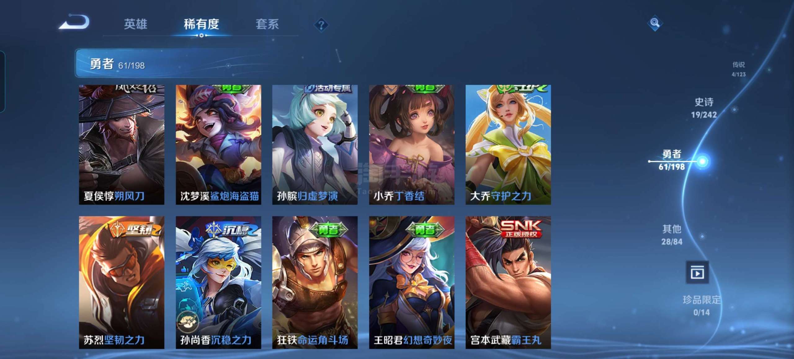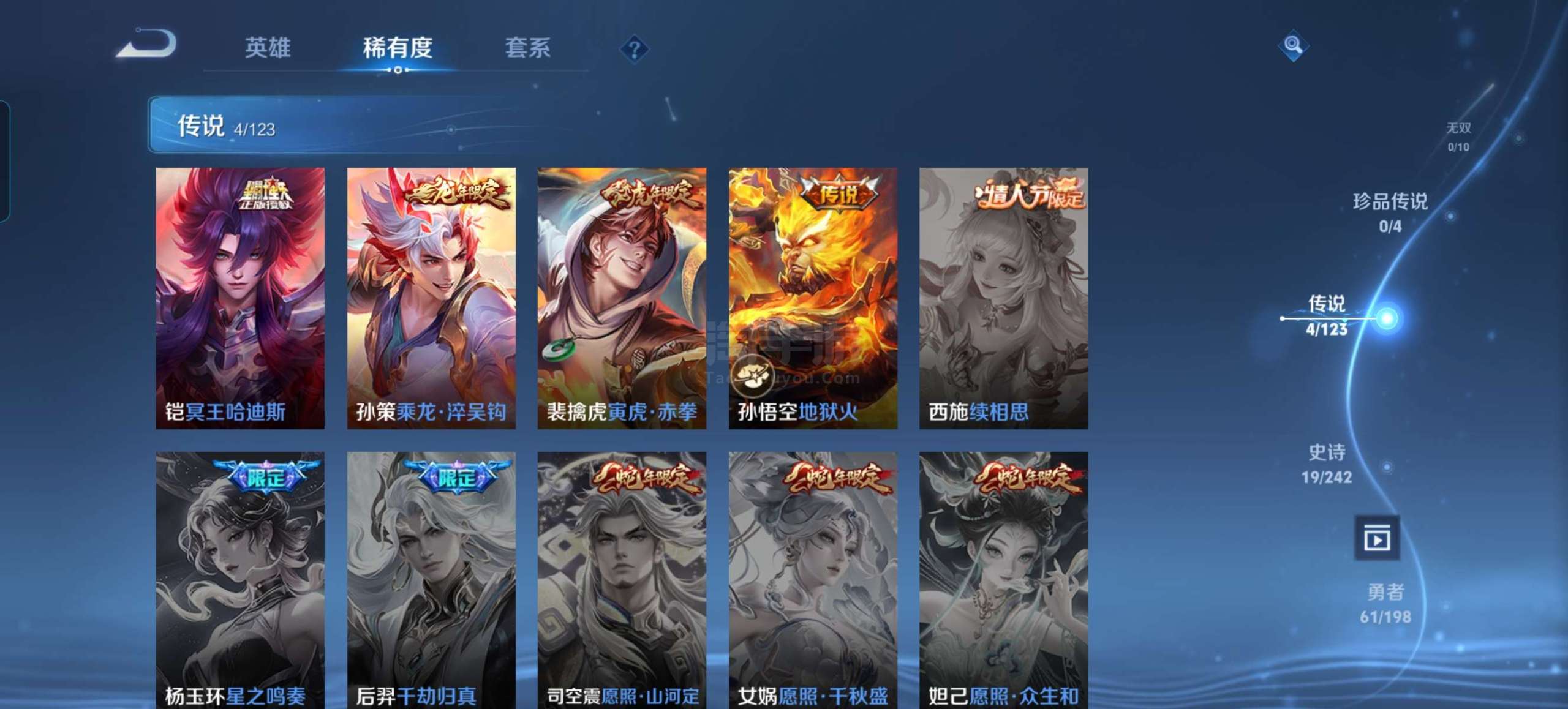 猴子地狱火有星传说连体号和平有个粉装还有小丑鱼主套还有多个赛季手册王者是50多区老区钱有用就卖了
