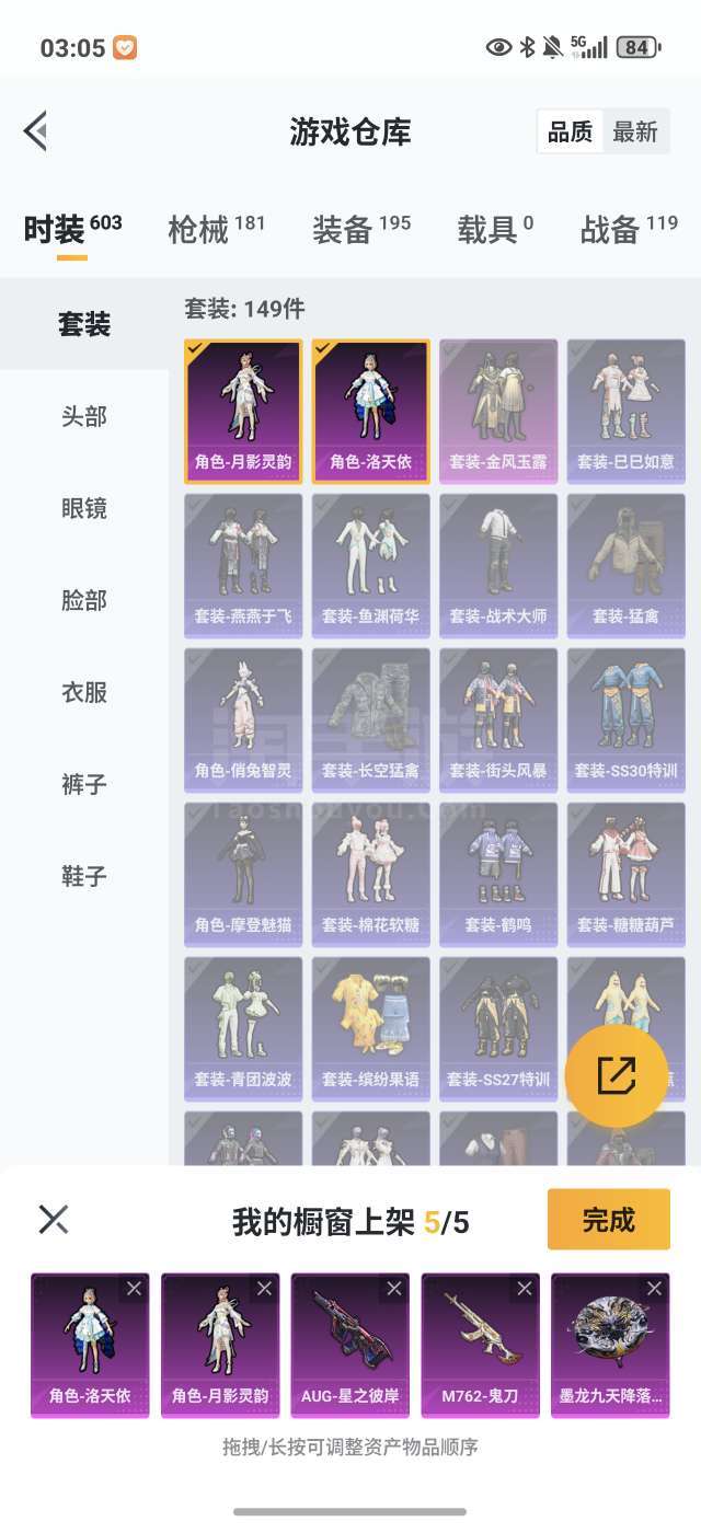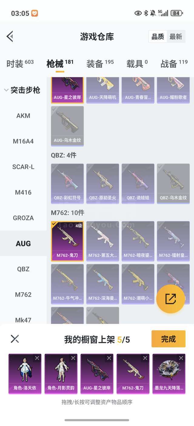 安 q,满级洛天依,aug 满级彼岸,m762 鬼刀五级各式粉装等等
