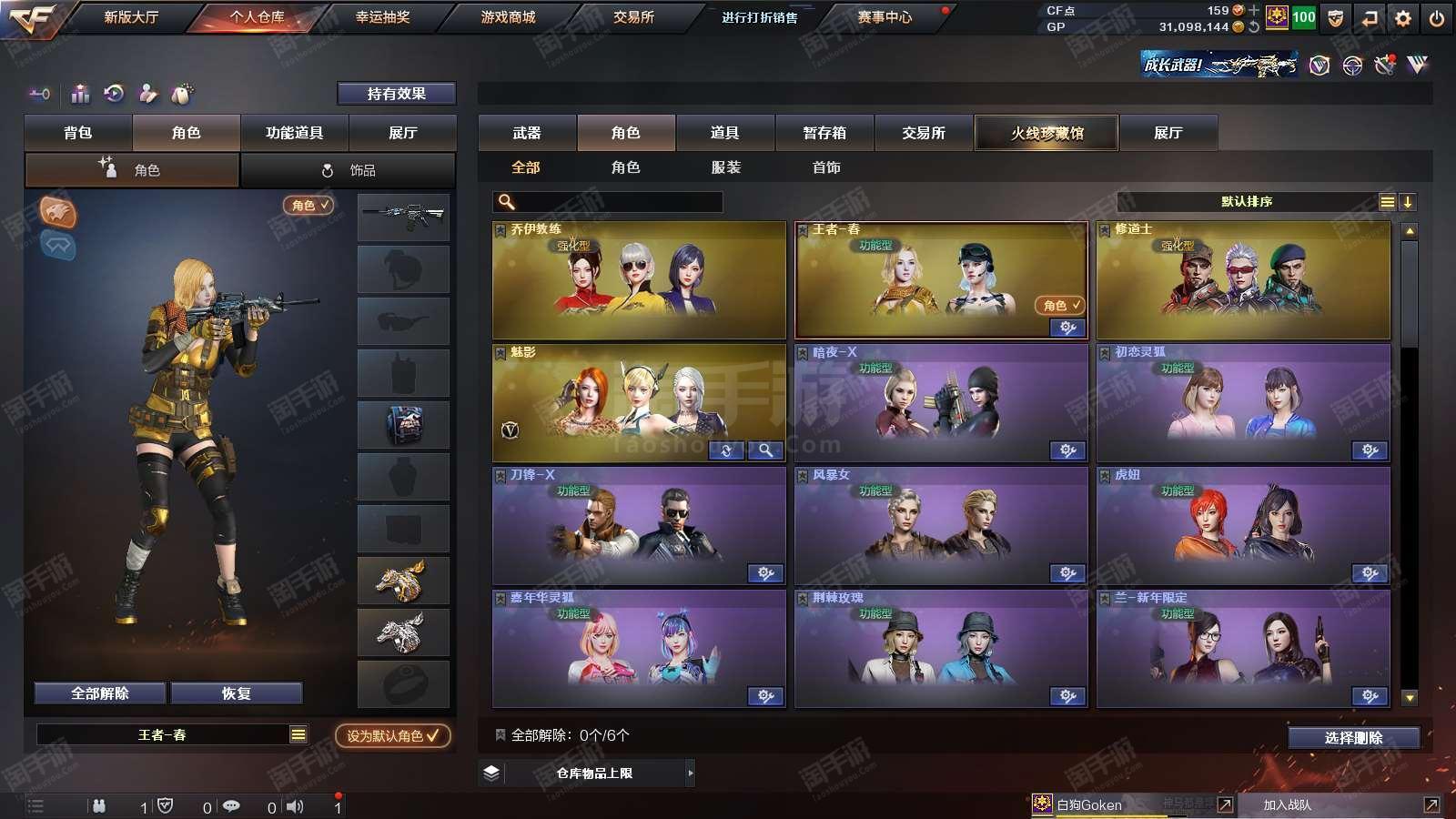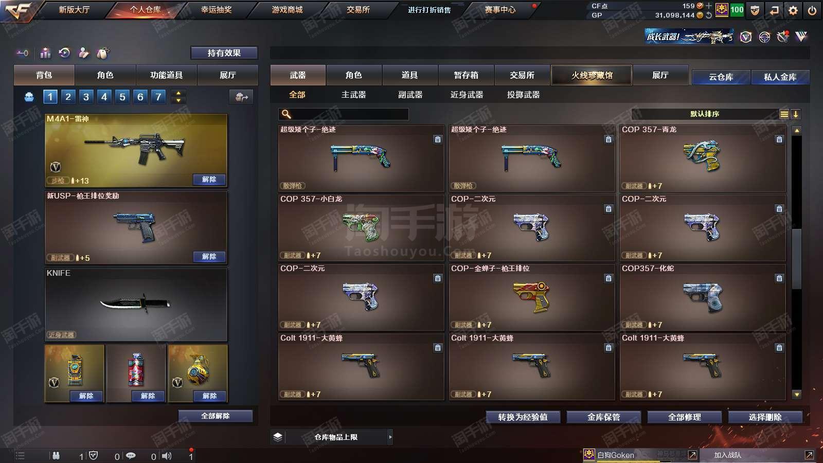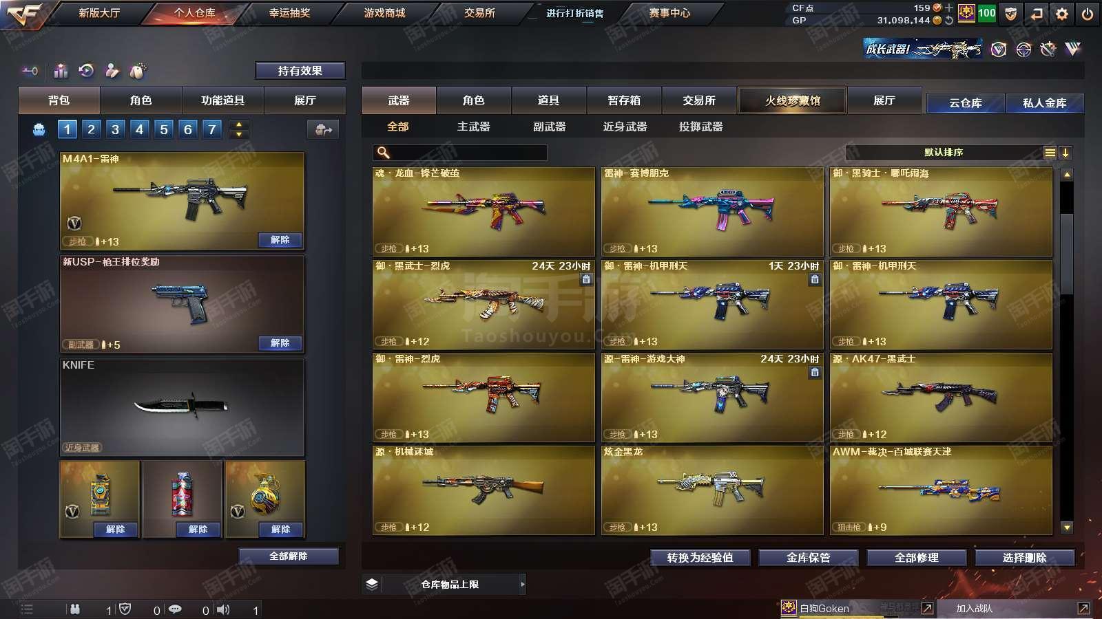1677073_广东/南部/实名可改/38V14王者1炫金VIP6【主武器类型】 M200-幻神 (世冠白鲨+周瑜) M200-竞技荣光 Barrett-毁灭 (AG冠军+冠军之怒+音效卡) Barrett-朱雀 AWM-裁决 M4A1-雷神 (N9) QBZ03-金色蔷薇 (冠军之薇+世冠白鲨) 王者之势觉醒版 M4A1-黑骑士 (白马银枪+音效卡) AK47-火麒麟 烈火-9A-91 烈火动感