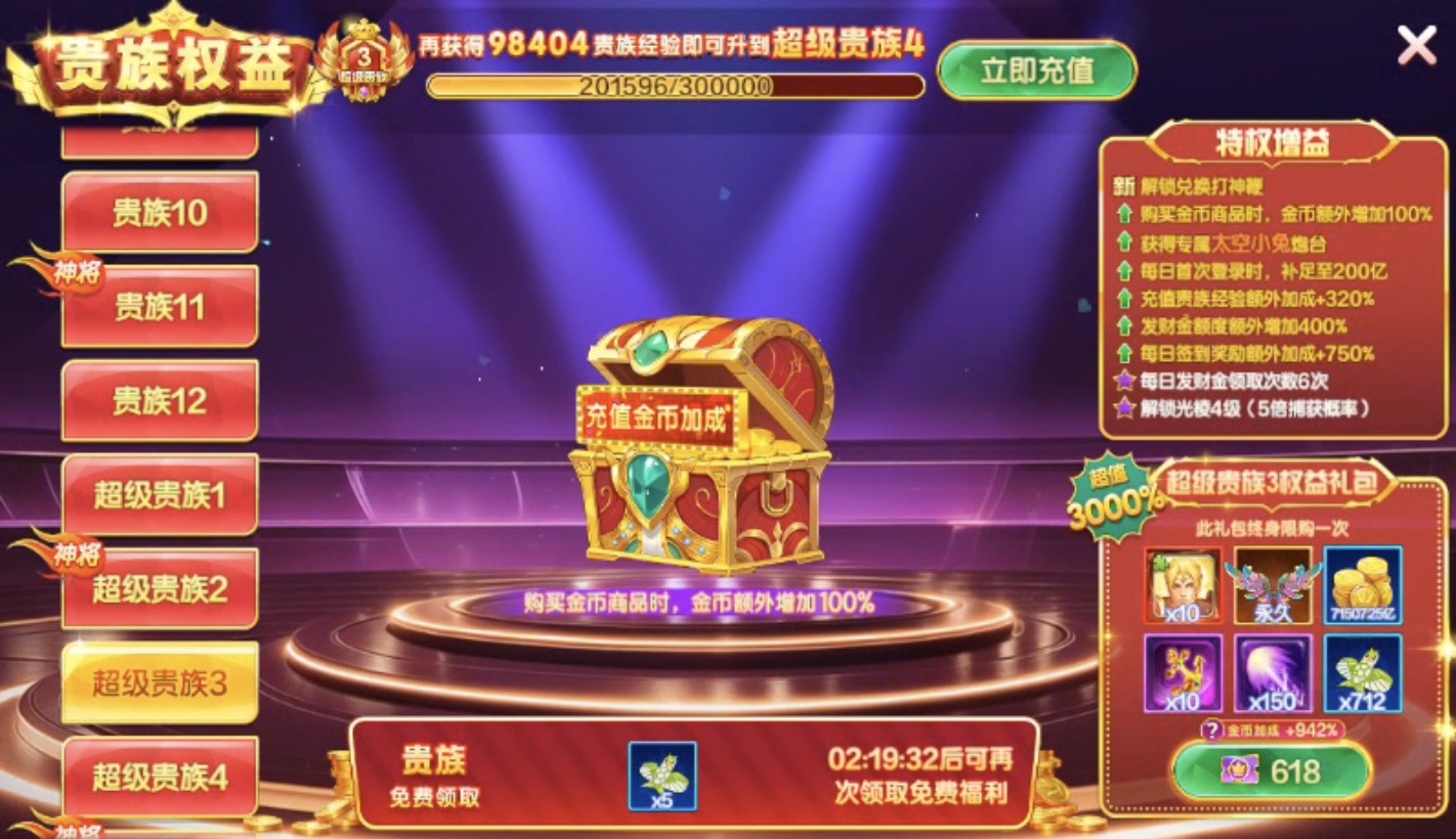 捕鱼大咖【苹果官方】超级贵族3,13个天神有副炮有无限火力脱坑出