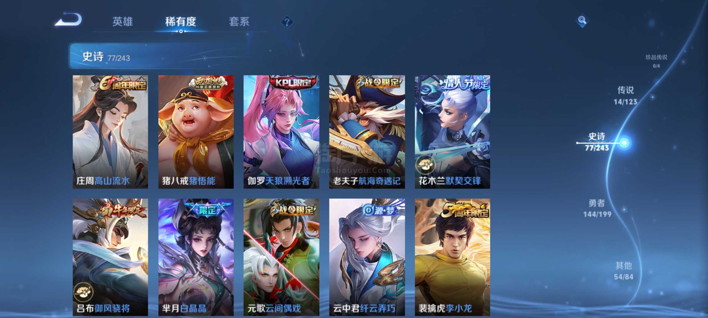【商品标题】:安卓Q-V8-122英雄-290皮肤-1典藏-0无双-0珍品传说-14传说-77史诗