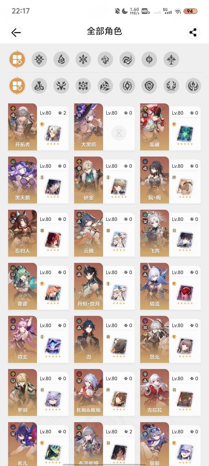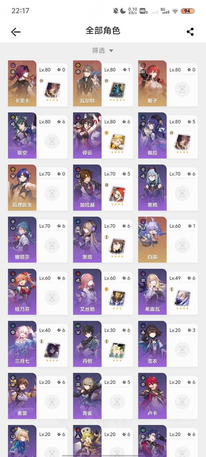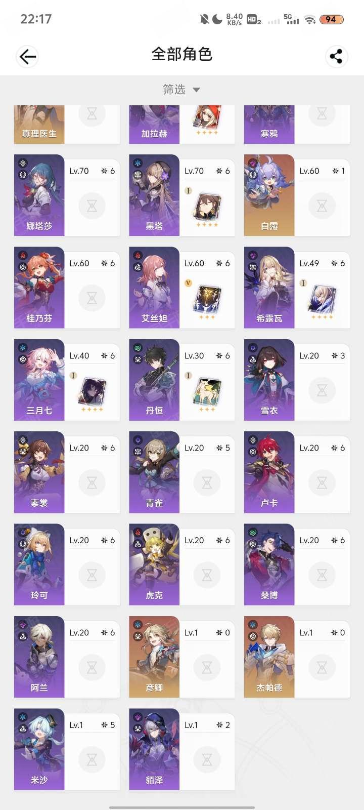 练度较高,体力药还有100多,资源丰富,角色多联崩铁,绝区零(崩铁满级绝区零五十六,号上资源多,体力