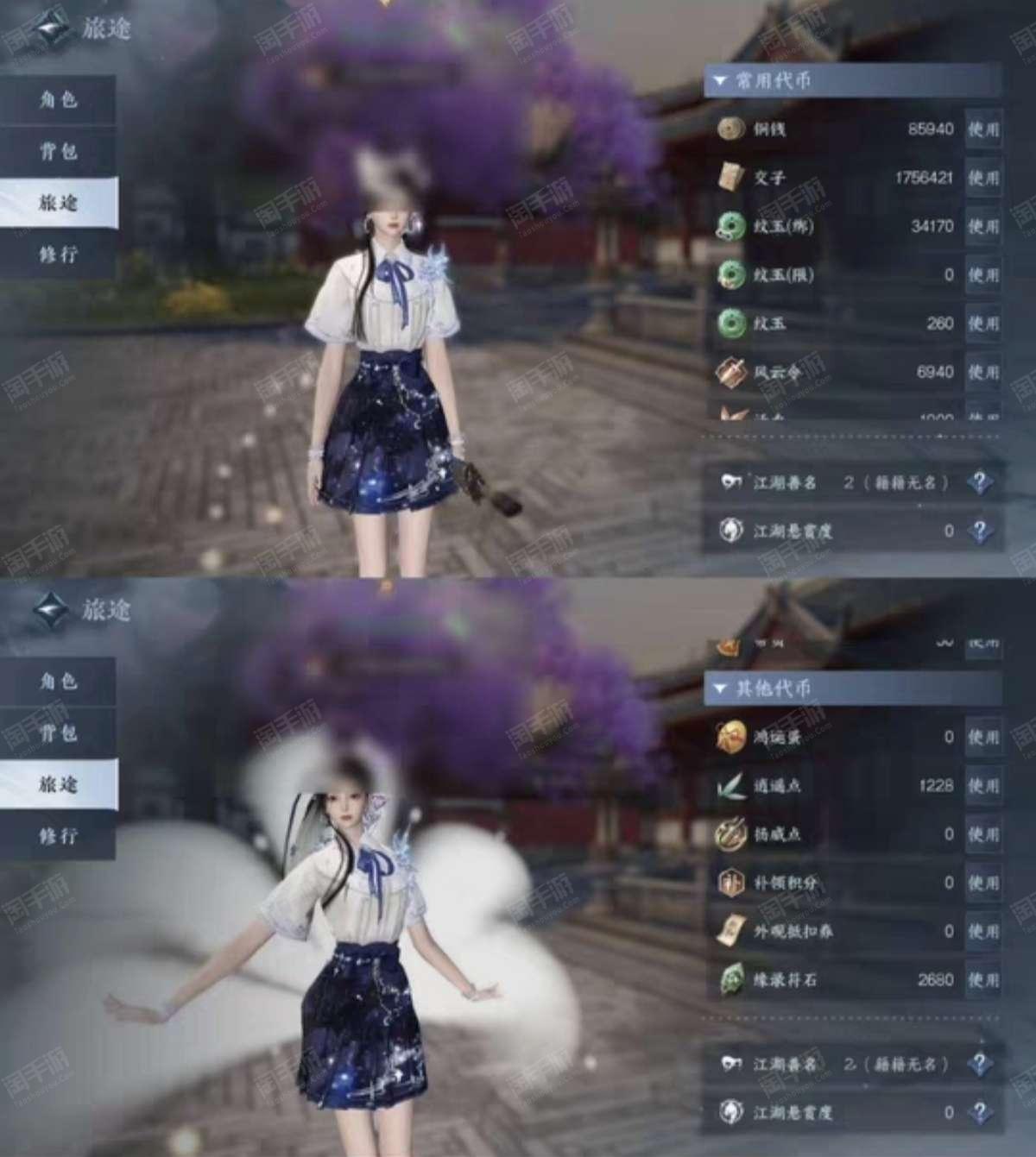 号内有一颗未使用的天赏石,几套288时装,有白狐,七夕限定,仙逆等限定时装,号内7张半价劵一些抵扣卷