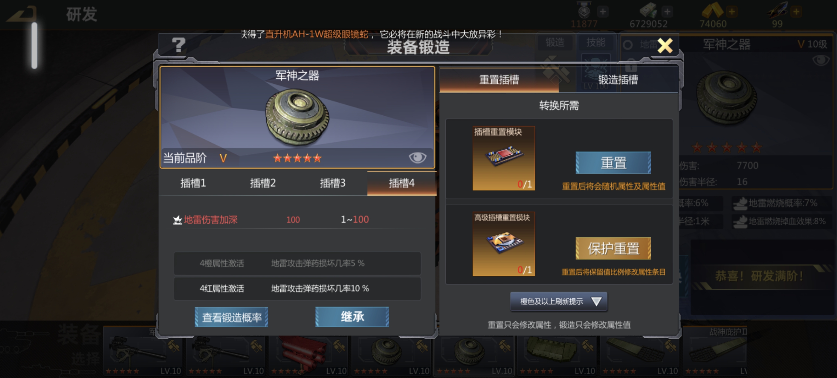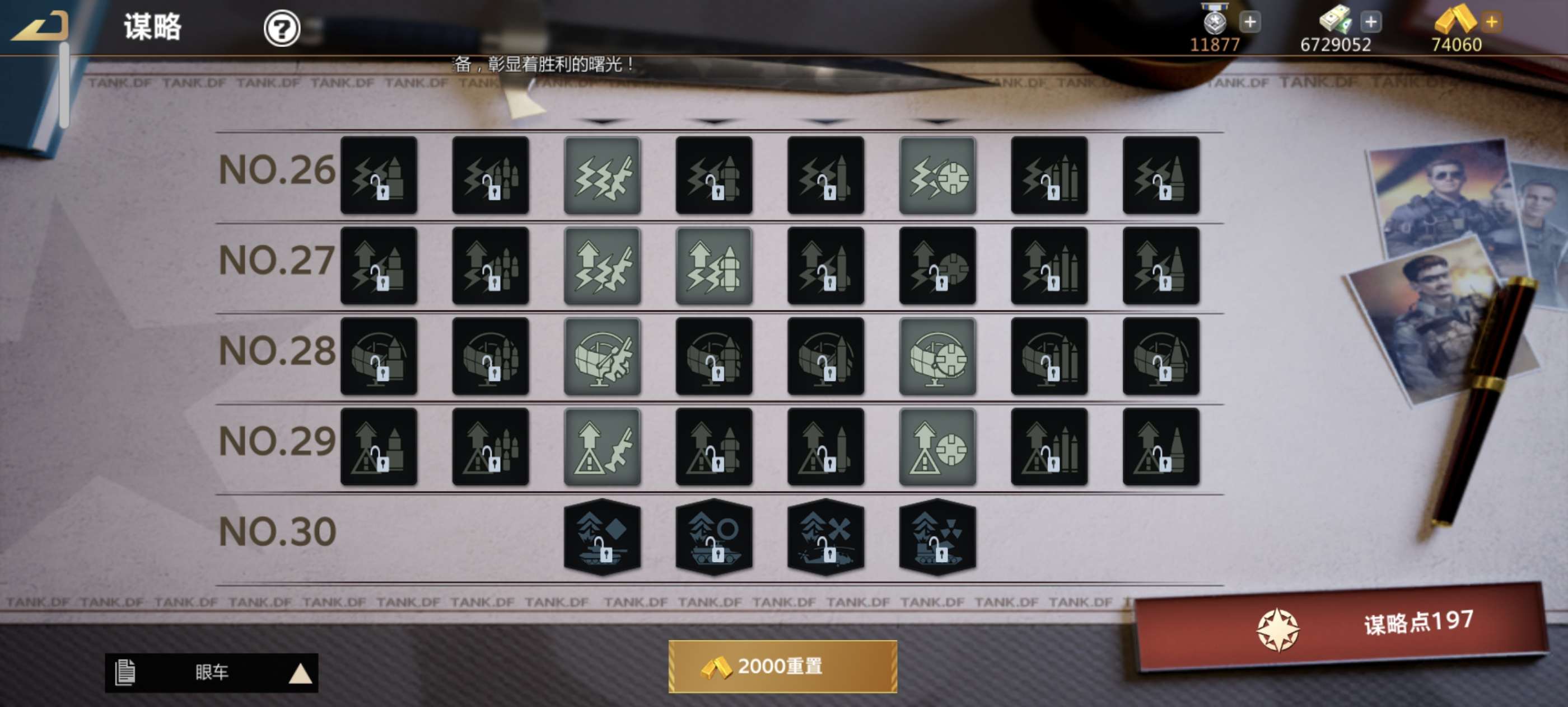 谋略到25层,电控全开,指挥室刷好两套,最差橙色,,技能锻造全满,八图鉴,细节良好,四军神四盛世
