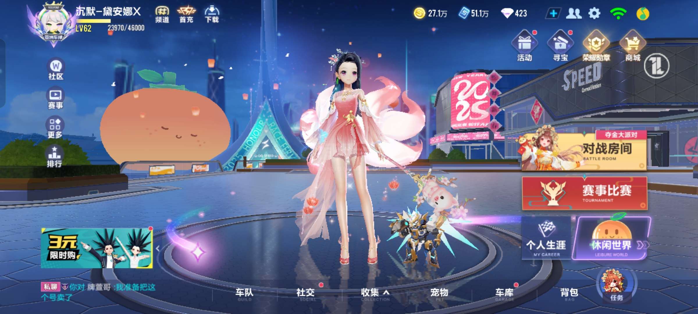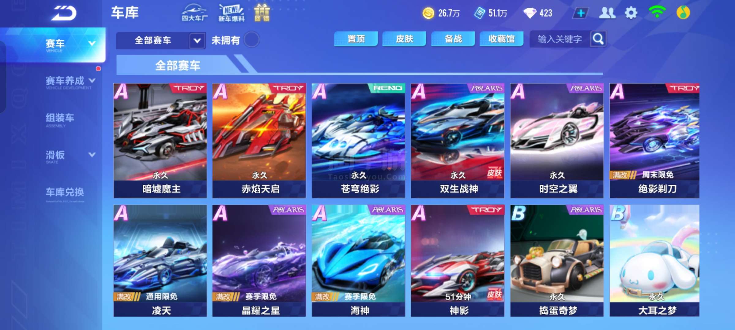 QQ飞车手游【安卓QQ】16a车,51.1w点券,423钻石