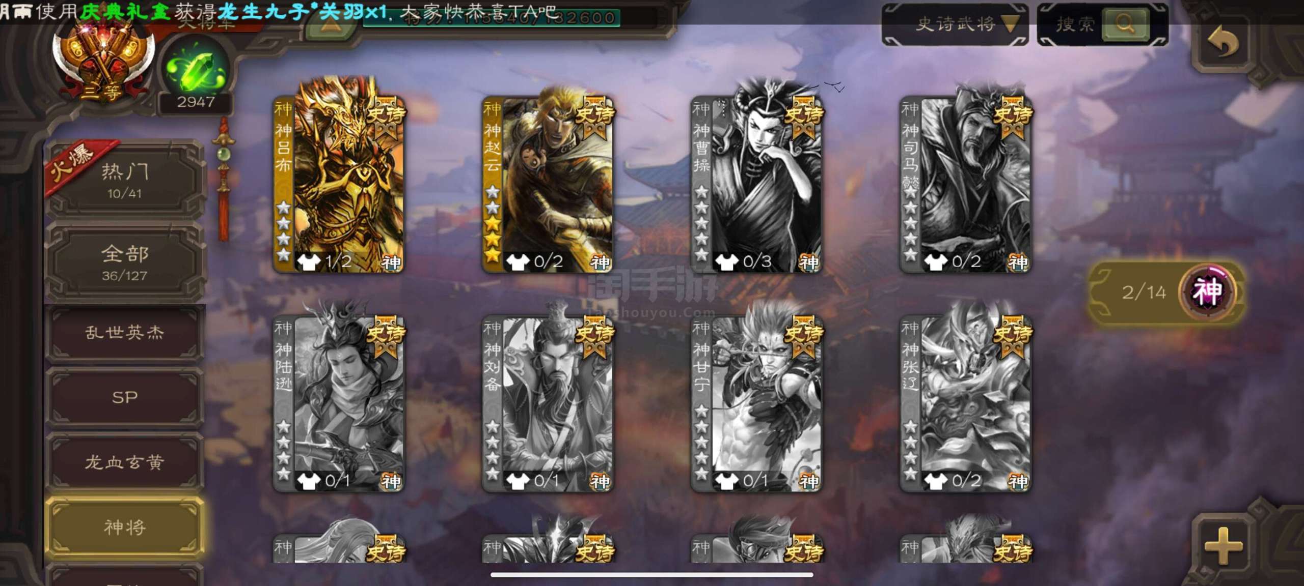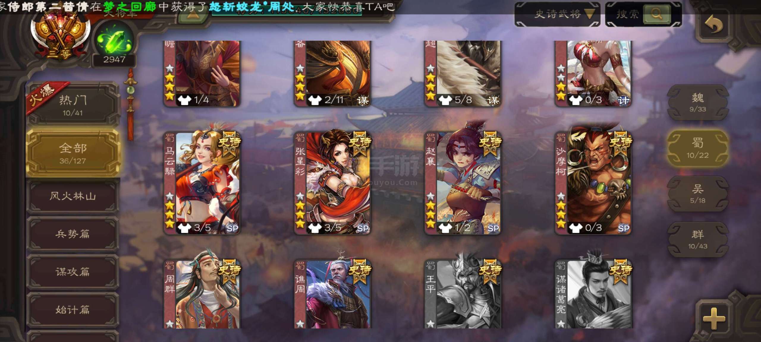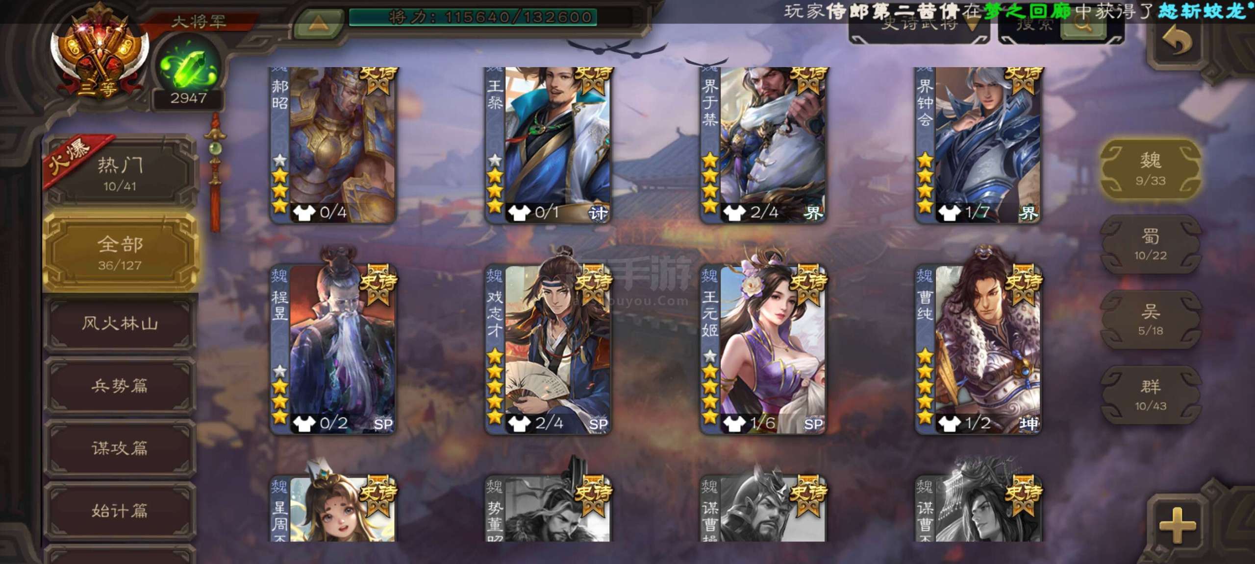 史诗武将数量: