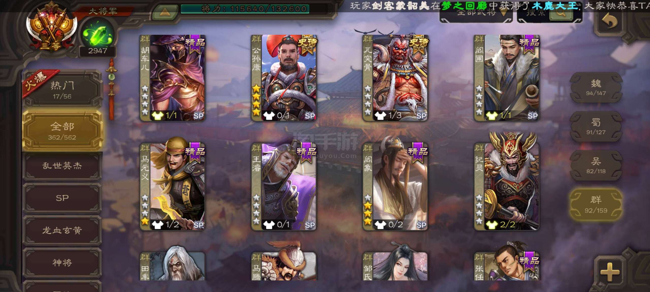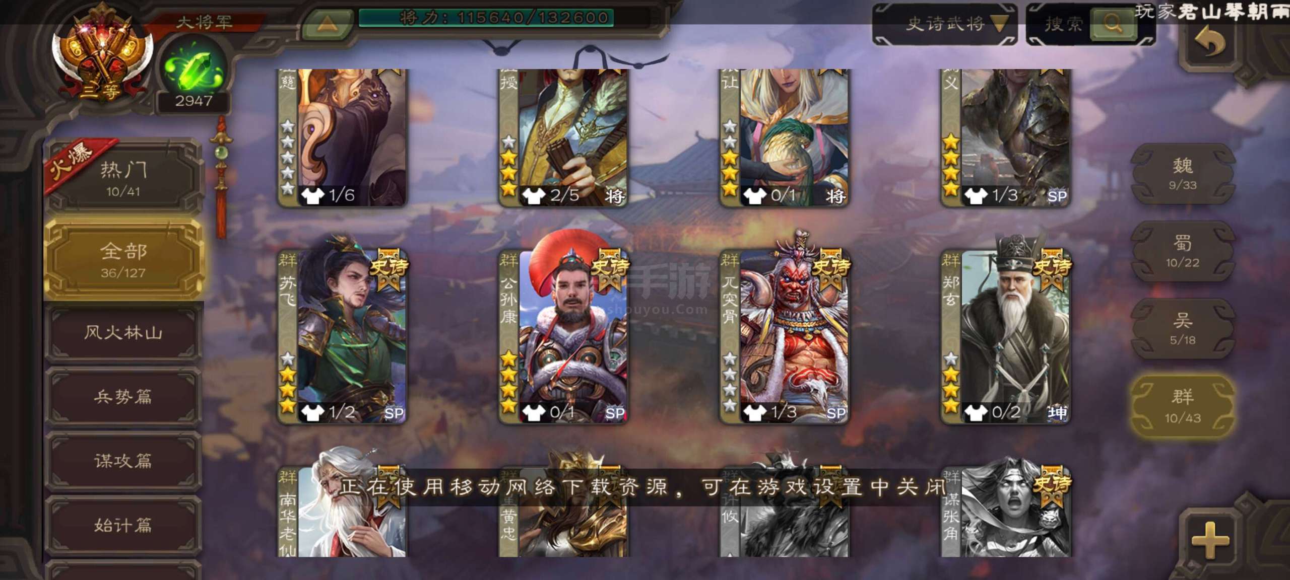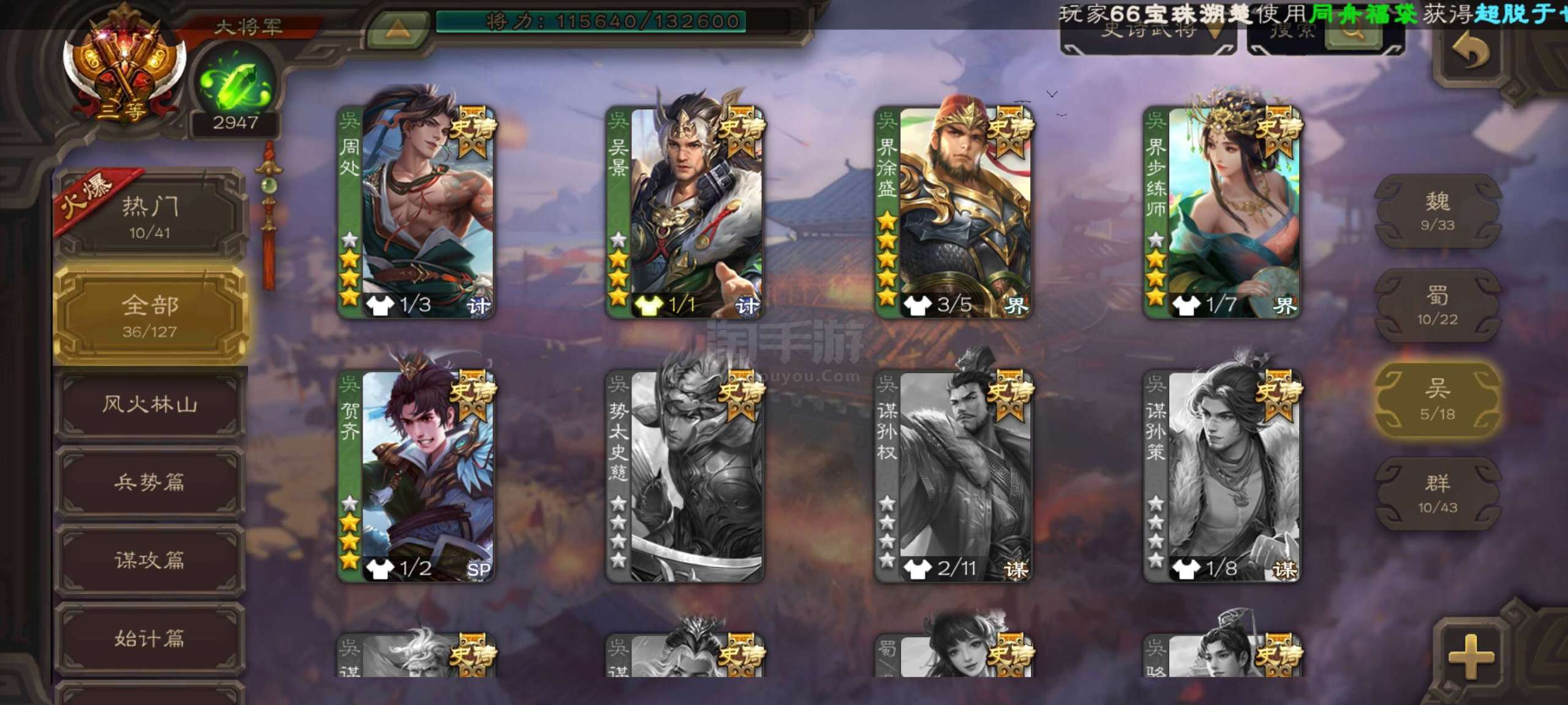 史诗武将数量: