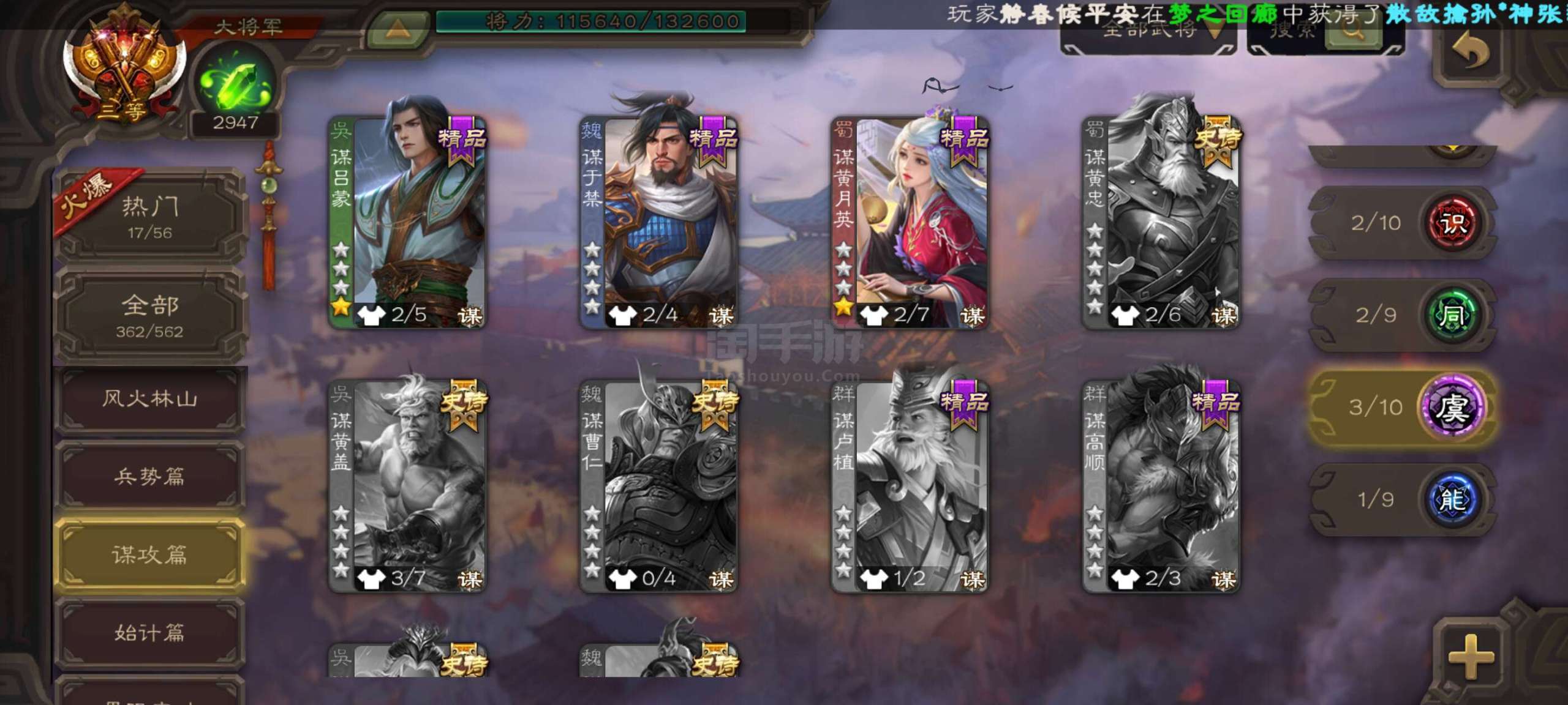 三国杀【安卓vivo】三国杀大将军36史诗,360武将 ,多动态皮,亏本卖捡漏号 。