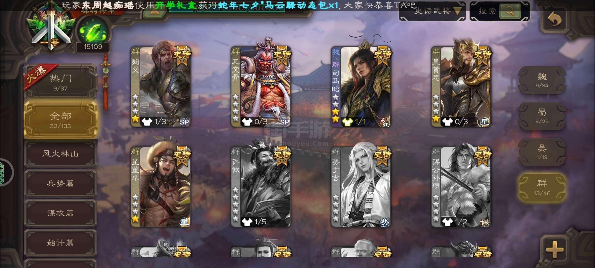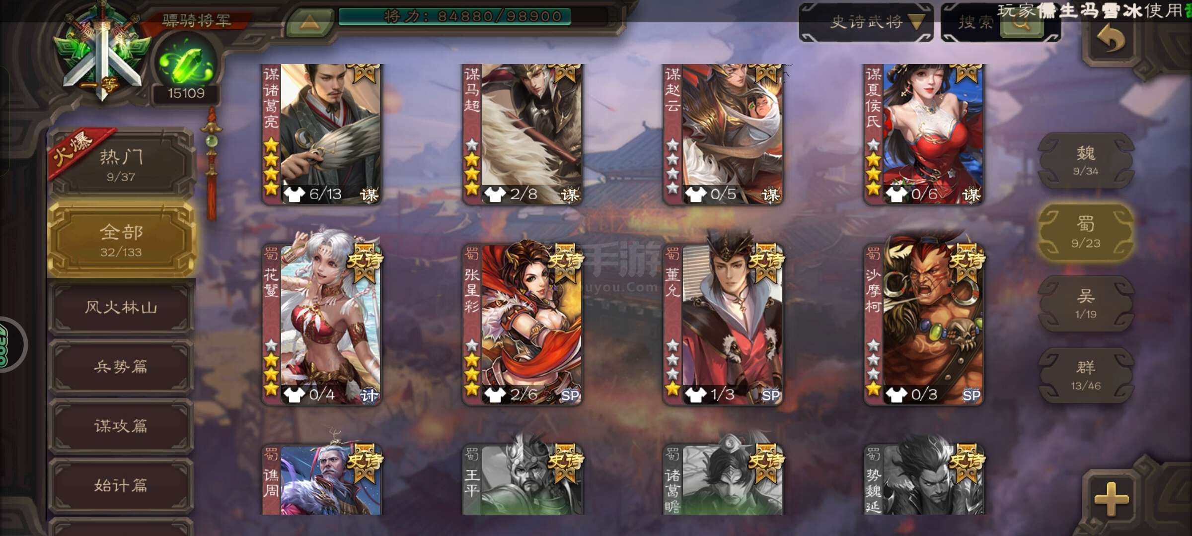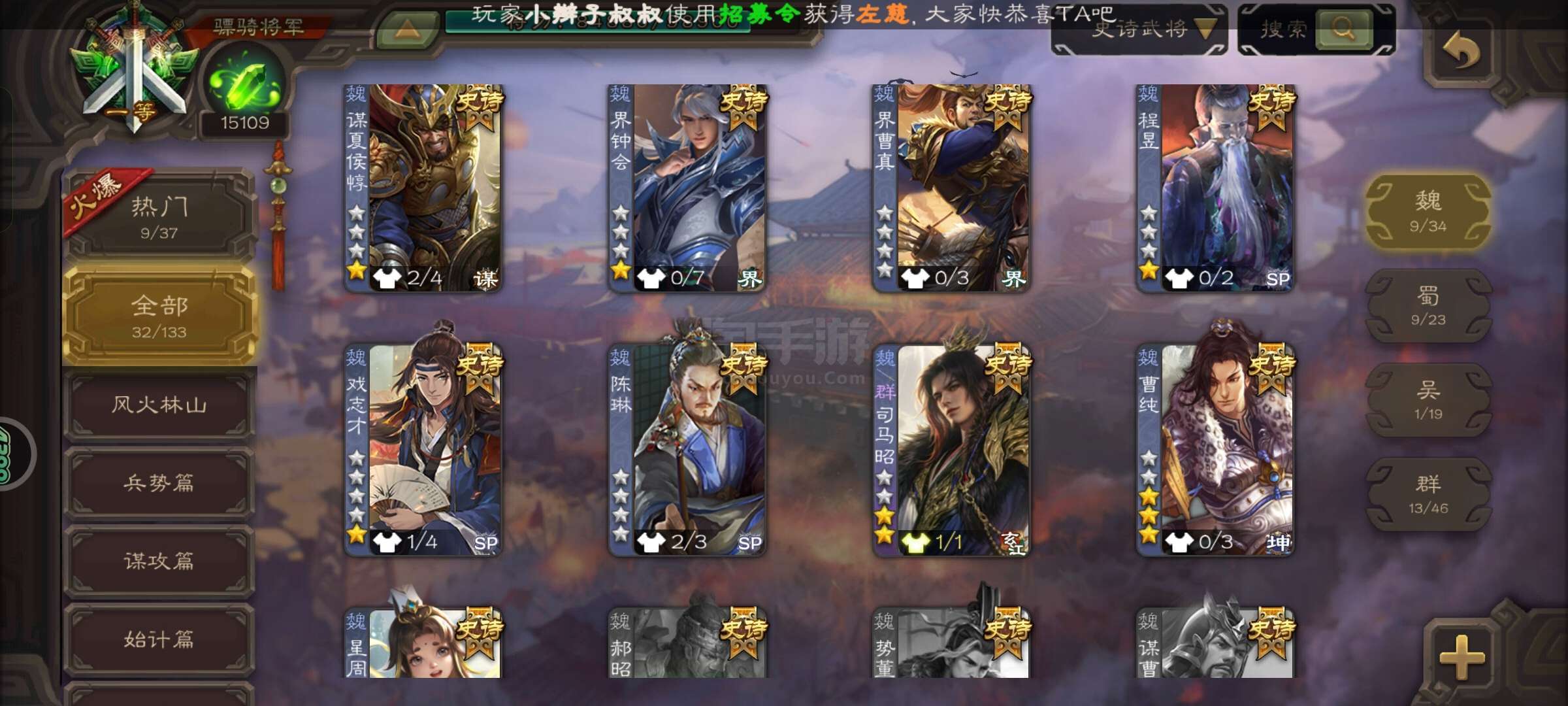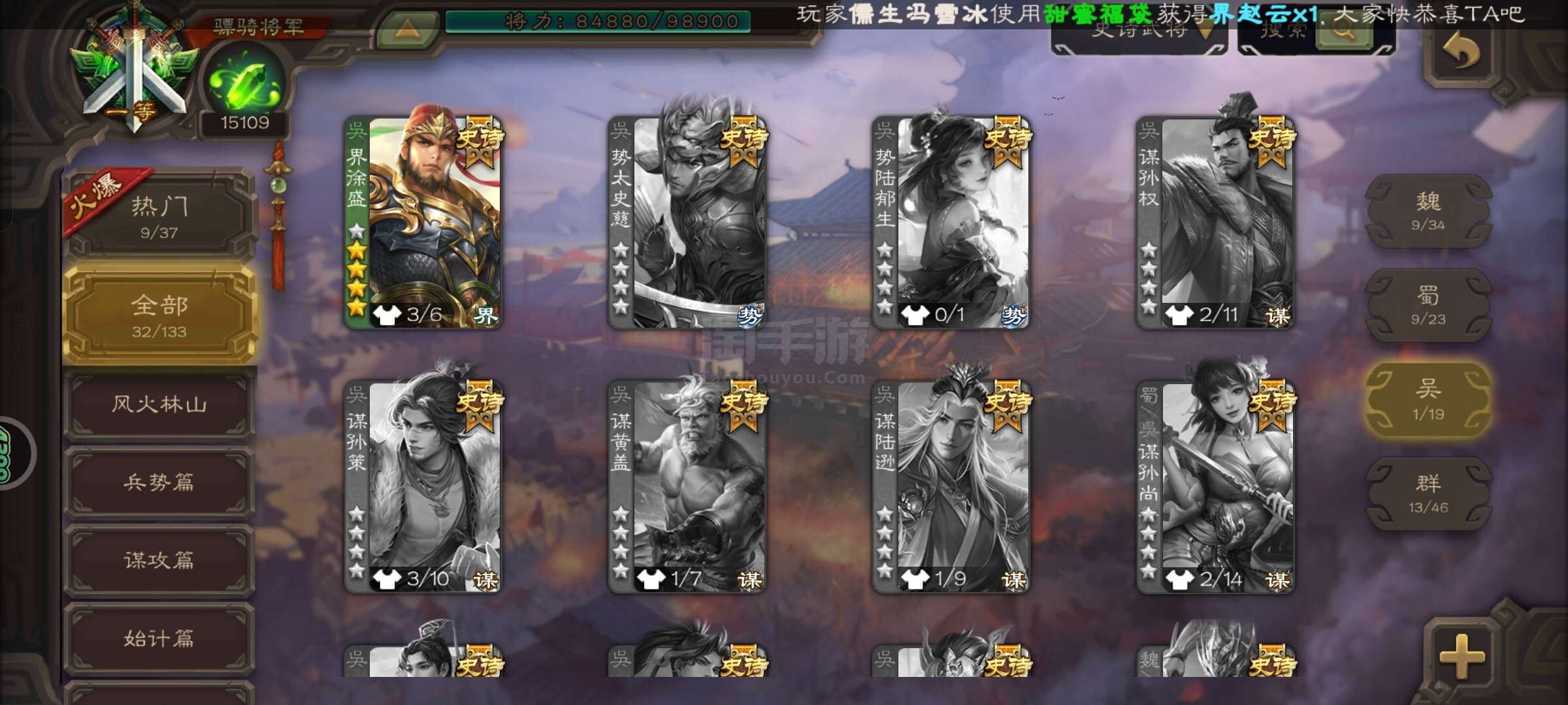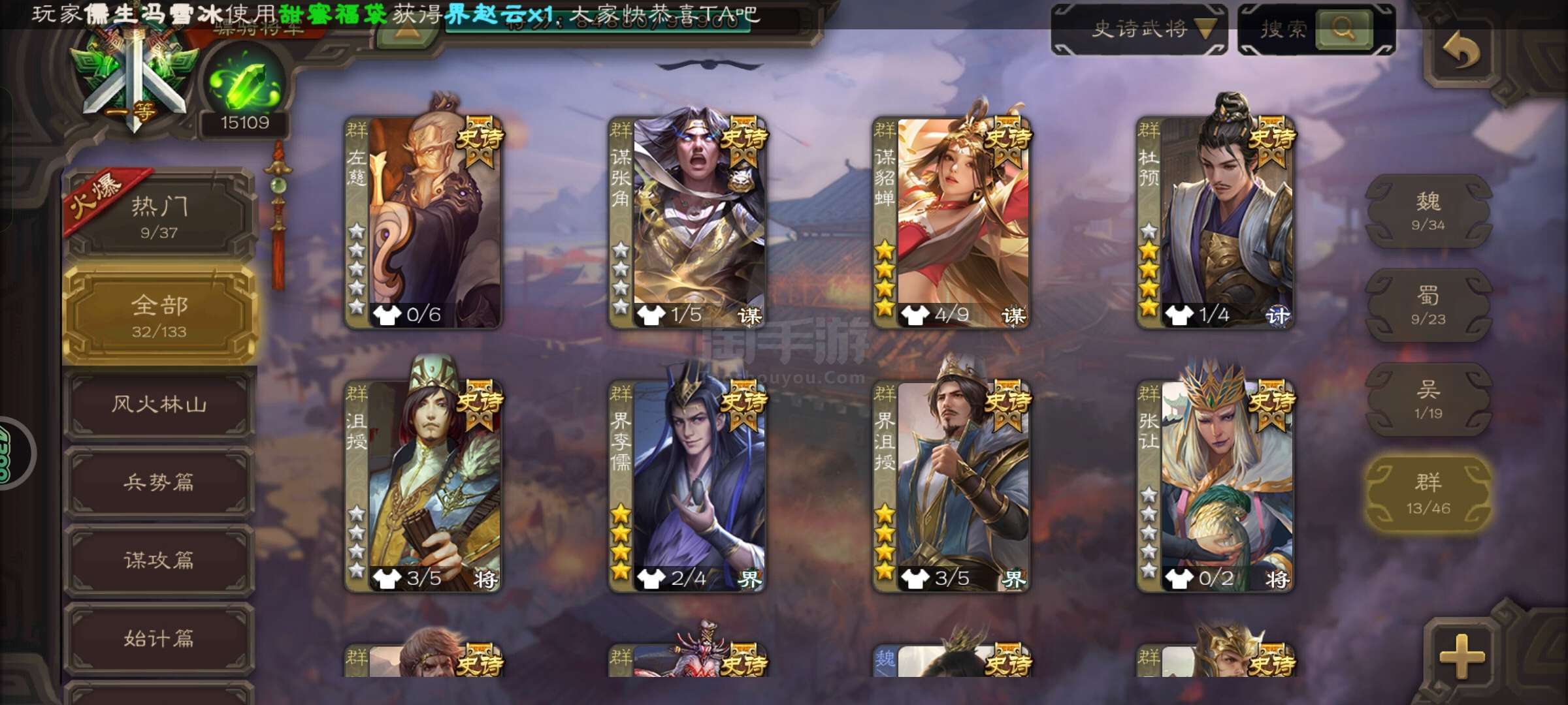 史诗武将数量: